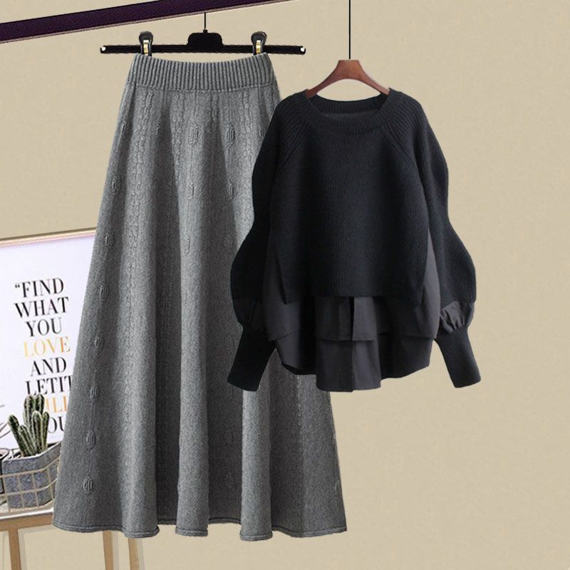 봄과 가을 세트 여성의 2025 새로운 패션 세련된 느슨한 게으른 스타일 스웨터 슬림 스커트 투피스 세트스토어 가기