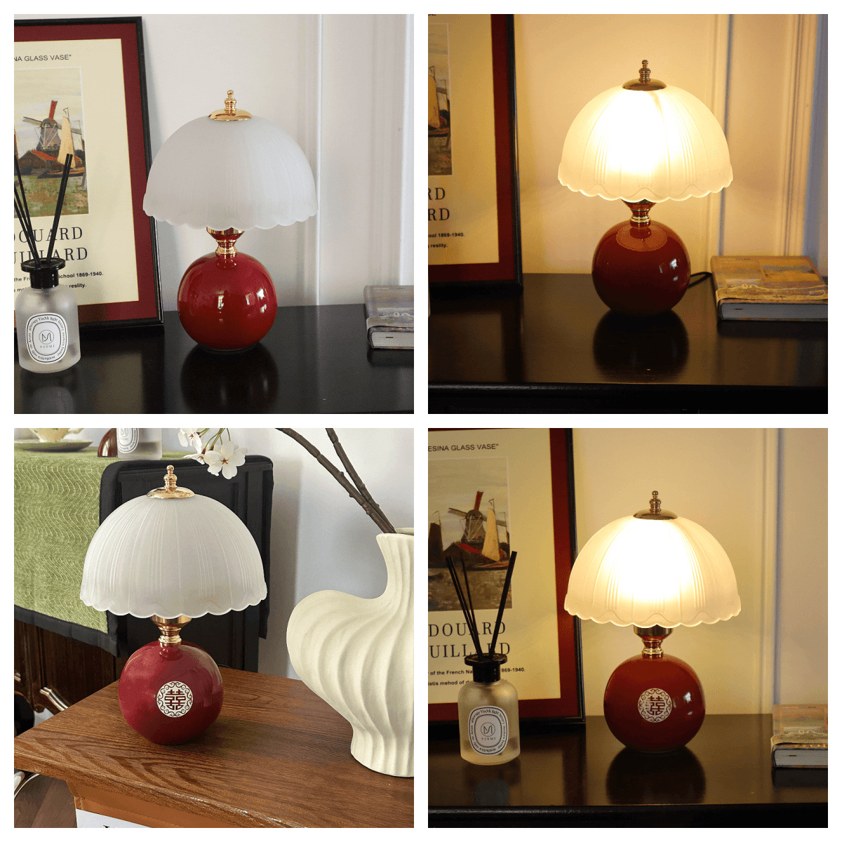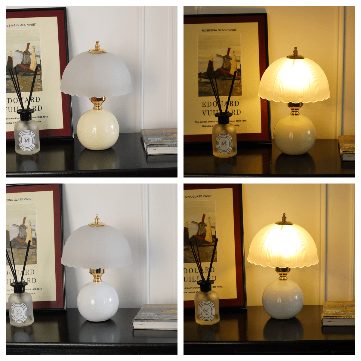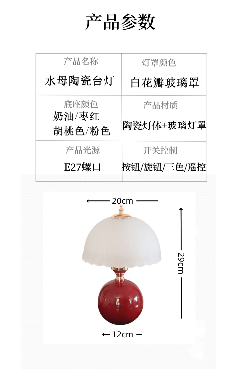 크림풍 레트로 테이블 램프 침실 2024 침대 옆 탁자 주 침실 버섯 분위기 야간 조명 조광 가능 삼색 변광스토어 가기
