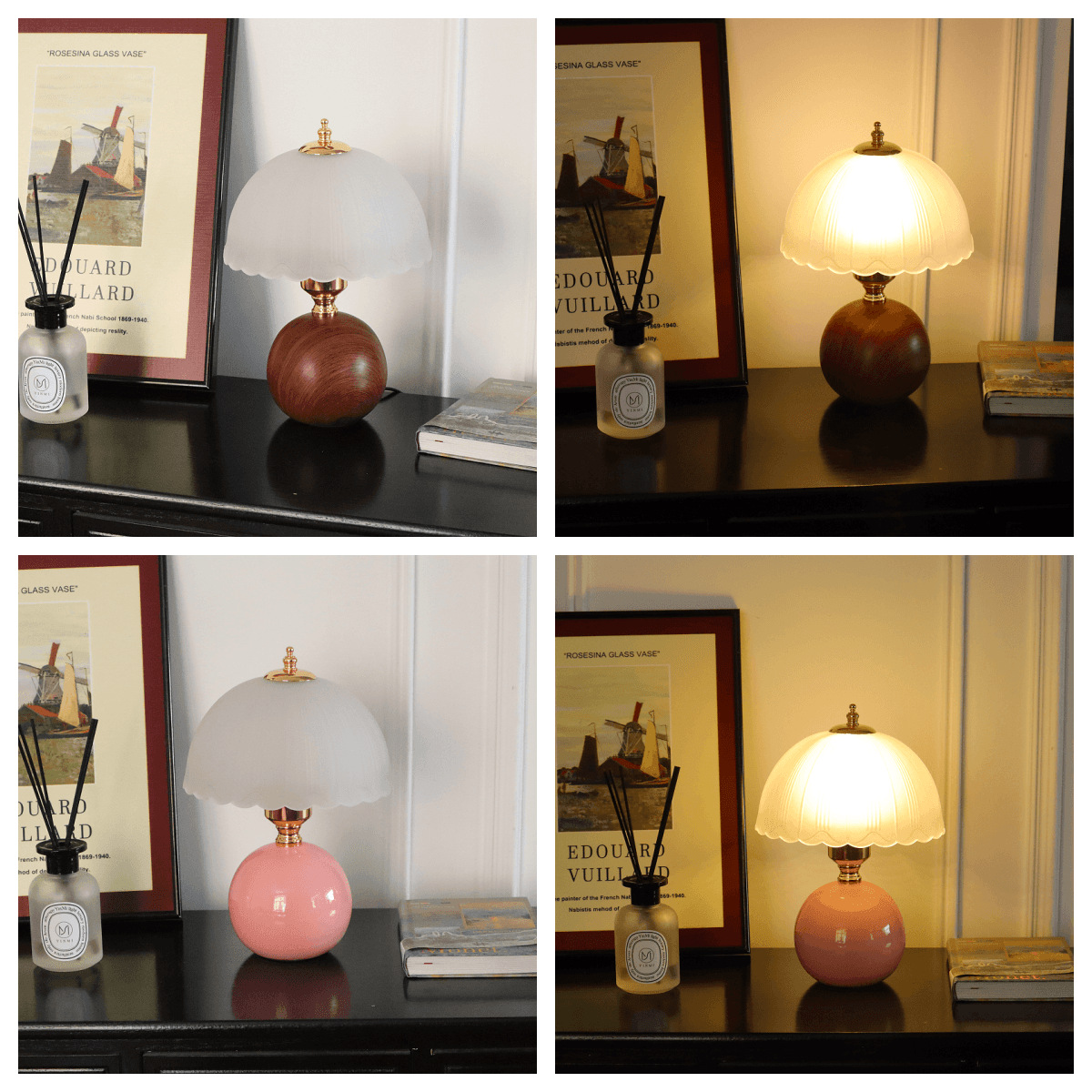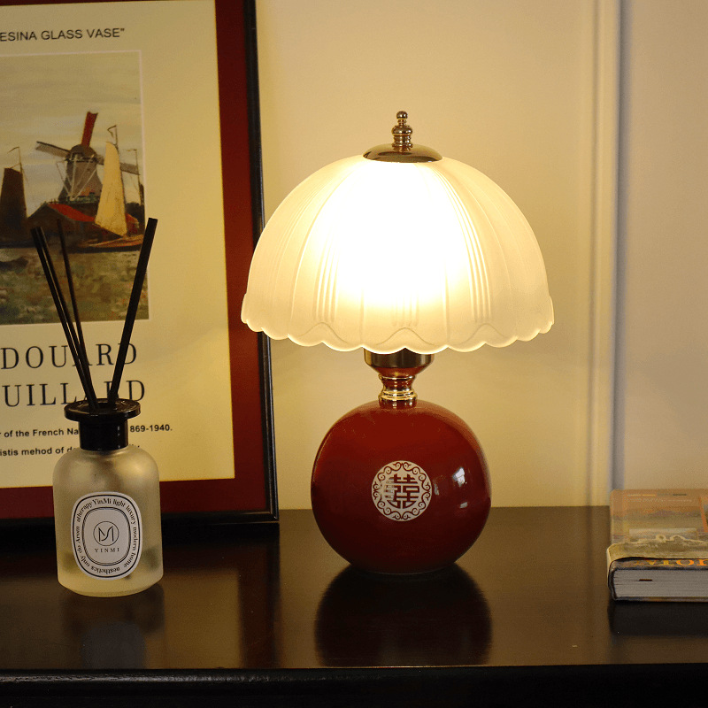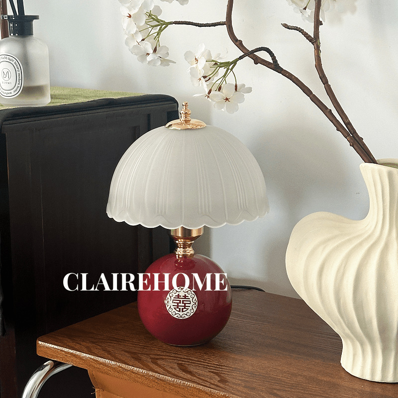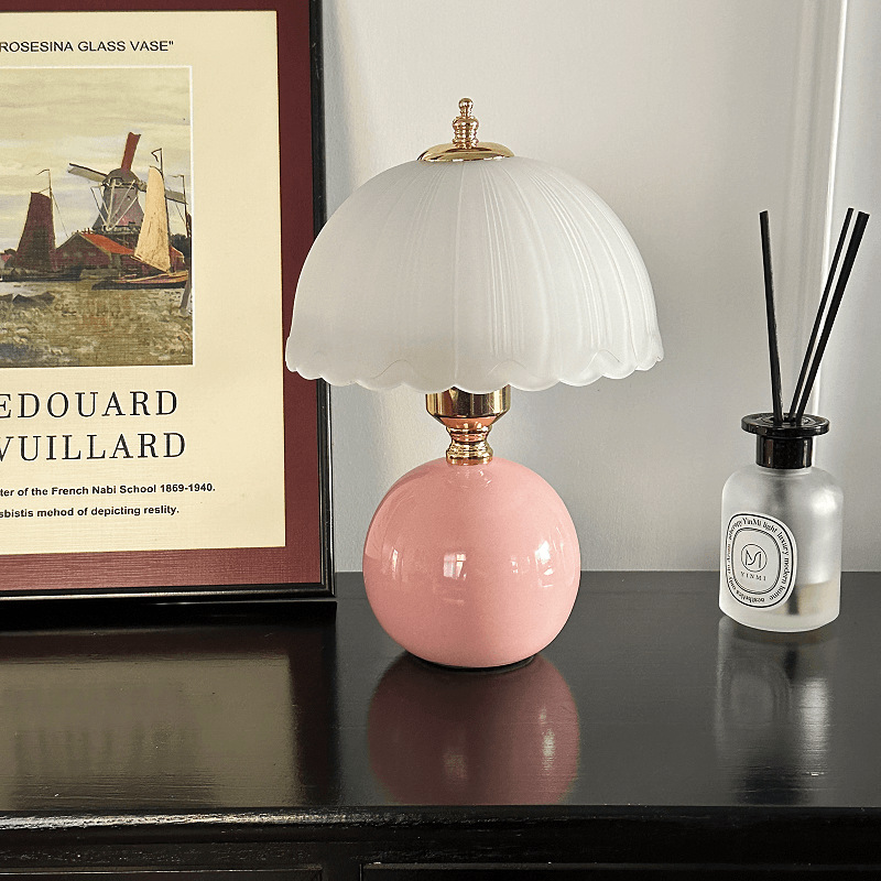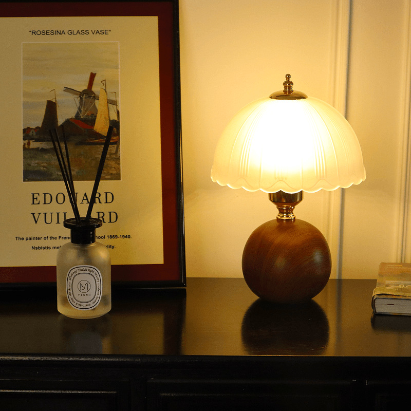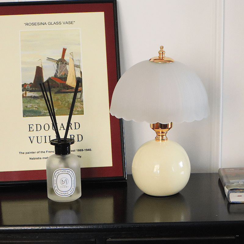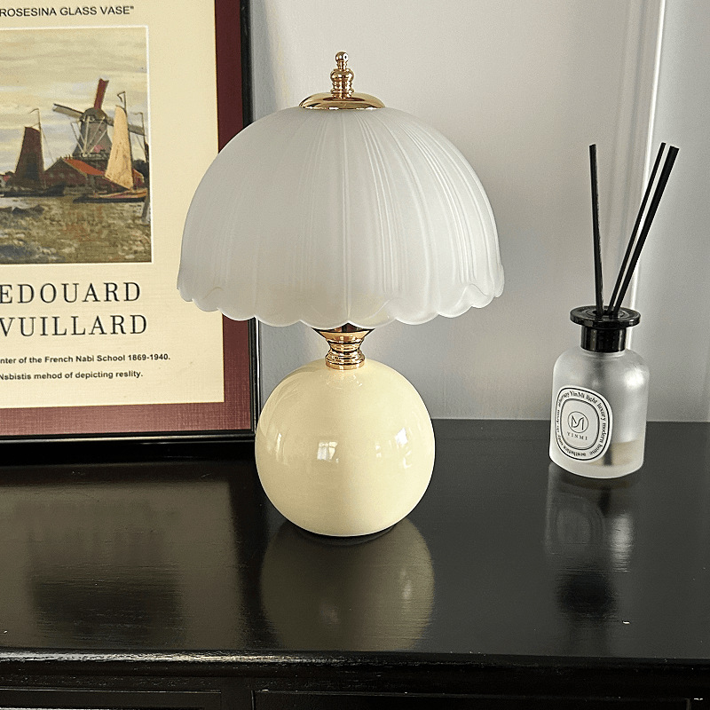 크림풍 레트로 테이블 램프 침실 2024 침대 옆 탁자 주 침실 버섯 분위기 야간 조명 조광 가능 삼색 변광