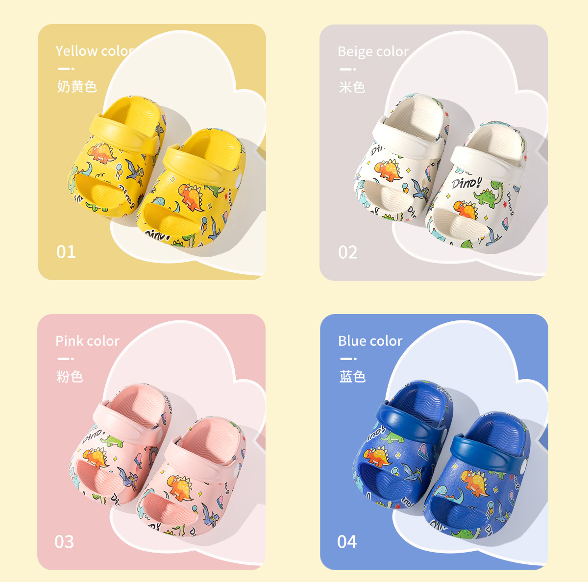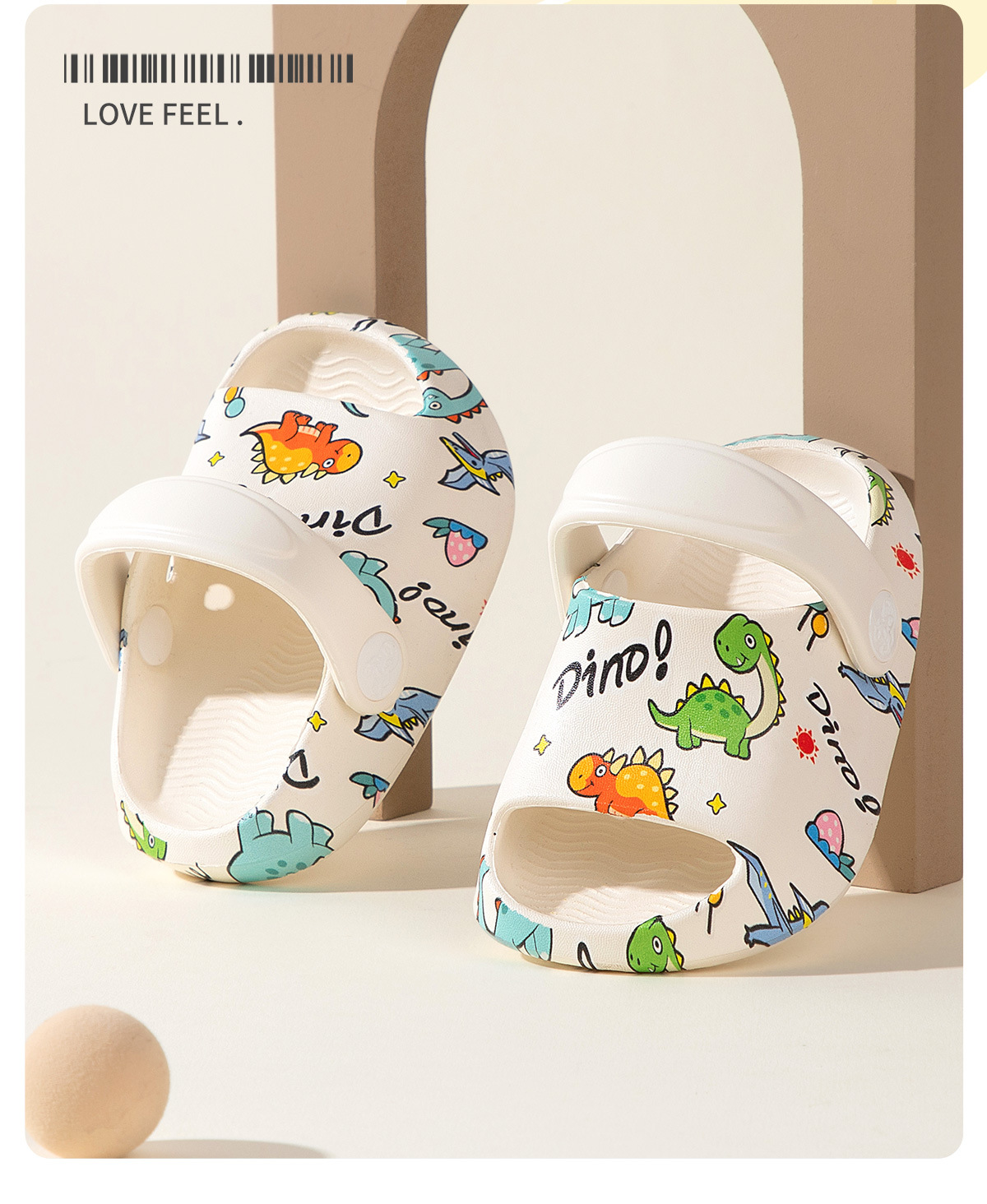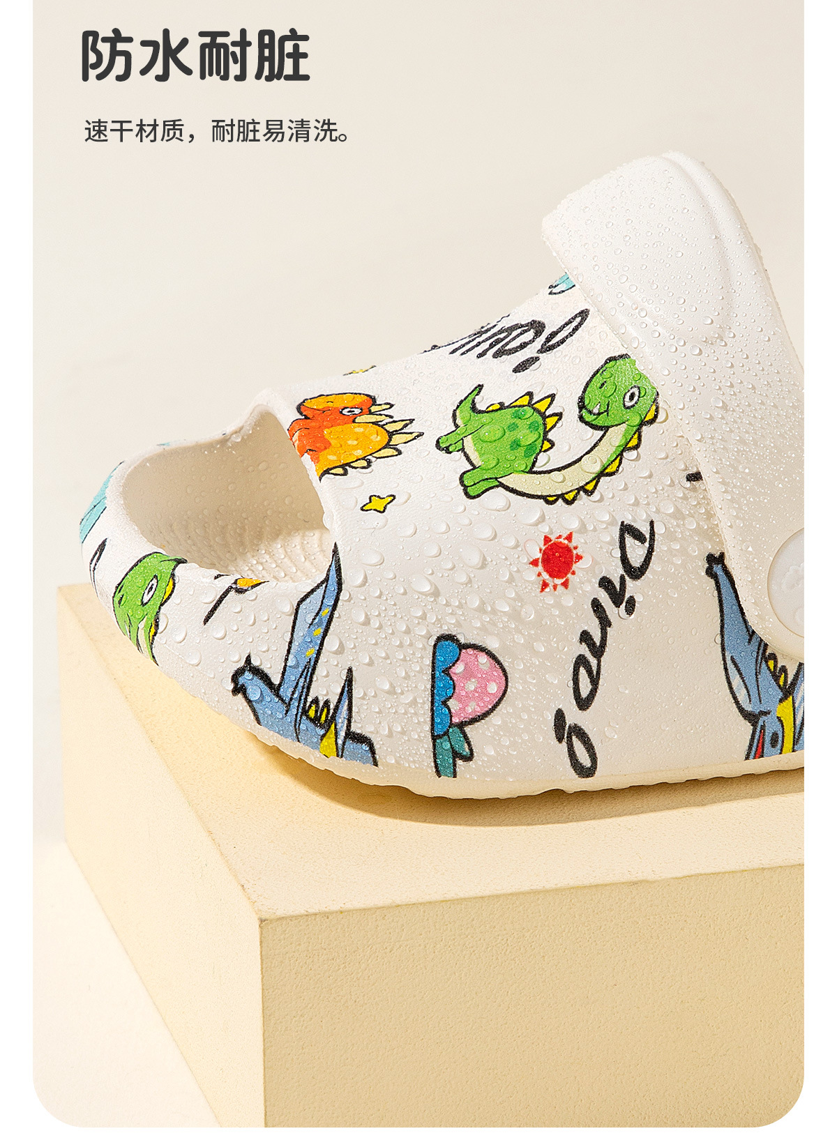 2025 새로운 어린이 샌들 도매 만화 공룡 아기 소년 인쇄 미끄럼 방지 샌들 구멍 신발 여름