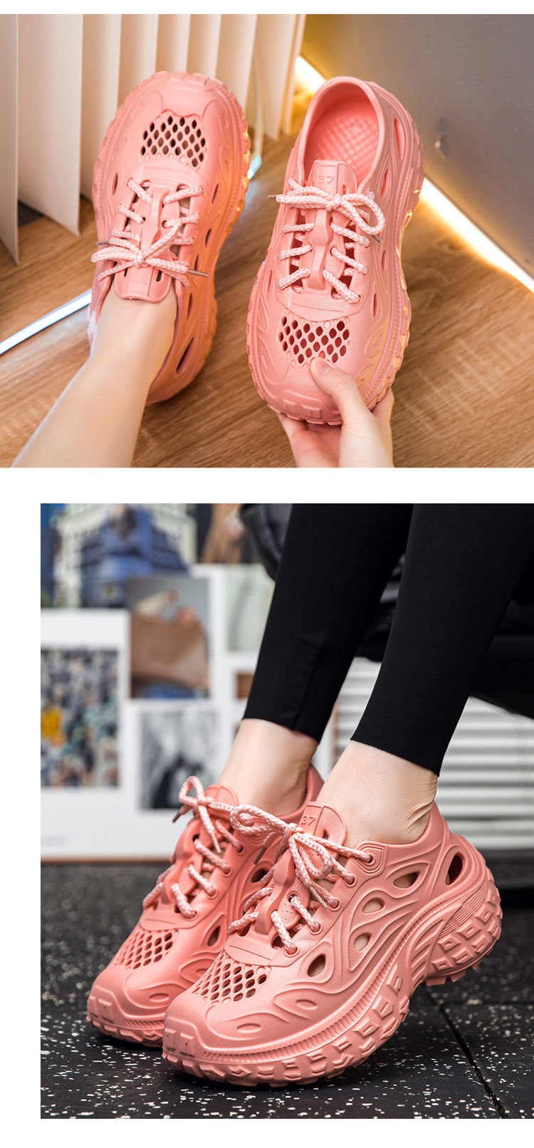 창롱 AIZMOREVA 여성용 두꺼운 부드러운 밑창 야외 캐주얼 스포츠화 구멍 스타일 운동화 편안하고 가벼움스토어 가기