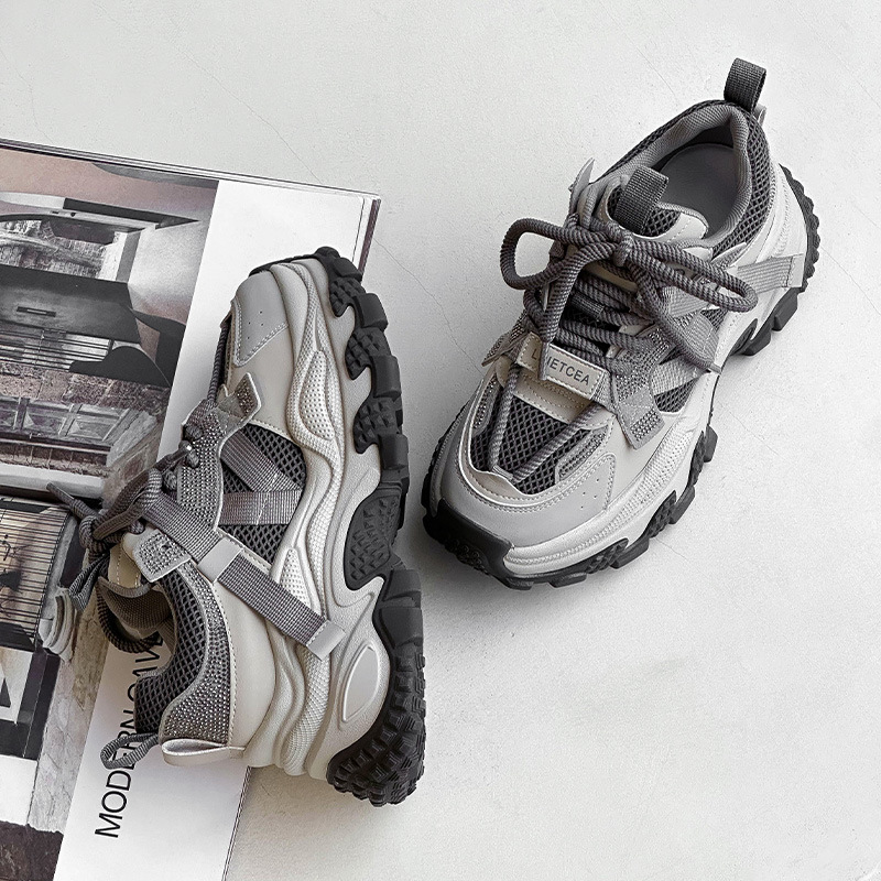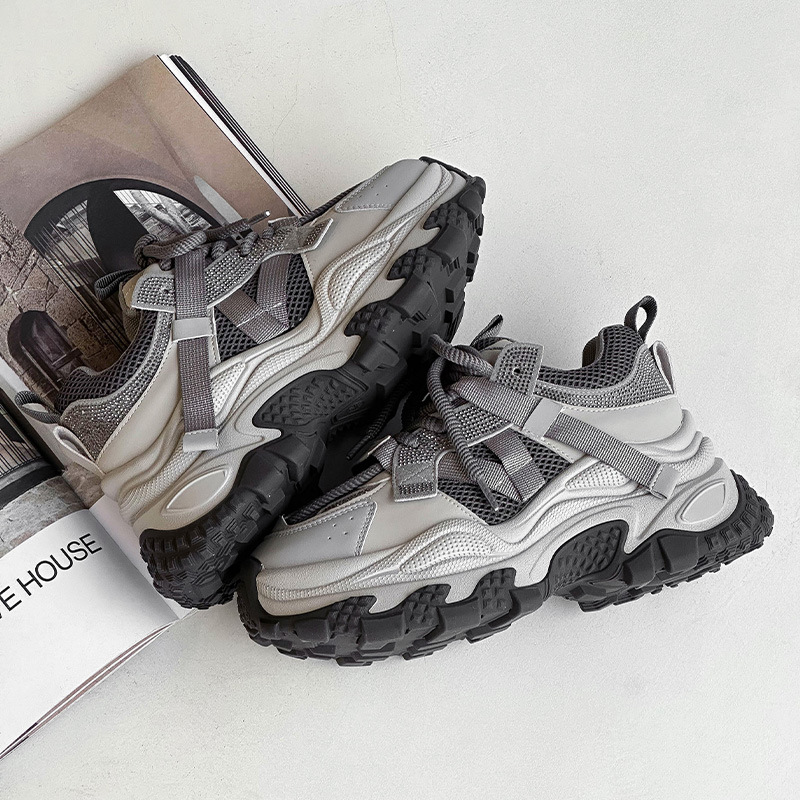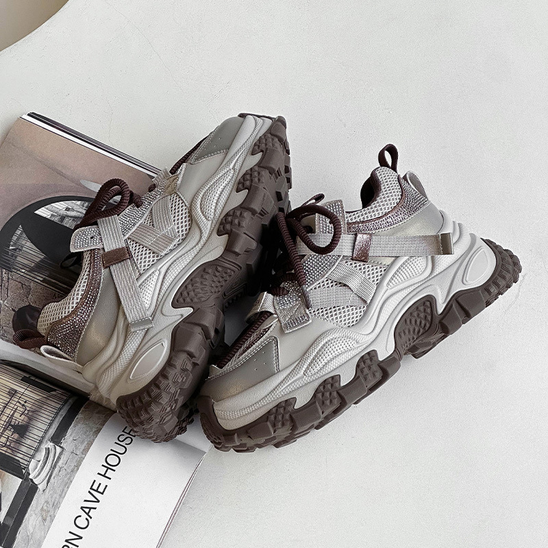 정품 가죽 두꺼운 밑창 높이 증가 신발 리틀 토레 여성의 2025 봄 새로운 여성 신발 라인스톤 스포츠 캐주얼 신발
