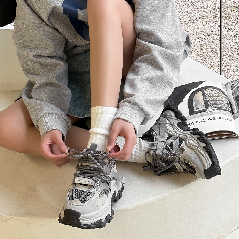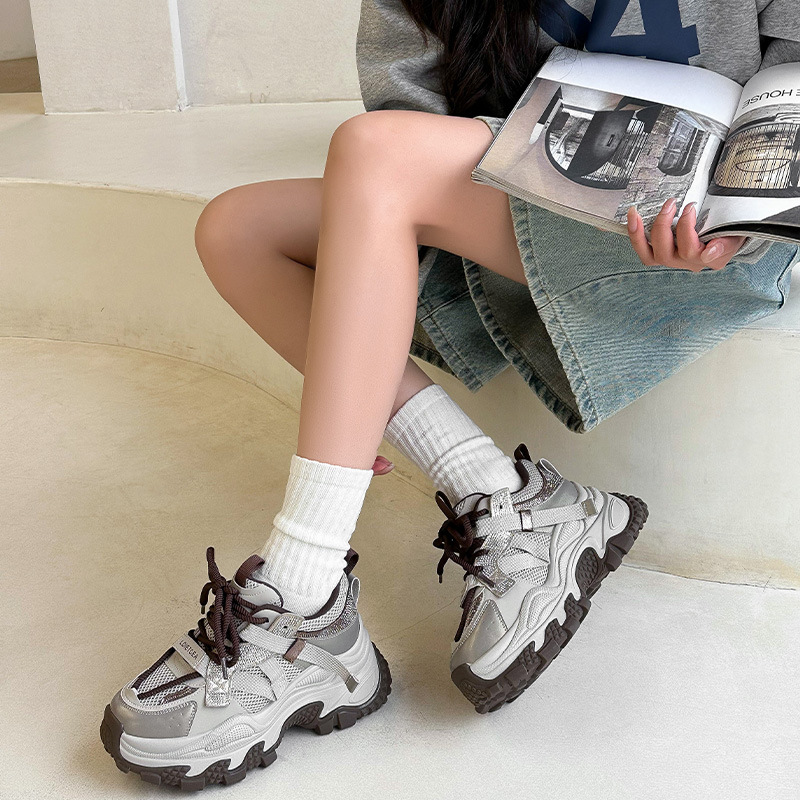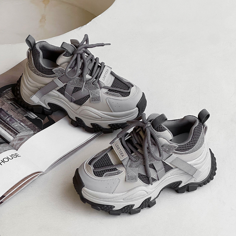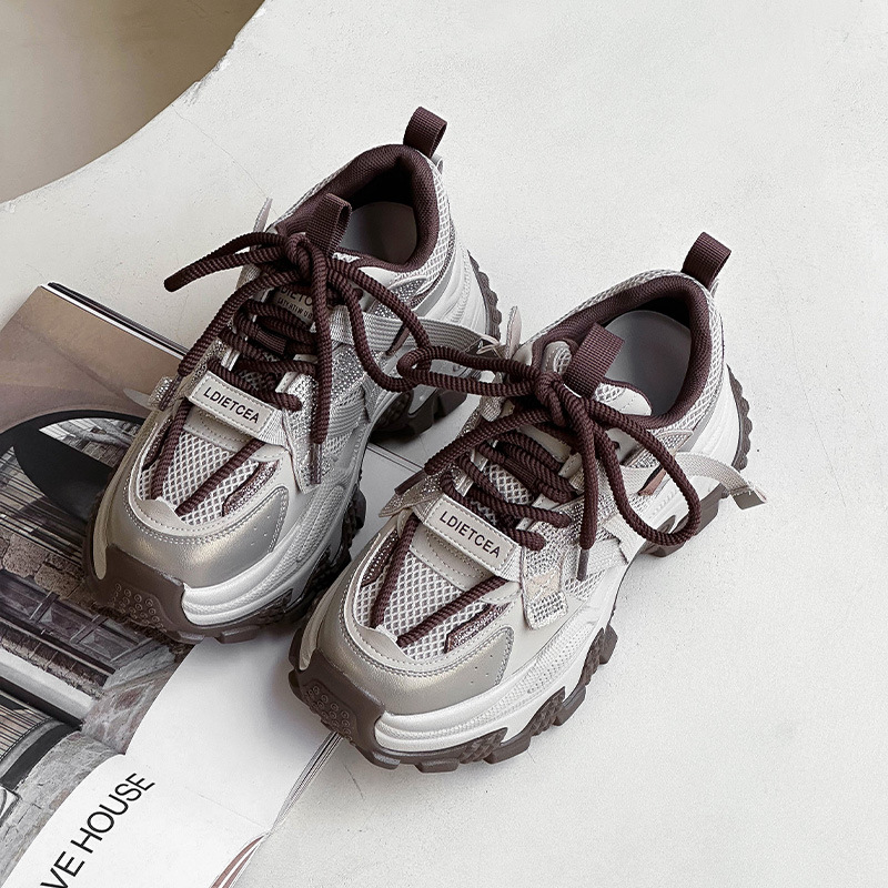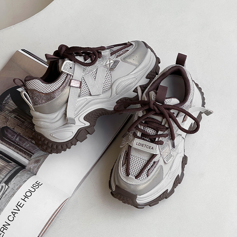 정품 가죽 두꺼운 밑창 높이 증가 신발 리틀 토레 여성의 2025 봄 새로운 여성 신발 라인스톤 스포츠 캐주얼 신발스토어 가기
