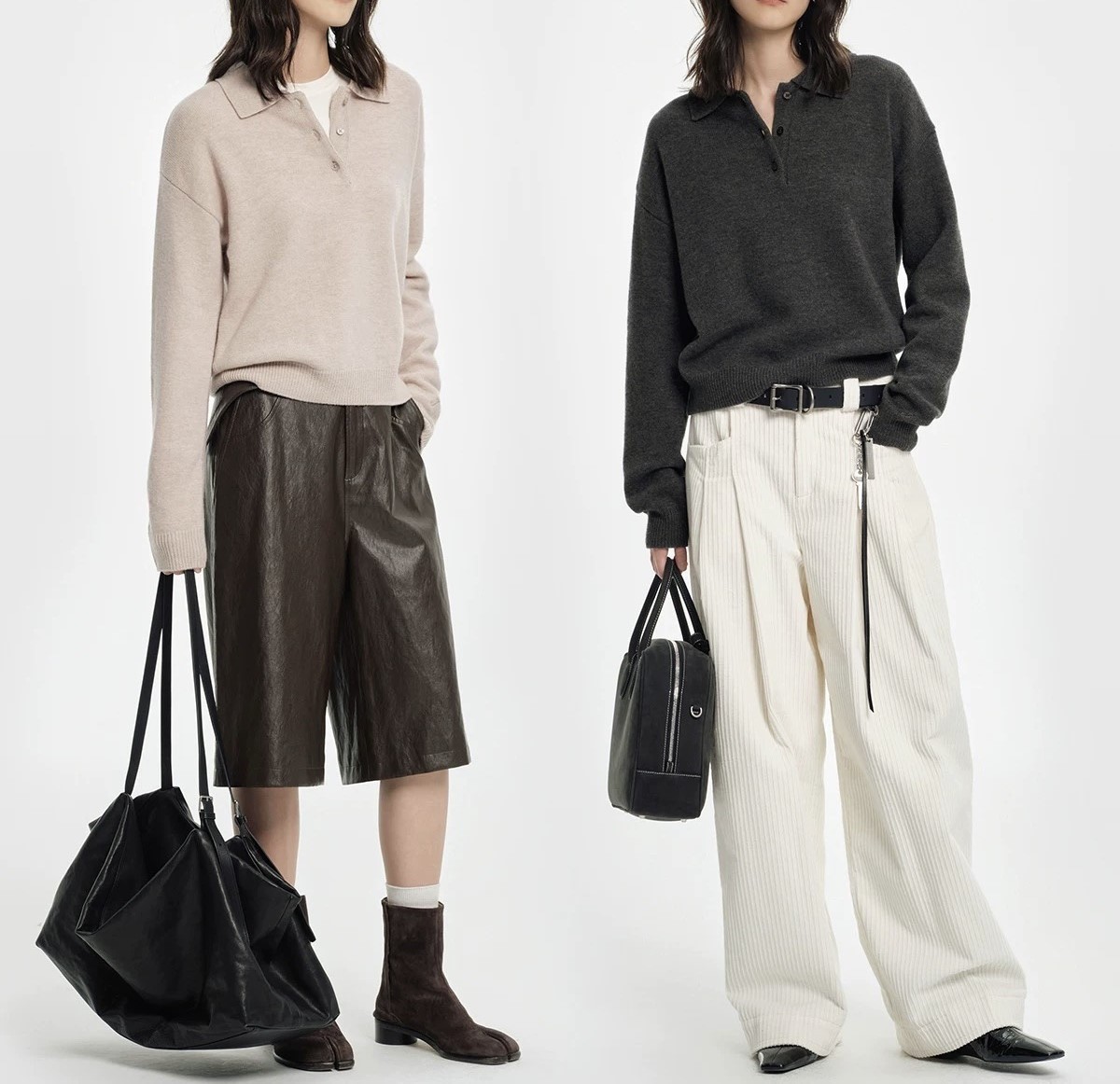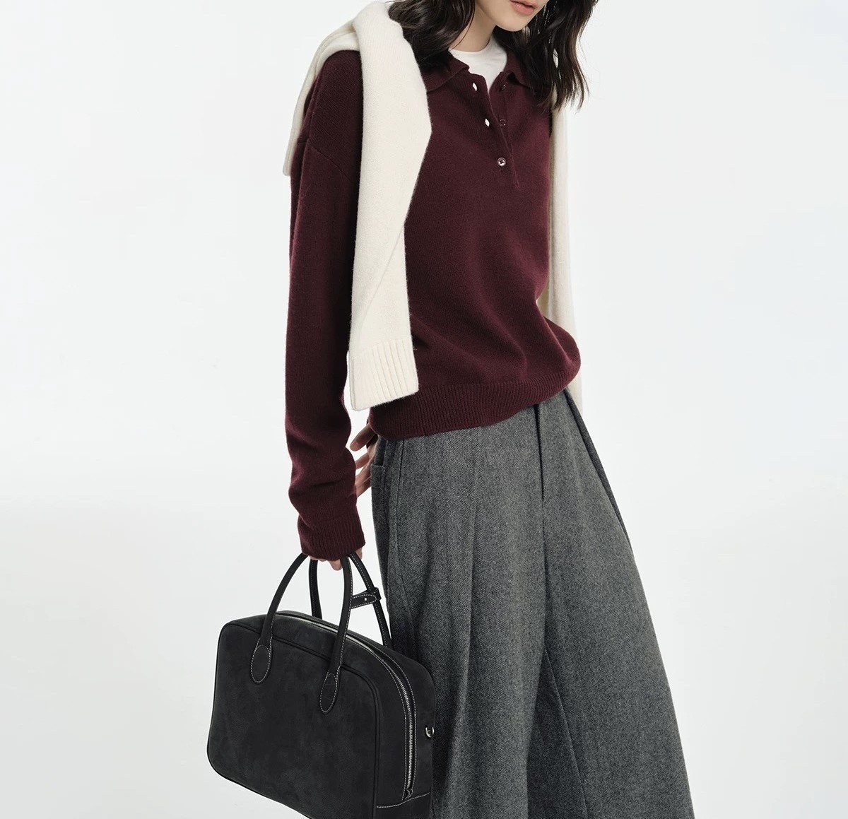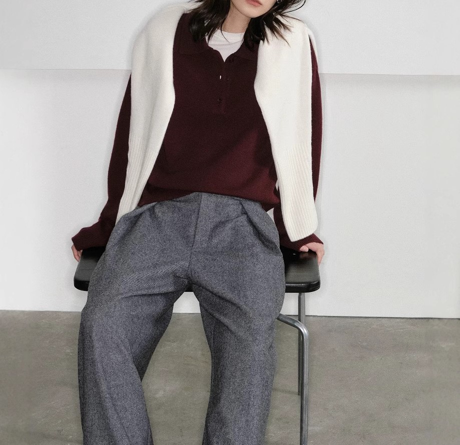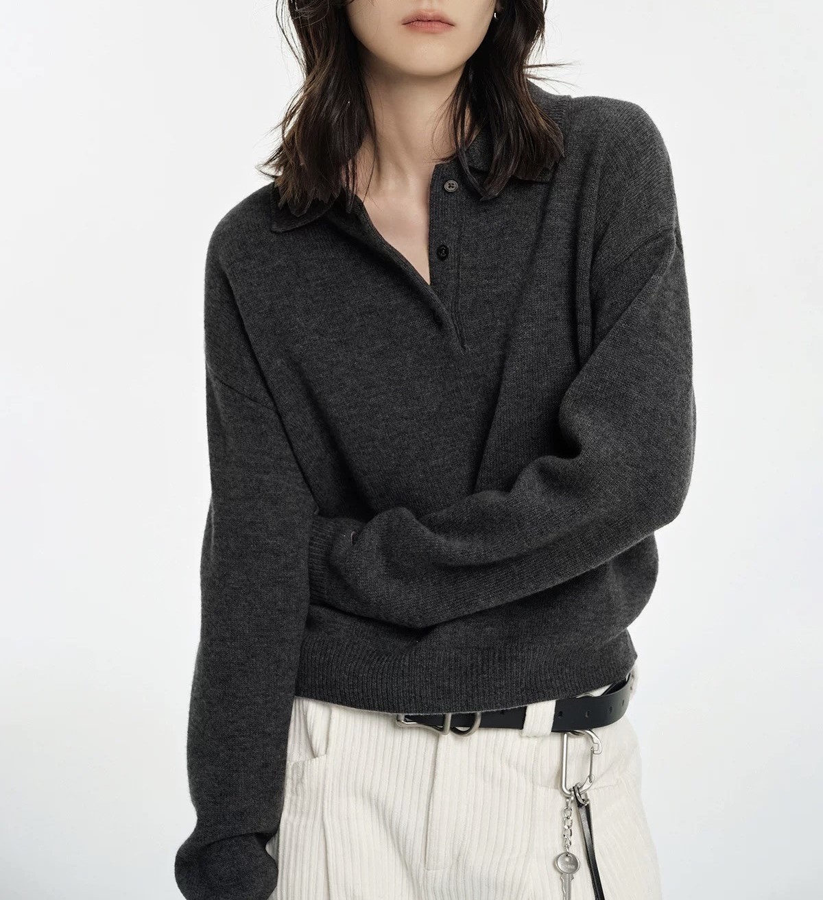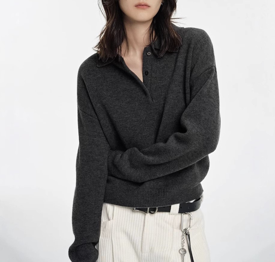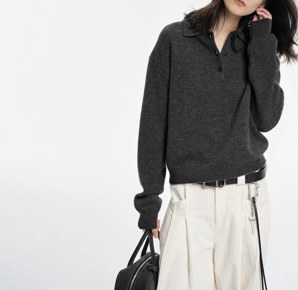 하이 퀄리티 울 M * iu 스태킹 웨어 레트로 조커 폴로 옷깃 여성용 봄과 가을 니트 스웨터