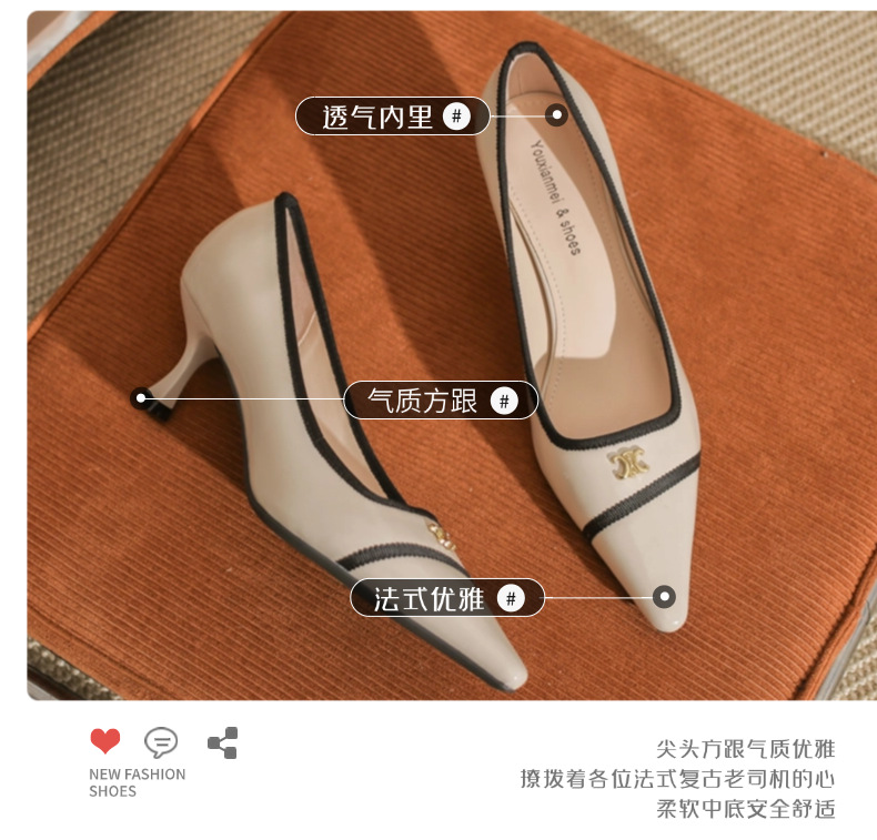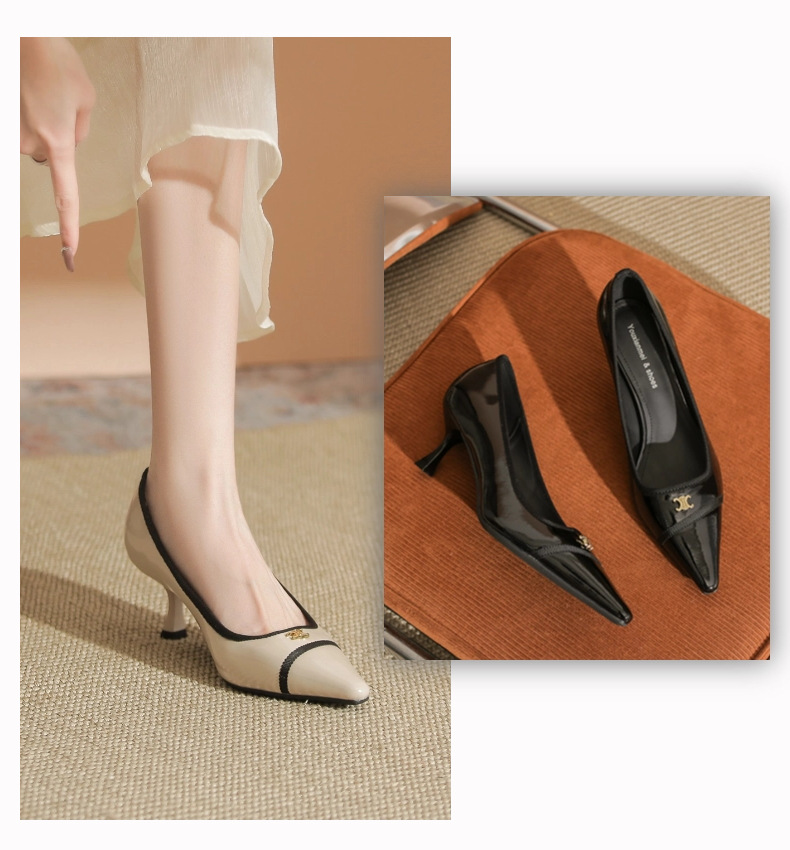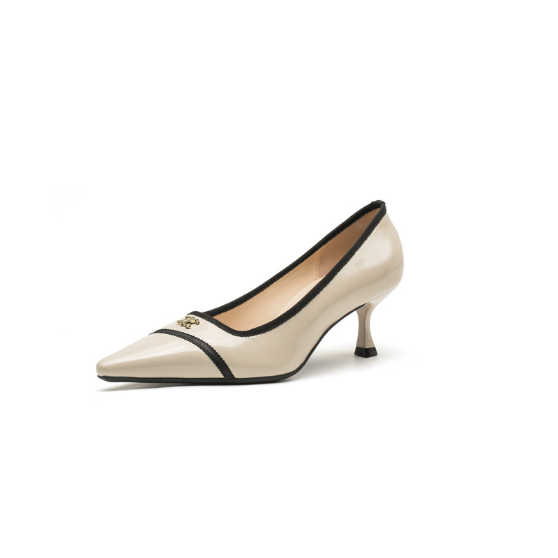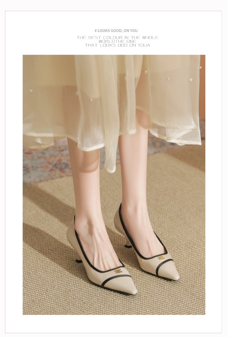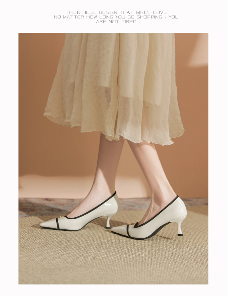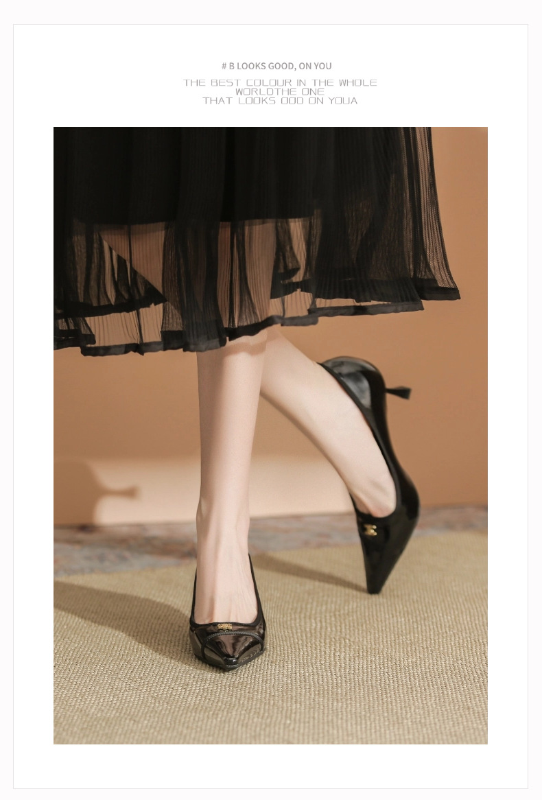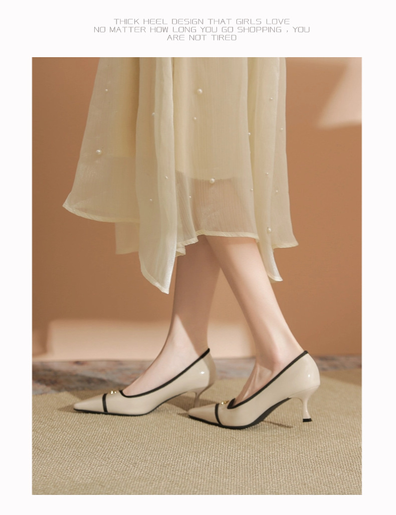 532-6 플랫 레트로 프렌치 하이힐 여성 하이 엔드 센스 블랙 기질 여성 신발 새로운 스타일 샤넬 스타일 신발