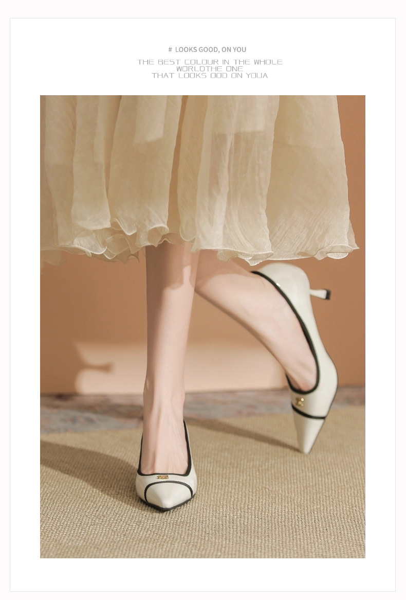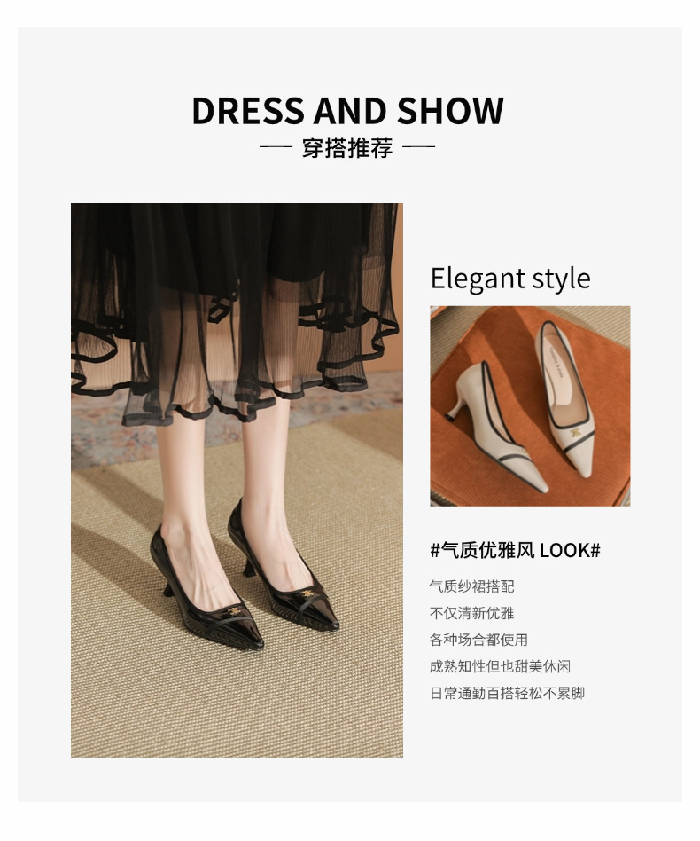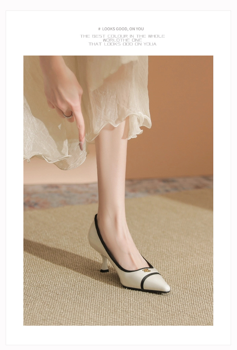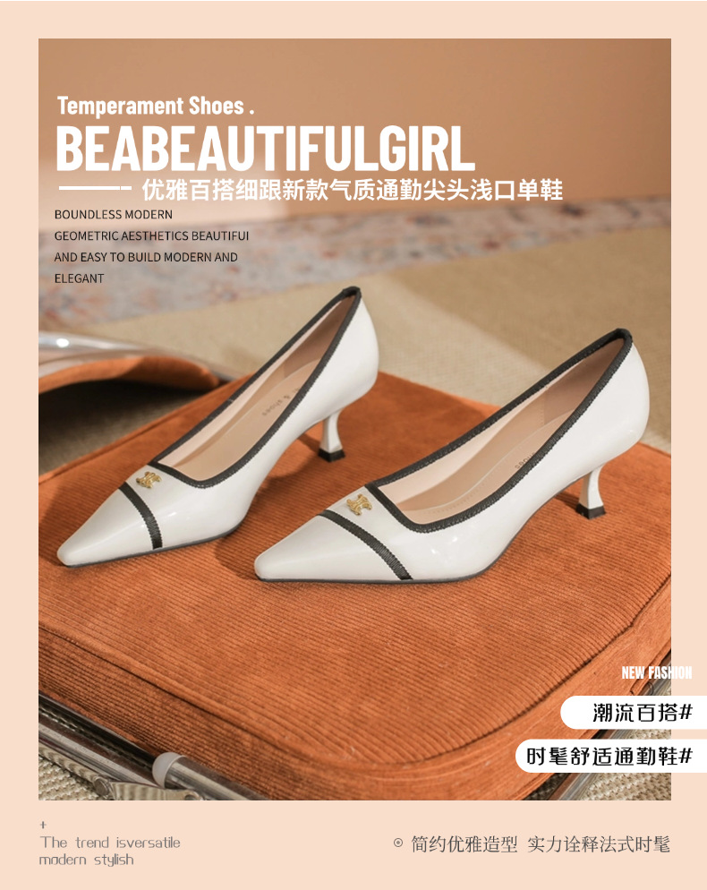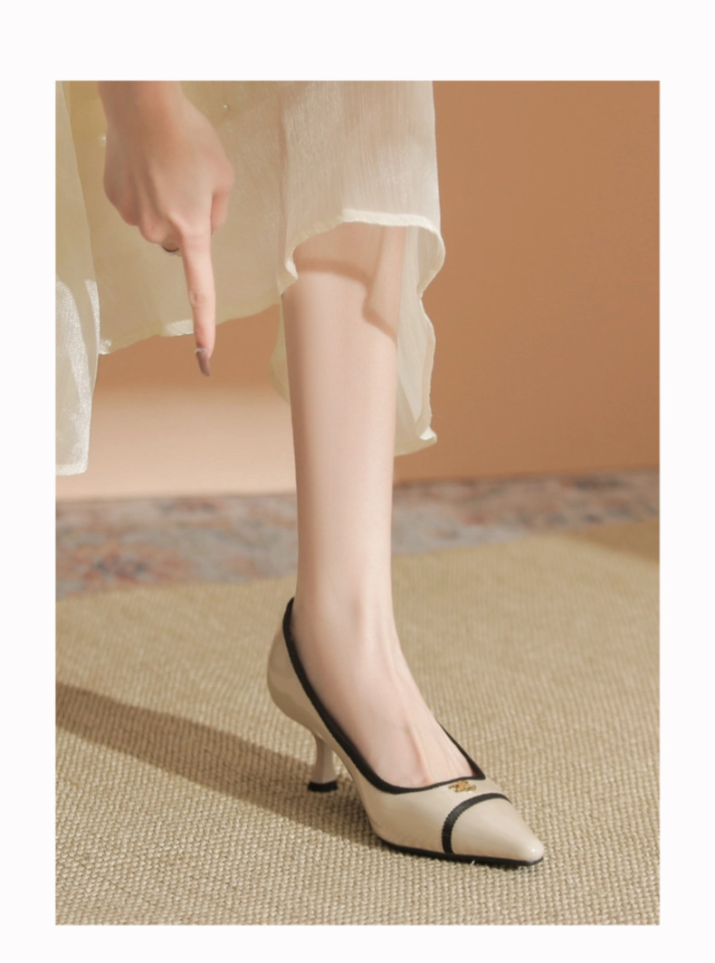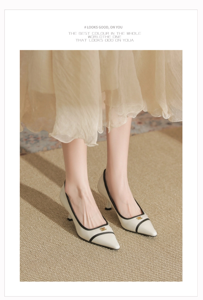 532-6 플랫 레트로 프렌치 하이힐 여성 하이 엔드 센스 블랙 기질 여성 신발 새로운 스타일 샤넬 스타일 신발