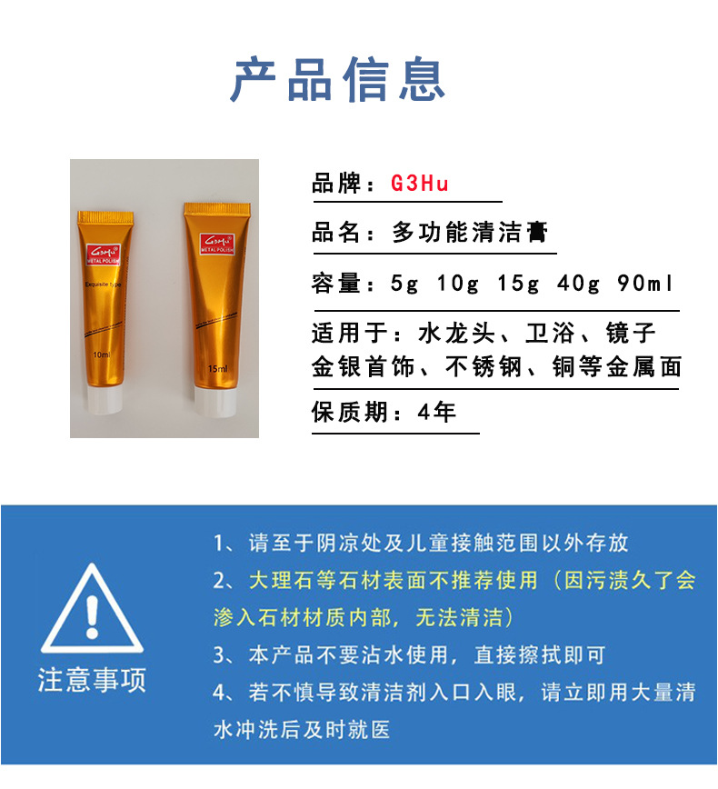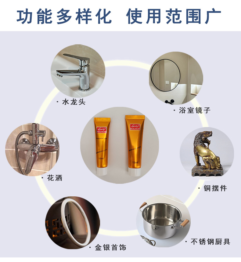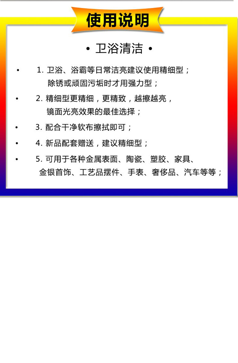 스테인리스 세척제, 가정용 금속 광택제, 화상자국 및 검은때 세척제, 광택 및 녹 제거제, 얼룩 제거제