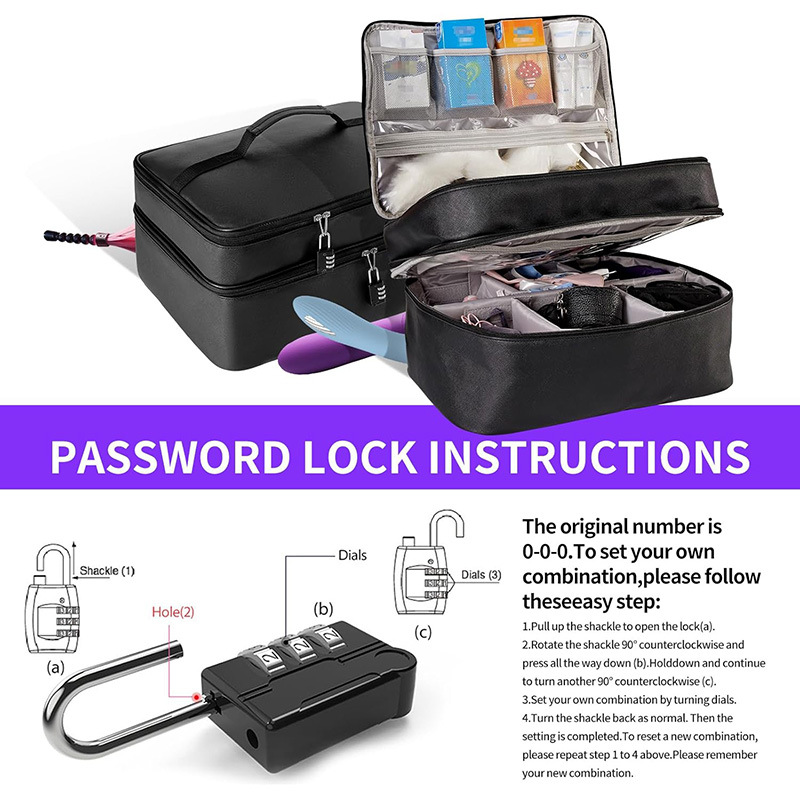 PU 가죽 대용량 비밀번호 잠금 수납 가방, 다기능 여행용 장난감 수납 및 성인용품 보관 가방스토어 가기
