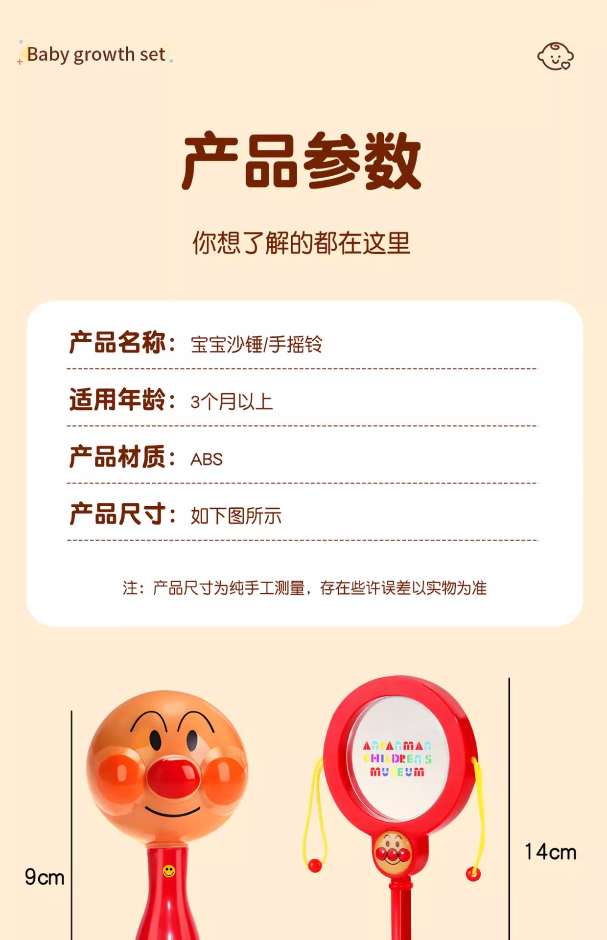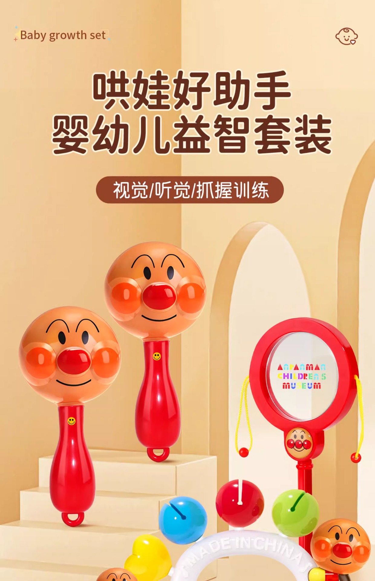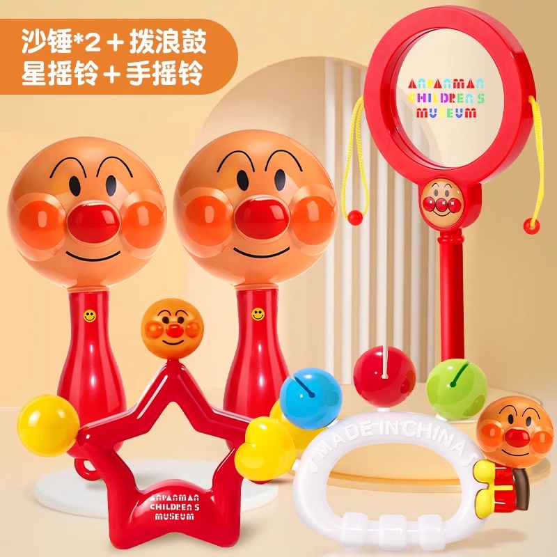 호빵맨 핸드스틱 아기 딸랑이 장난감 모래 망치 신생아 진정 딸랑이 그립 교육 조기 교육스토어 가기
