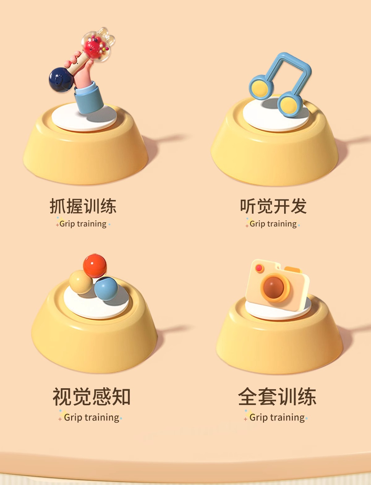 • 핸드벨 1개 + 마라카스 1개 + 딸랑이 1개 [잡기 훈련 + 청각 훈련 + 비전 훈련]