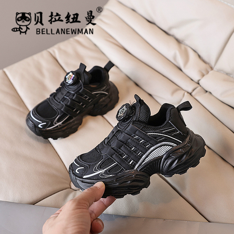 미끄럼 방지 아동화, 회전 버튼 운동화, 봄 가을 신상 한국판 여아 인터넷 연예인 스타일 가볍고 세련된 런닝화, 큰 아이용스토어 가기