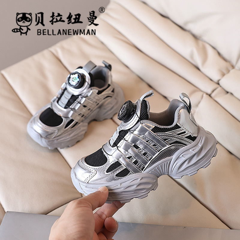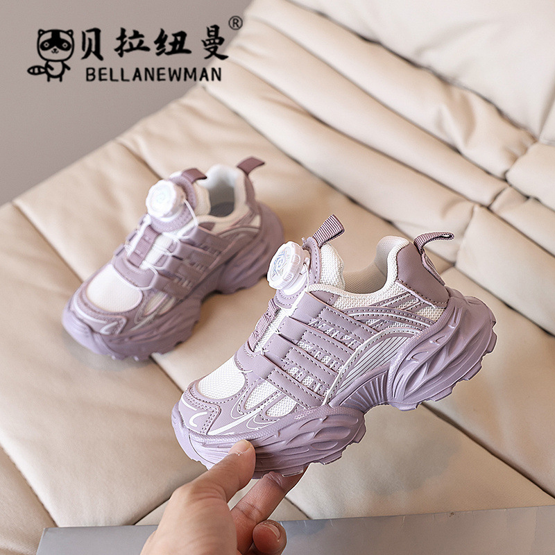 미끄럼 방지 아동화, 회전 버튼 운동화, 봄 가을 신상 한국판 여아 인터넷 연예인 스타일 가볍고 세련된 런닝화, 큰 아이용