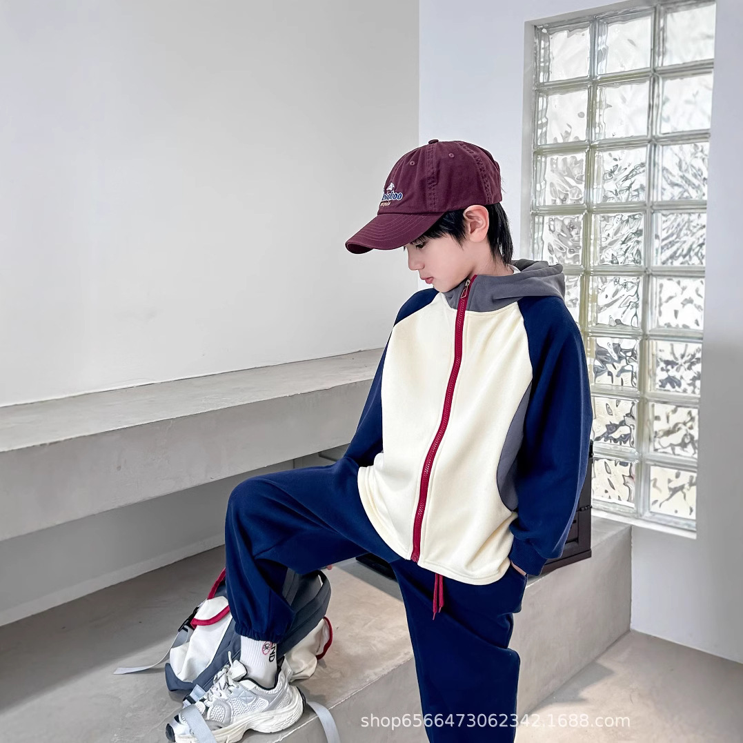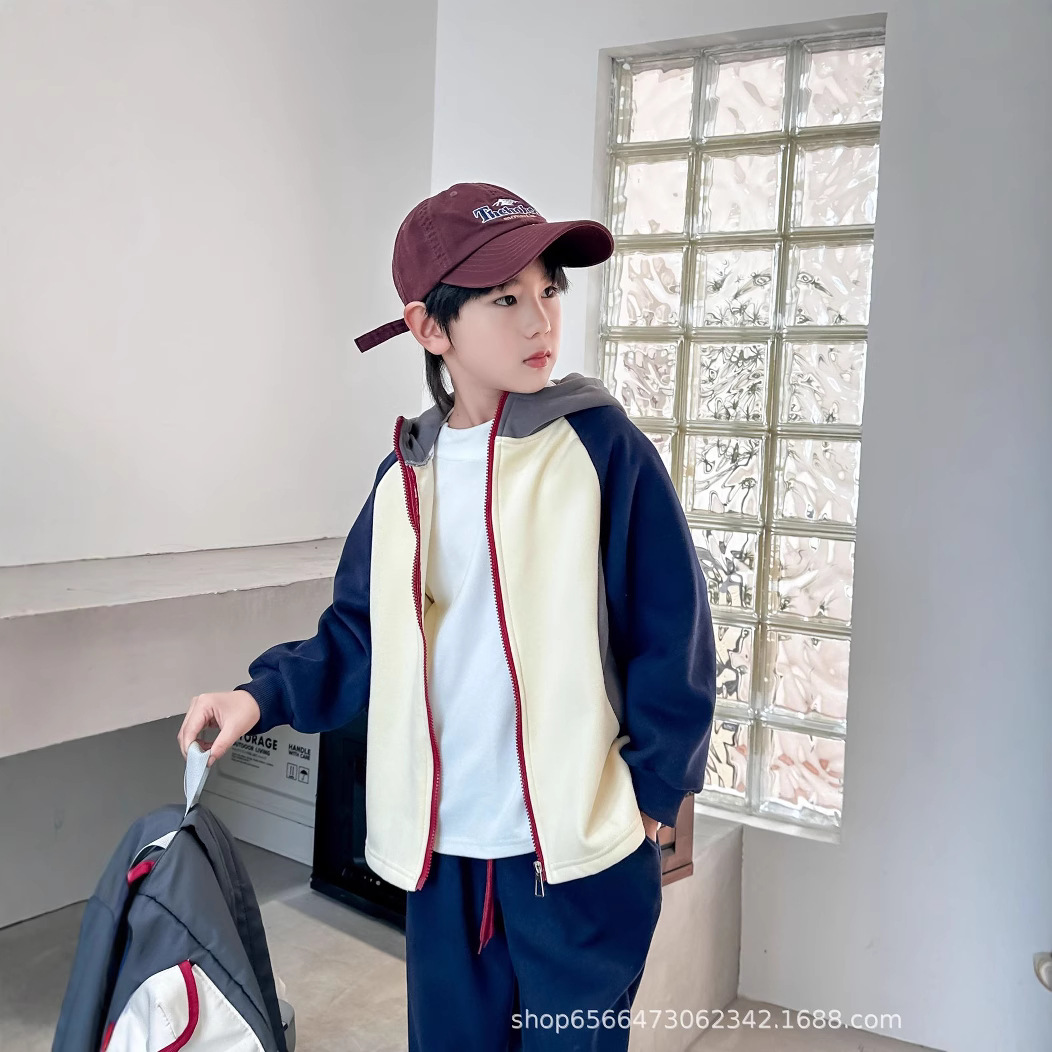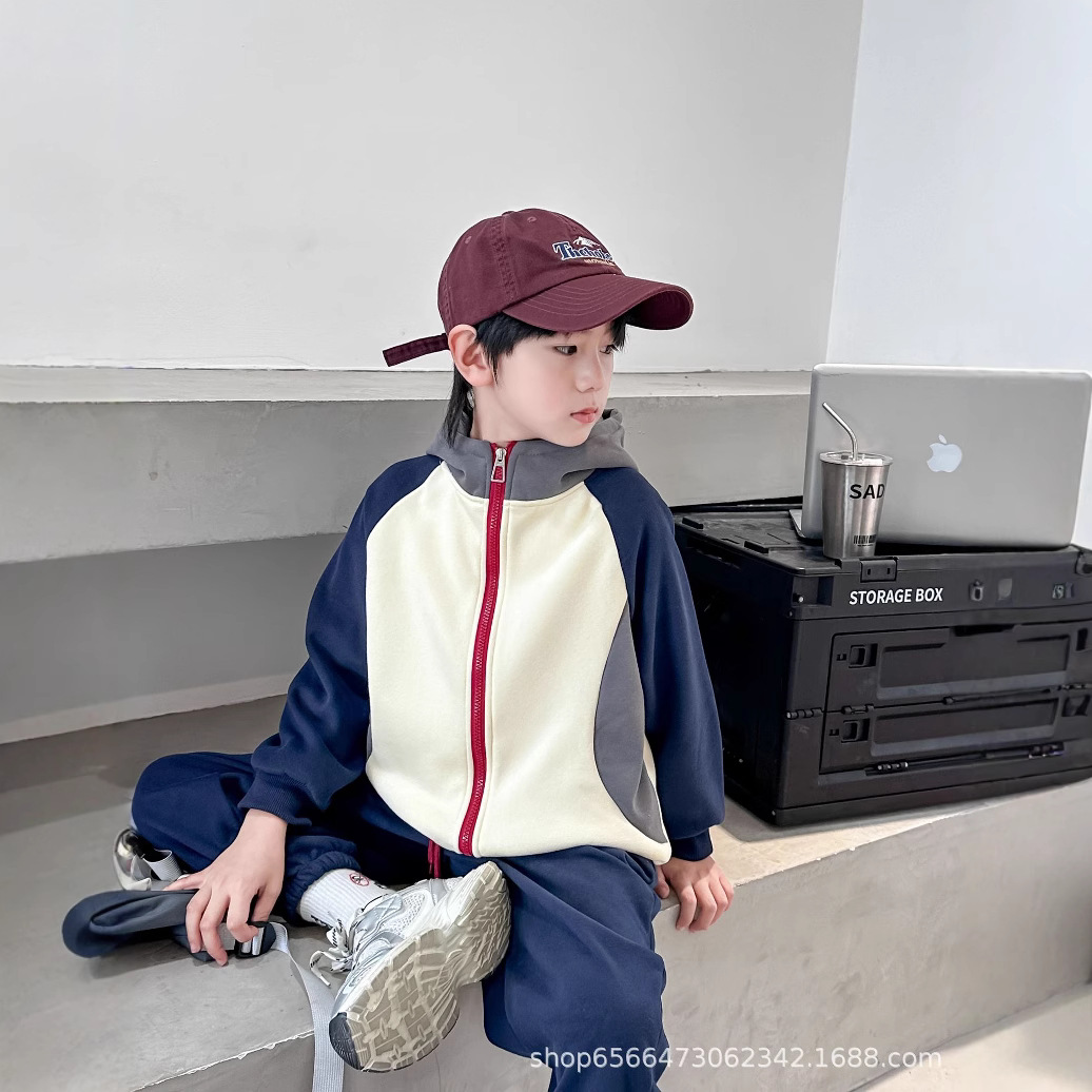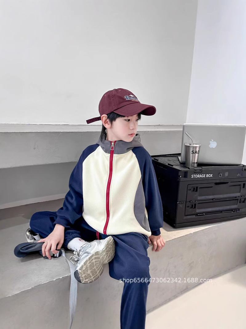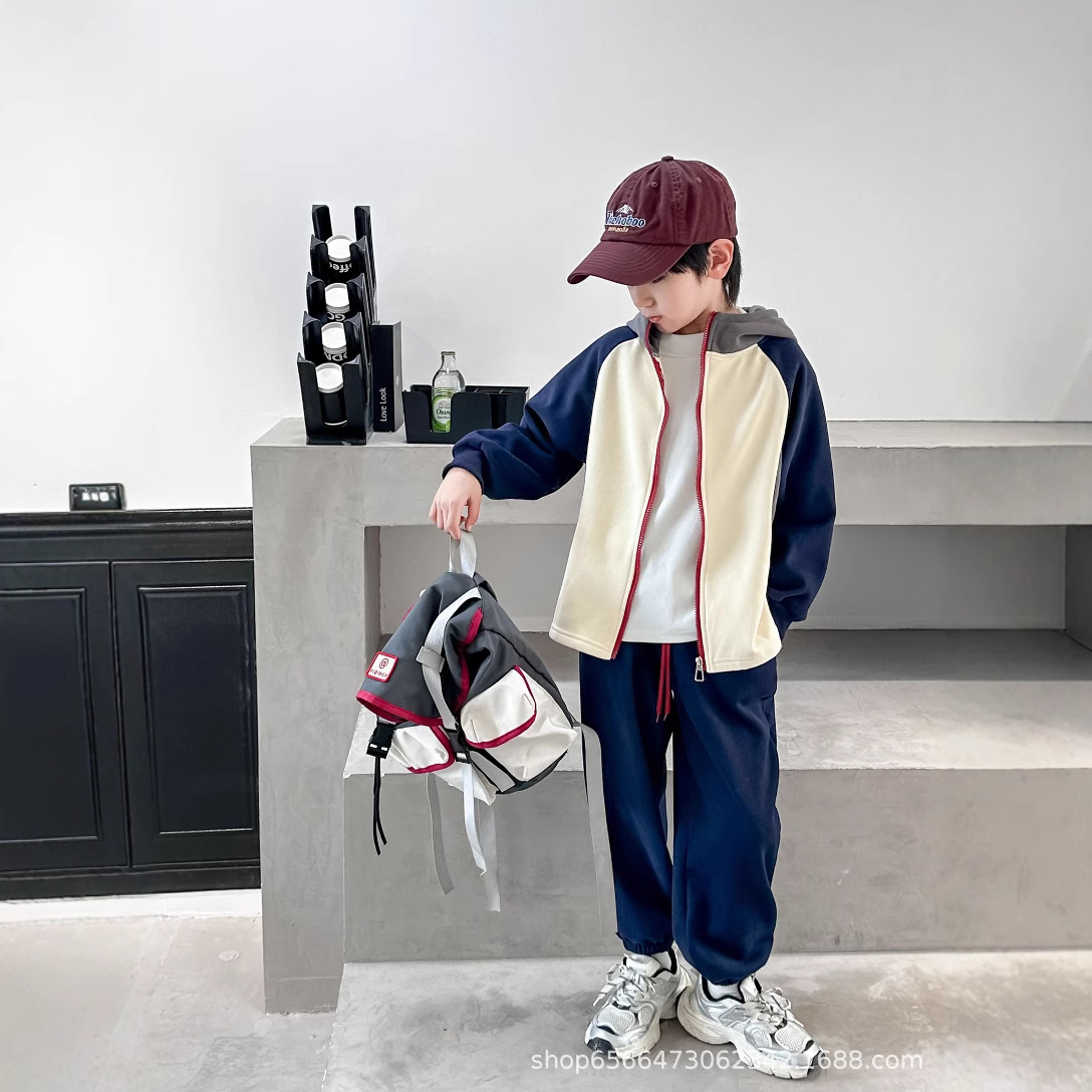 남아 여아 봄 가을 세트 2024 컬러 블록 자켓과 바지 투피스 세트, 후드가 있는 유아용 다용도 겨울 패치워크스토어 가기
