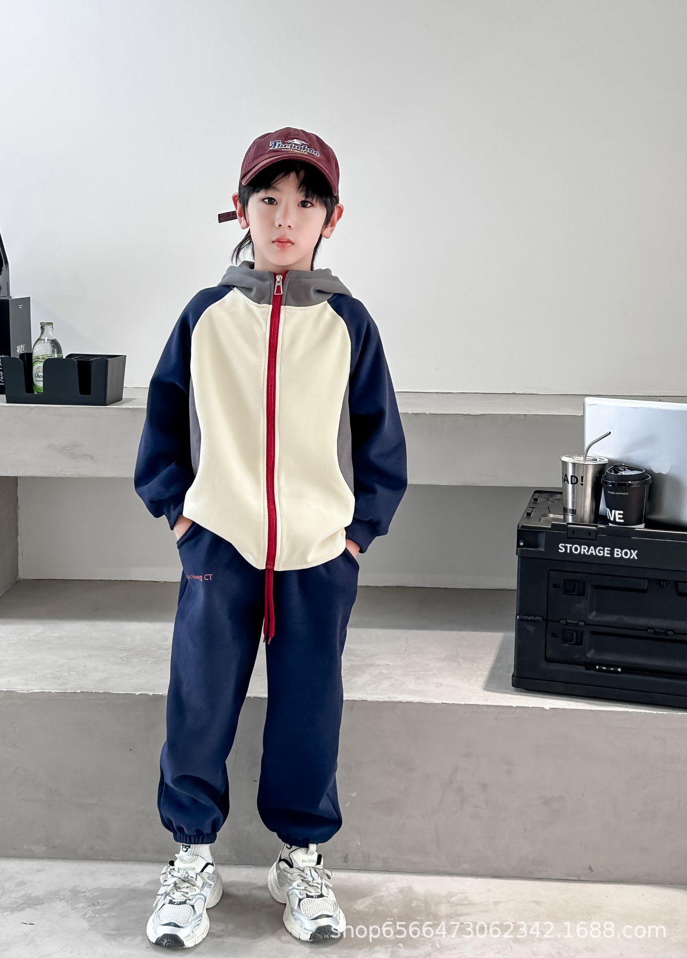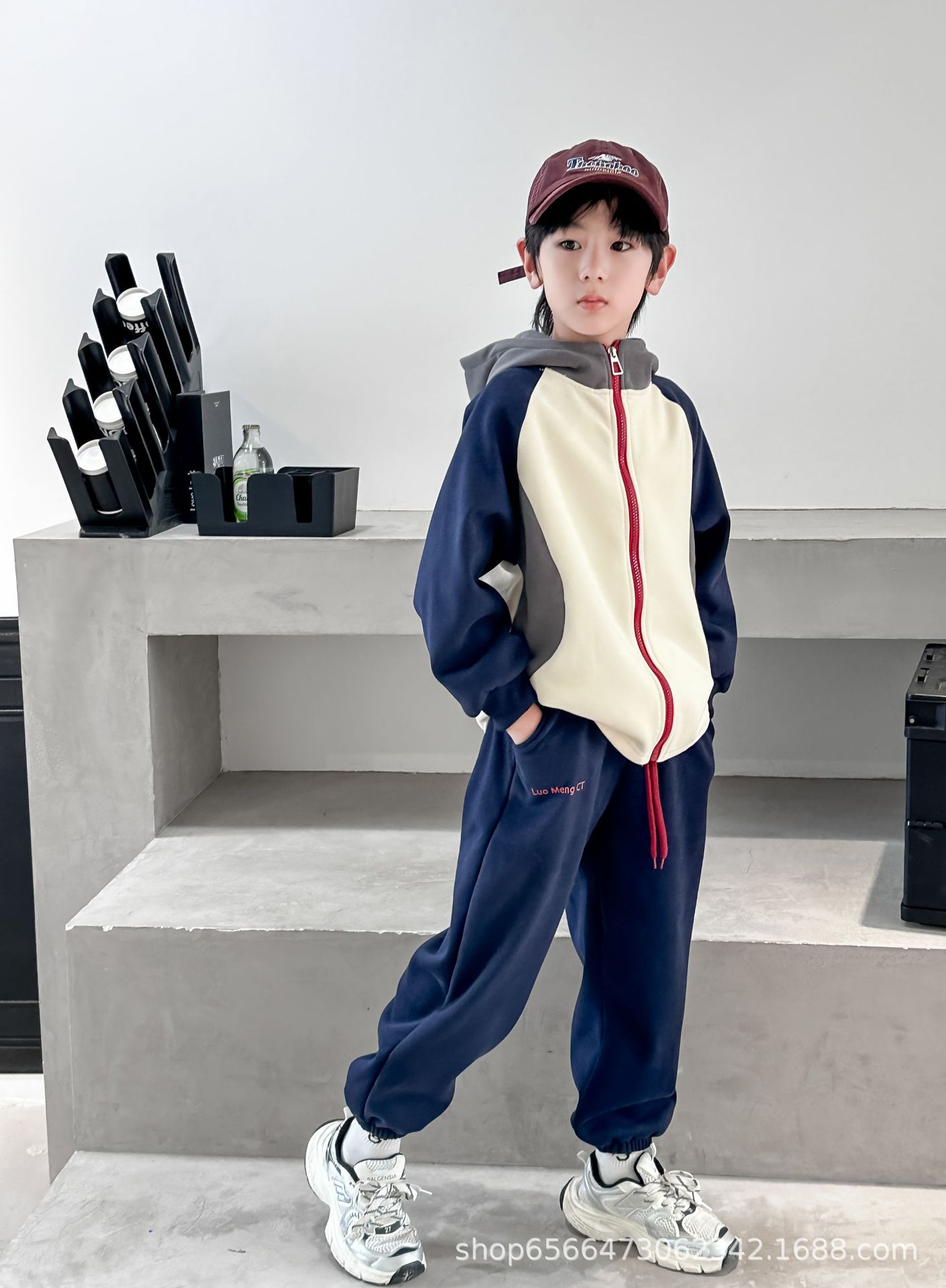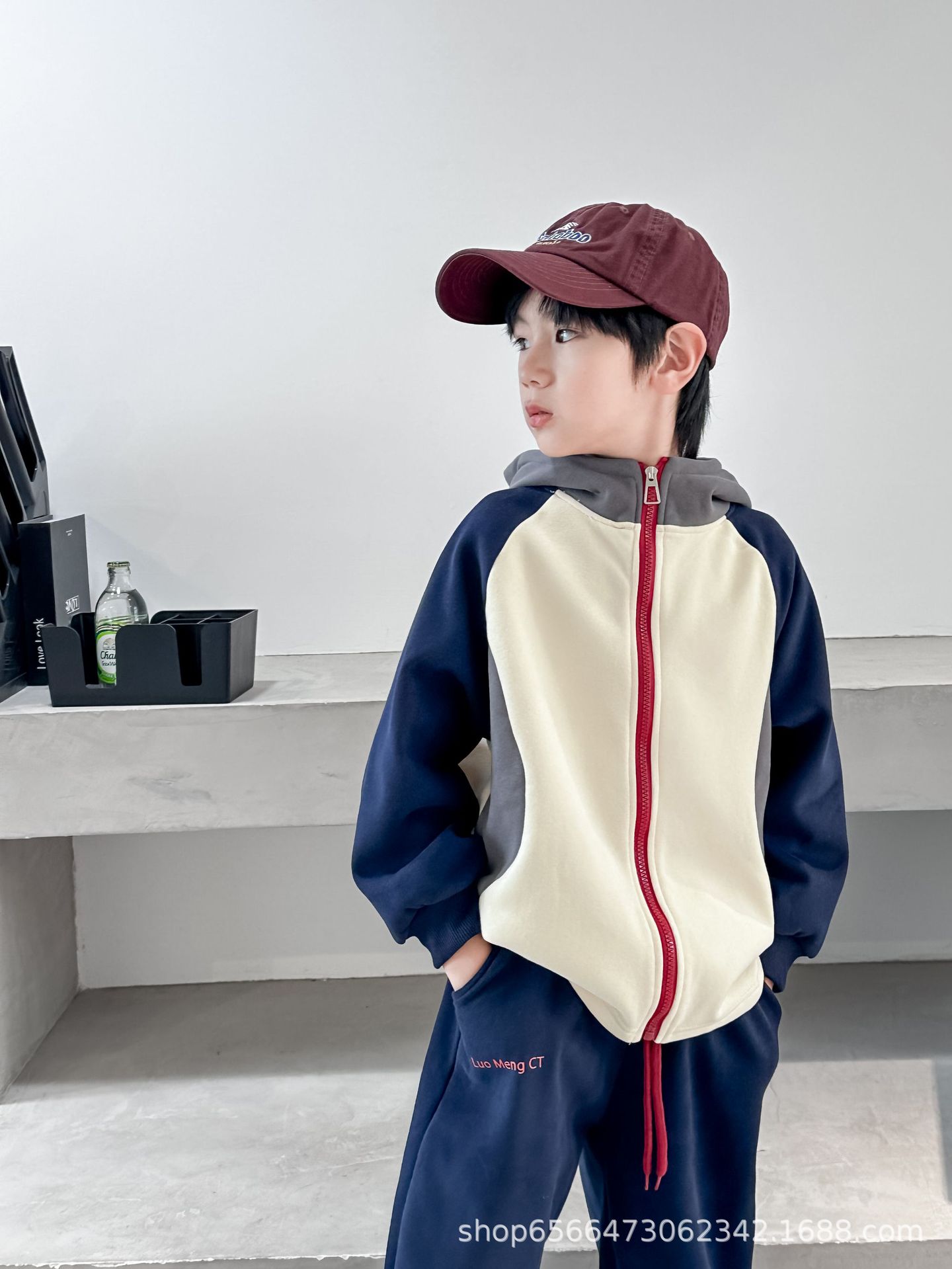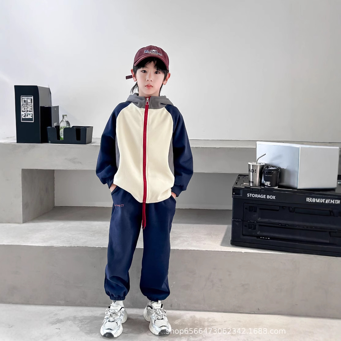 남아 여아 봄 가을 세트 2024 컬러 블록 자켓과 바지 투피스 세트, 후드가 있는 유아용 다용도 겨울 패치워크스토어 가기