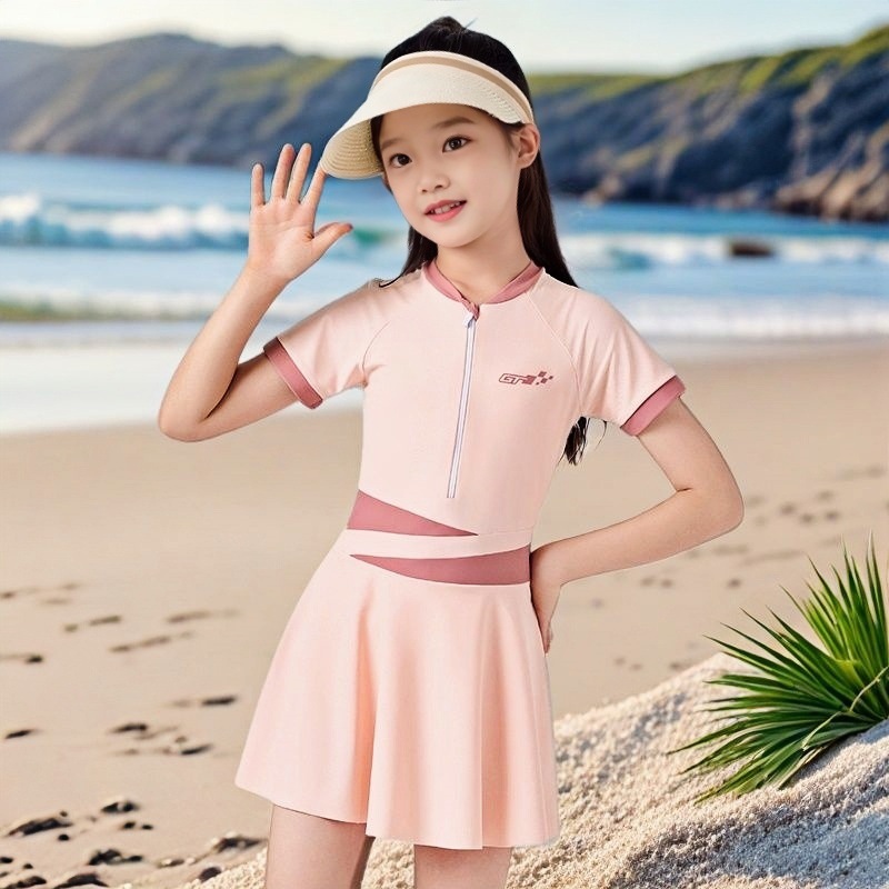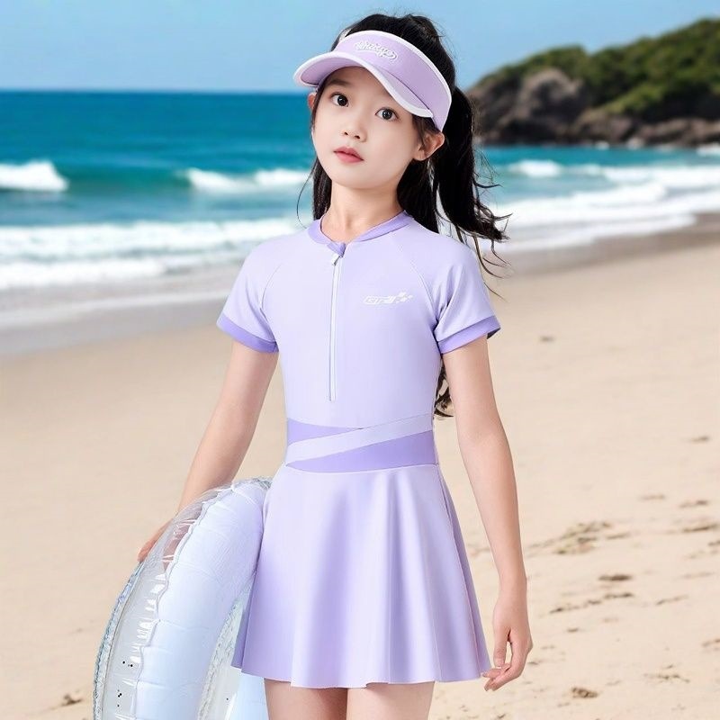 어린이 수영복 여아 2026년 신상 중학생용 보수적이고 전문적인 자외선 차단 속건 수영복 중년 이상 여아용 수영복