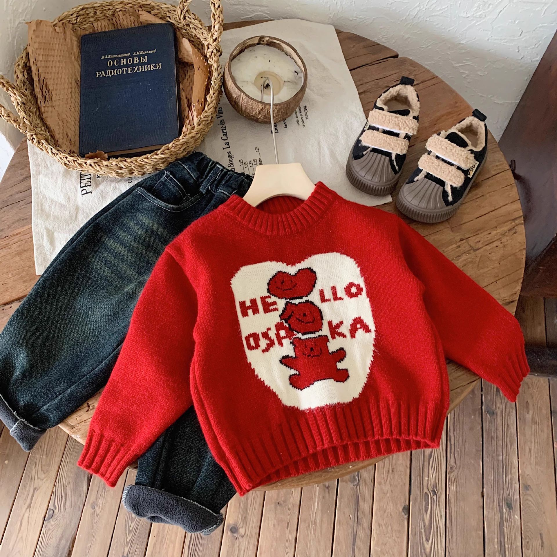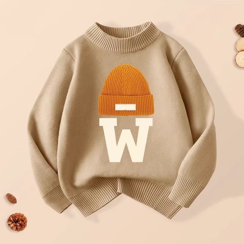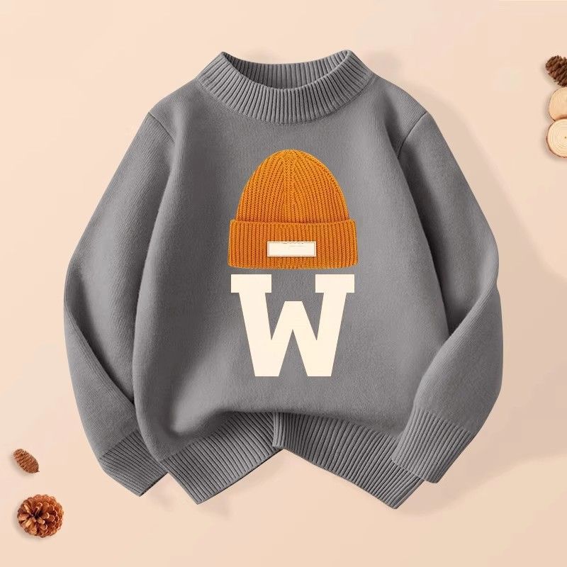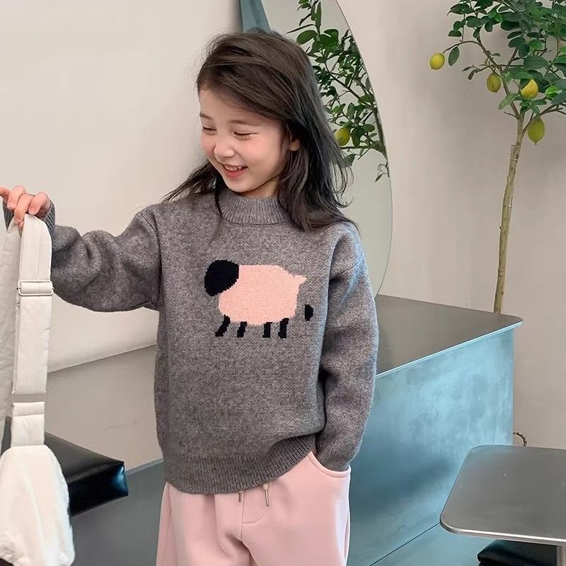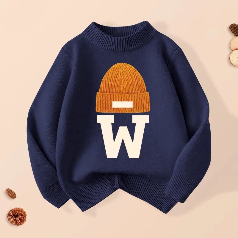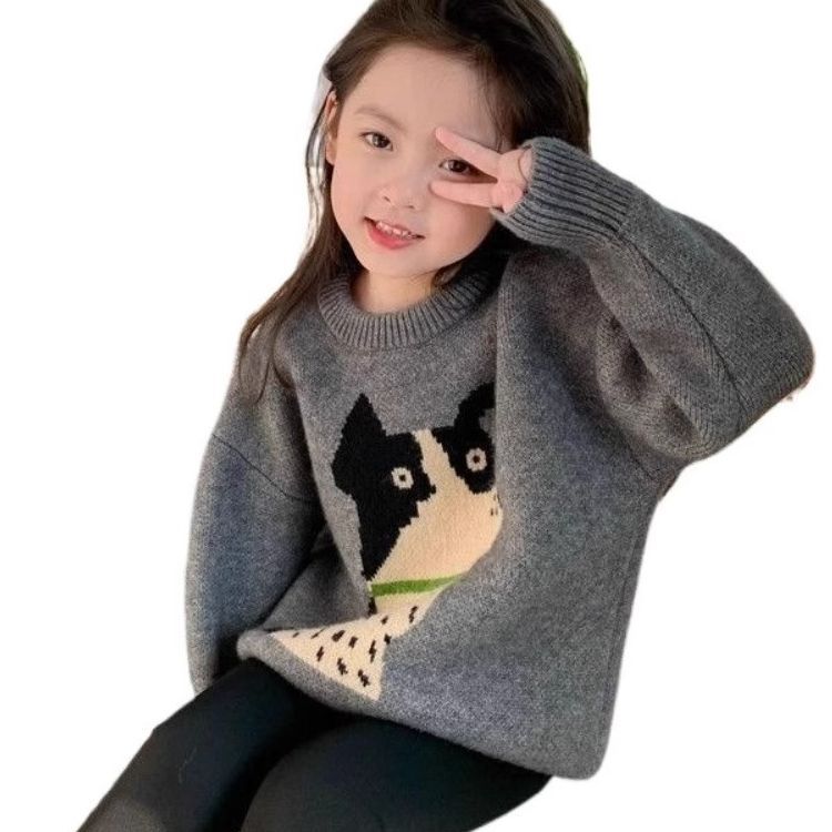 소년 스웨터 가을과 겨울 서양식 어린이 니트웨어 소녀 크루 넥 풀오버 스웨터 중소 및 대형 어린이를위한 트렌디 탑스토어 가기