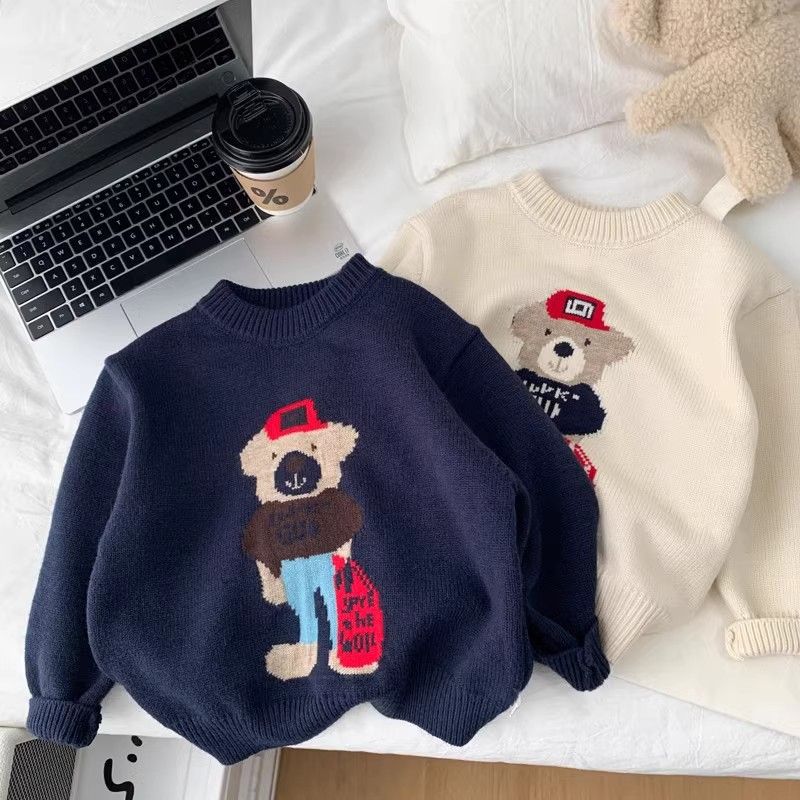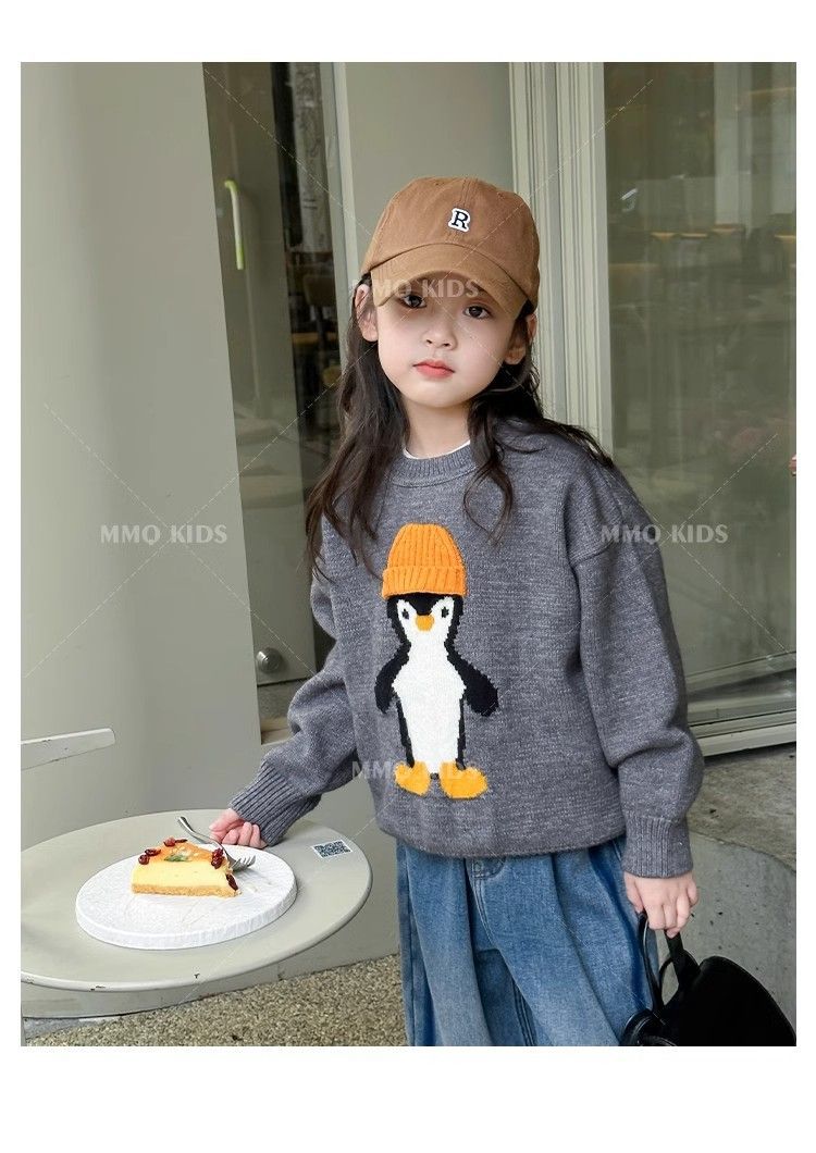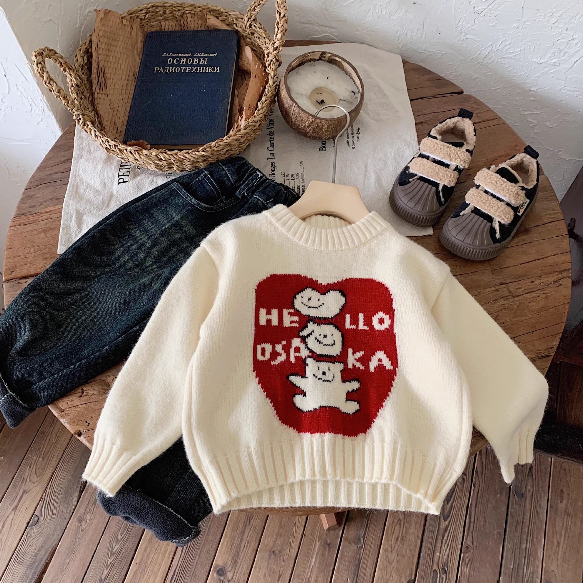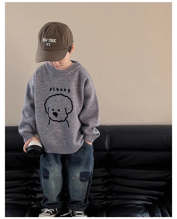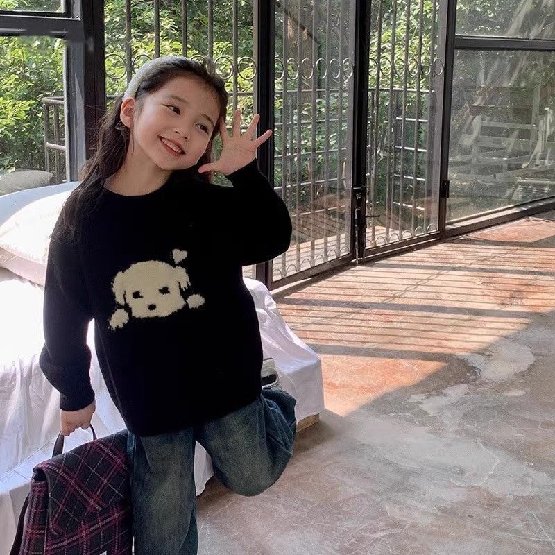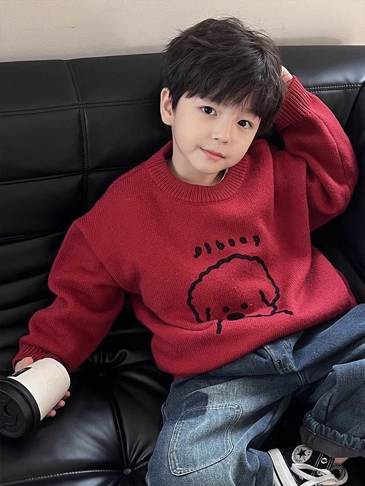 소년 스웨터 가을과 겨울 서양식 어린이 니트웨어 소녀 크루 넥 풀오버 스웨터 중소 및 대형 어린이를위한 트렌디 탑스토어 가기