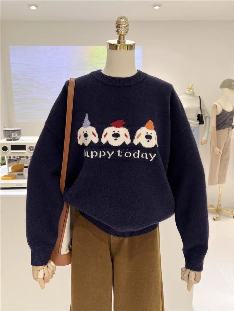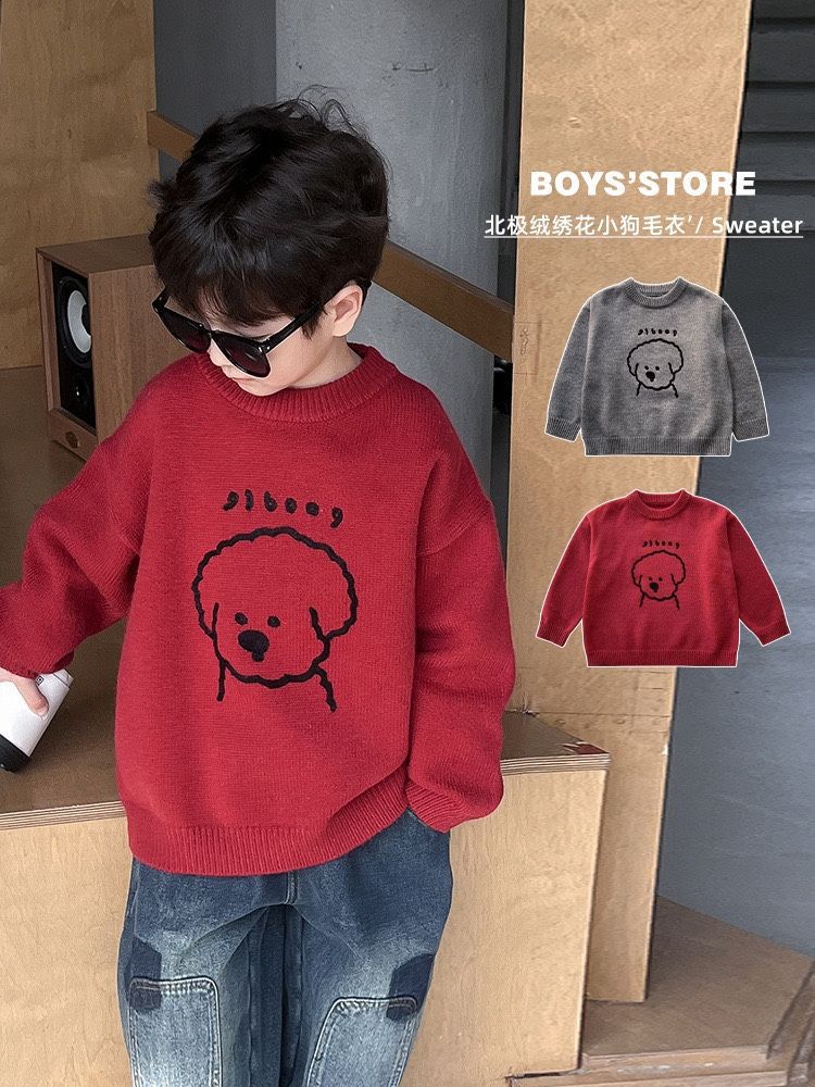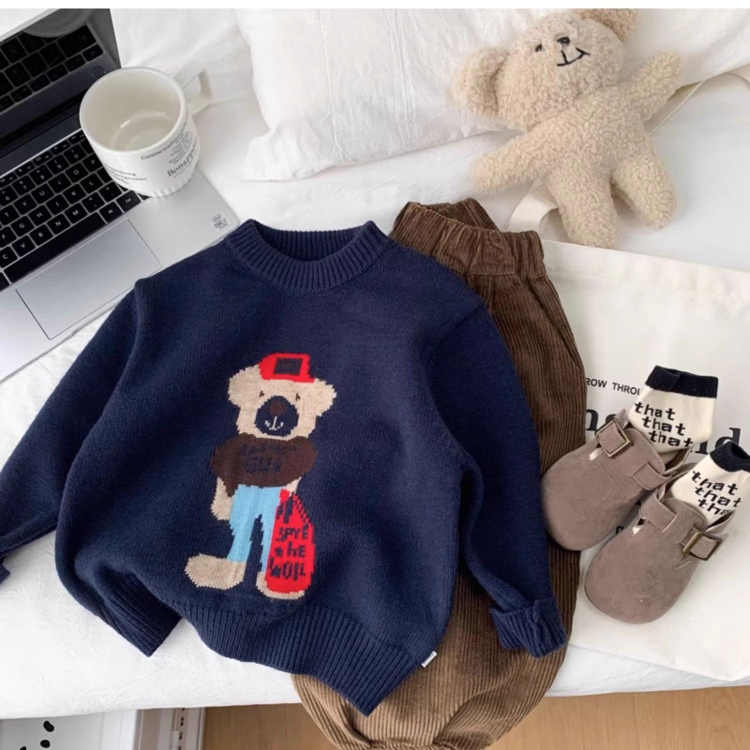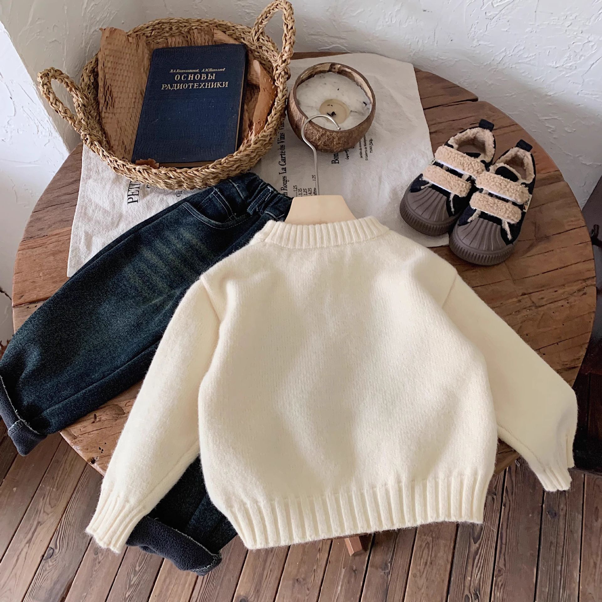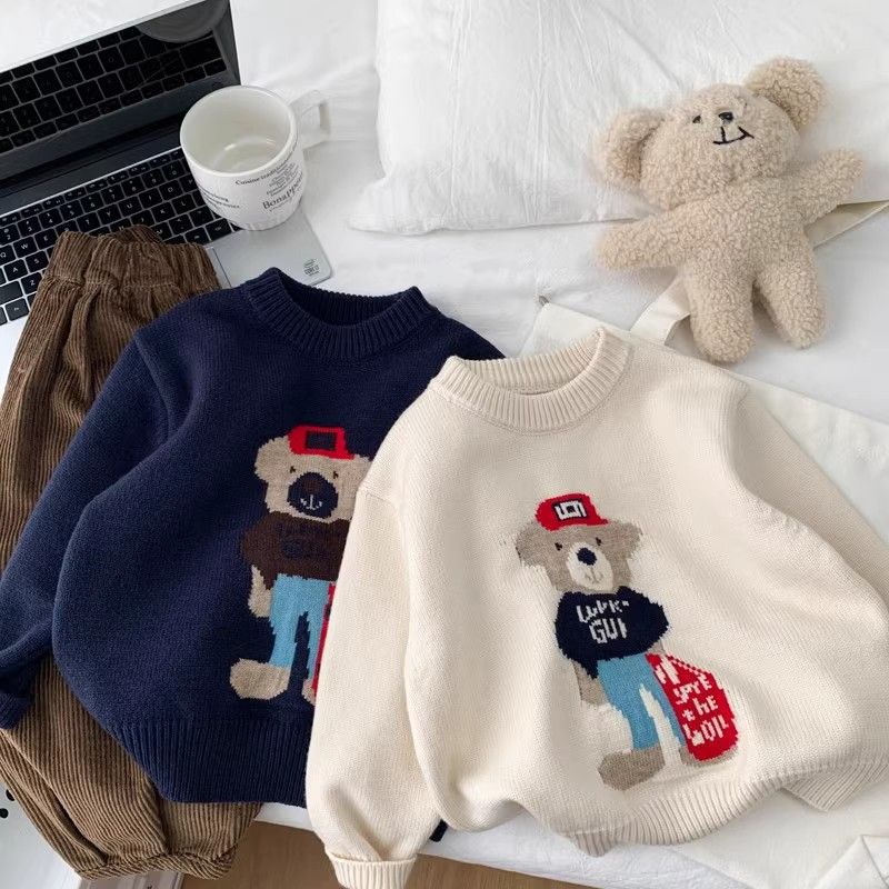 소년 스웨터 가을과 겨울 서양식 어린이 니트웨어 소녀 크루 넥 풀오버 스웨터 중소 및 대형 어린이를위한 트렌디 탑스토어 가기