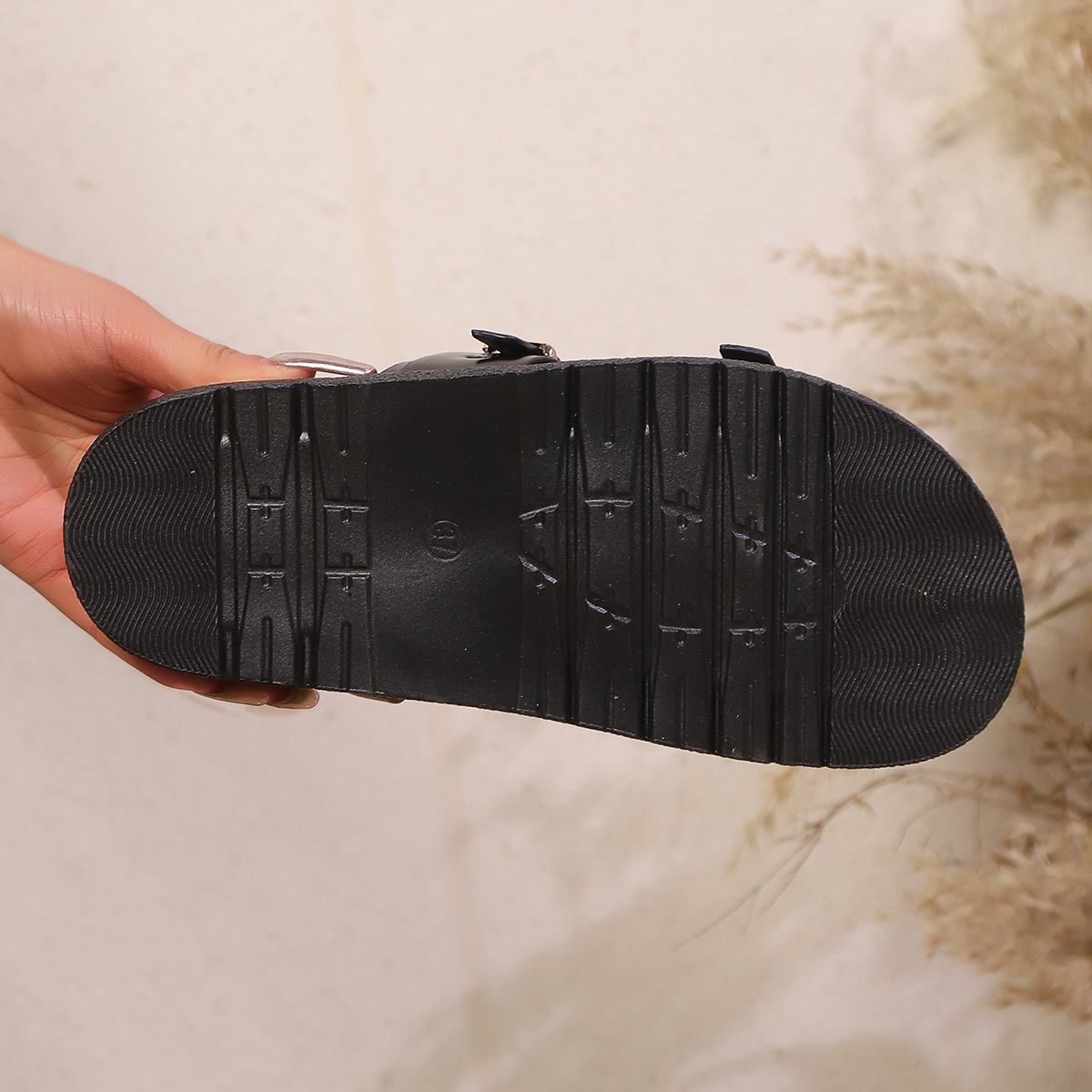 2024 여름 패션 다크 스타일 토가 메탈 슬리퍼 여성의 새로운 리벳 두꺼운 하단 캐주얼 샌들 슬리퍼 비치 슬리퍼스토어 가기