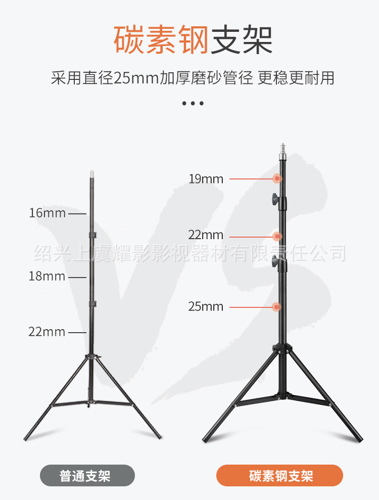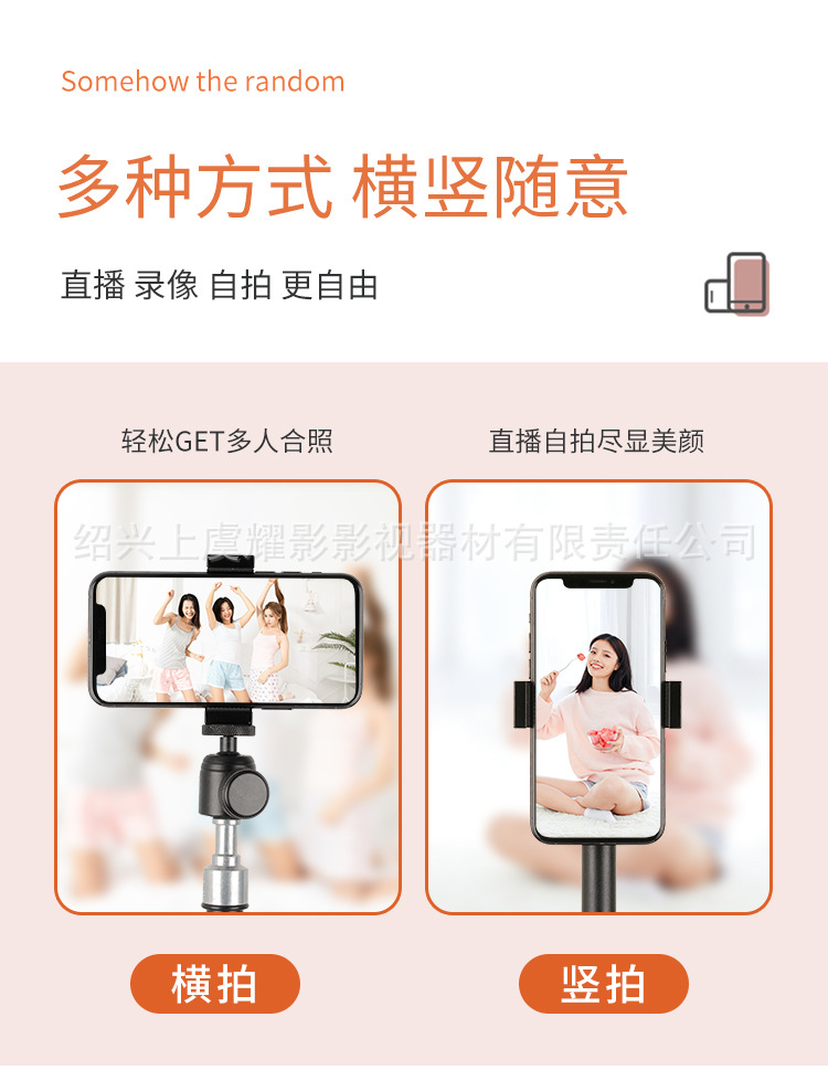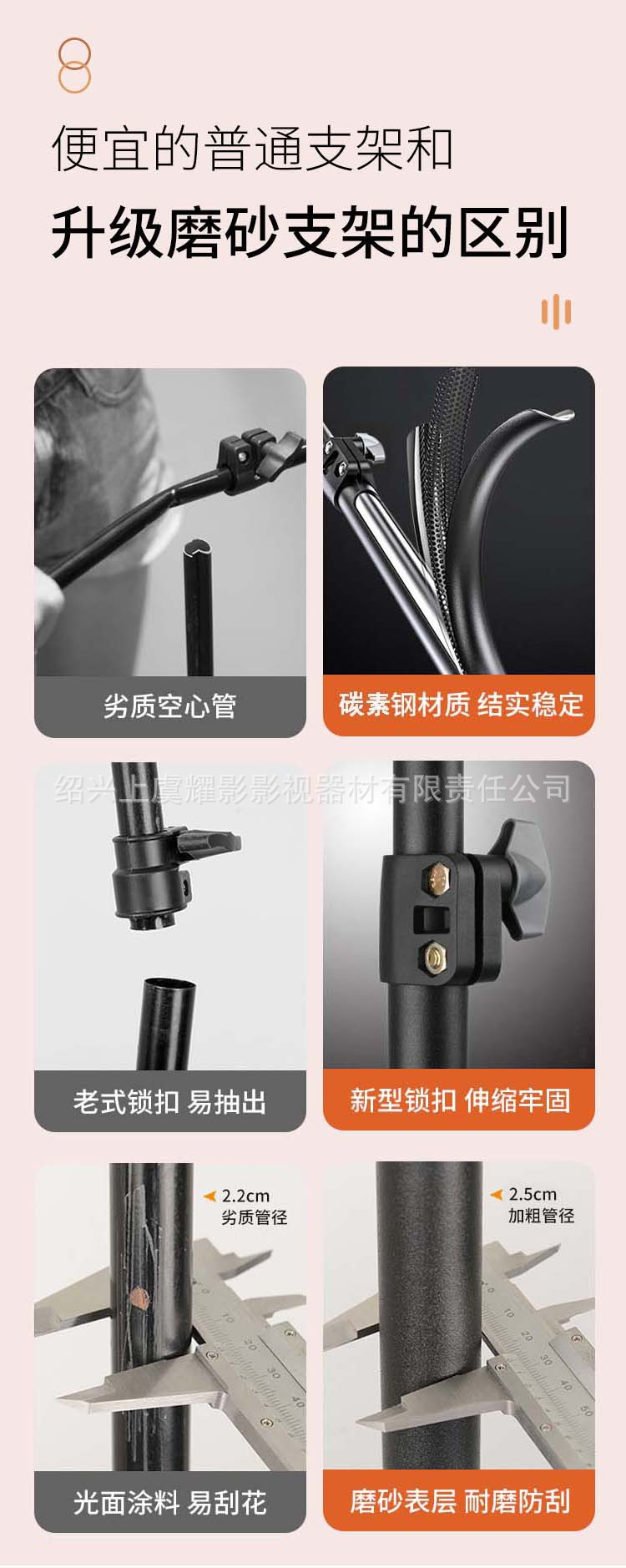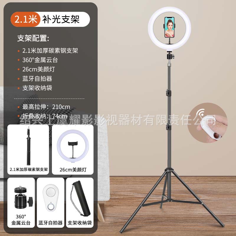 • 2.1m 탄소강 브래킷 + 금속 팬/틸트 + 휴대폰 클립 + 보관 가방 + 26cm 3색 뷰티 램프 + 블루투스