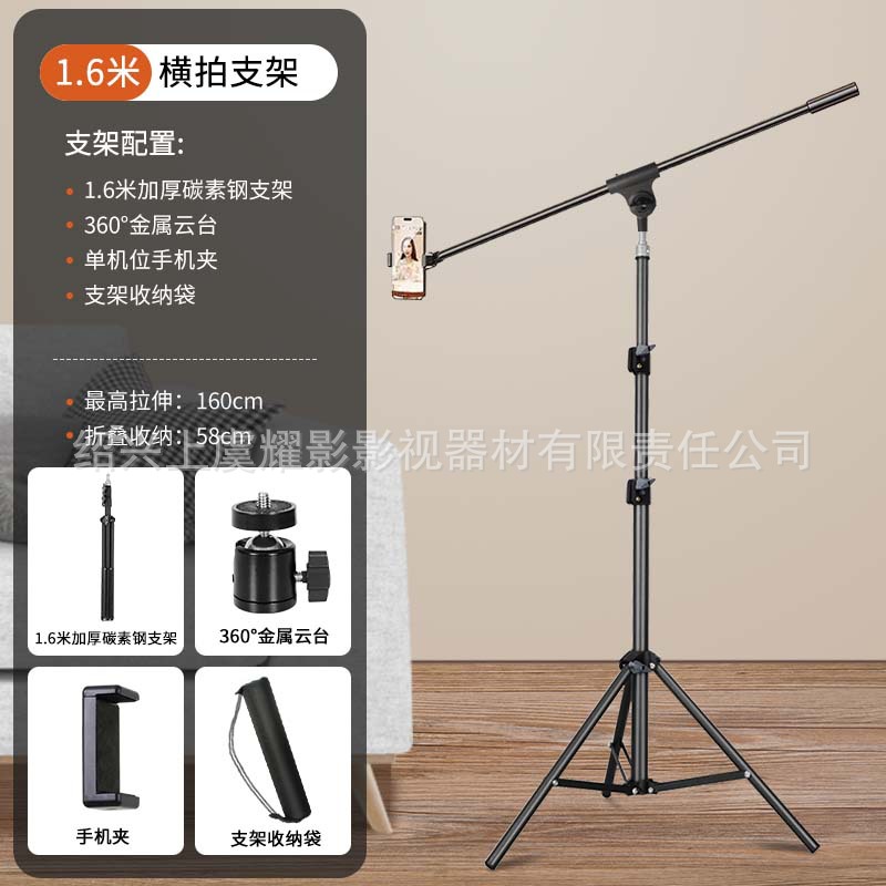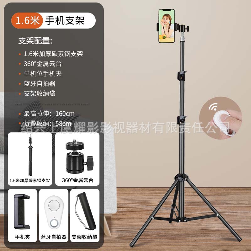 • 1.6m 탄소강 브래킷 + 금속 팬/틸트 + 휴대폰 클립 + 보관 가방 + 오버헤드 슈팅 스틱
