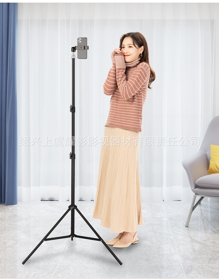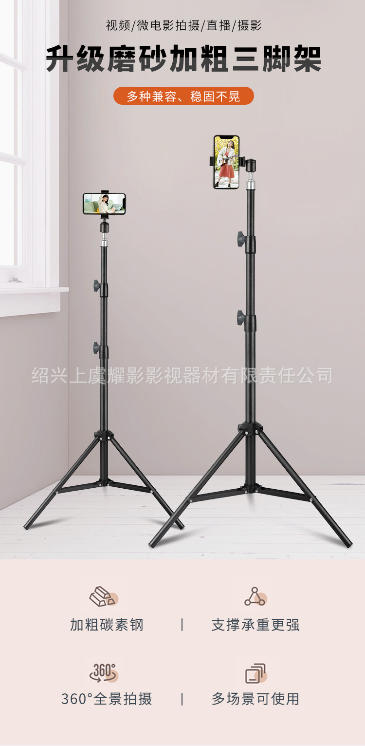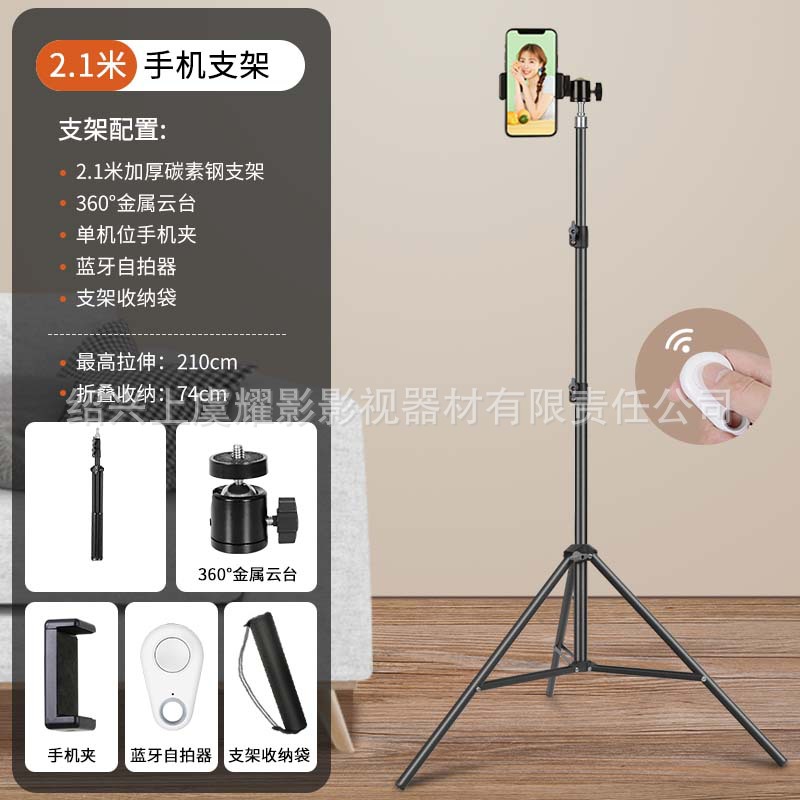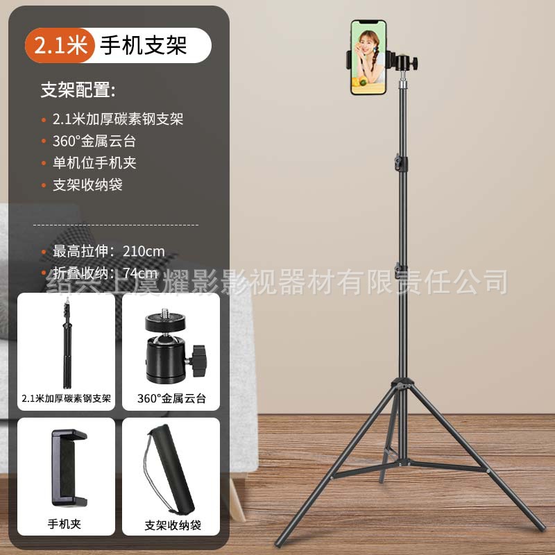 2.1 m 탄소 강철 휴대 전화 브래킷 라이브 대담한 삼각대 바닥 스탠드 짧은 비디오 야외 사진