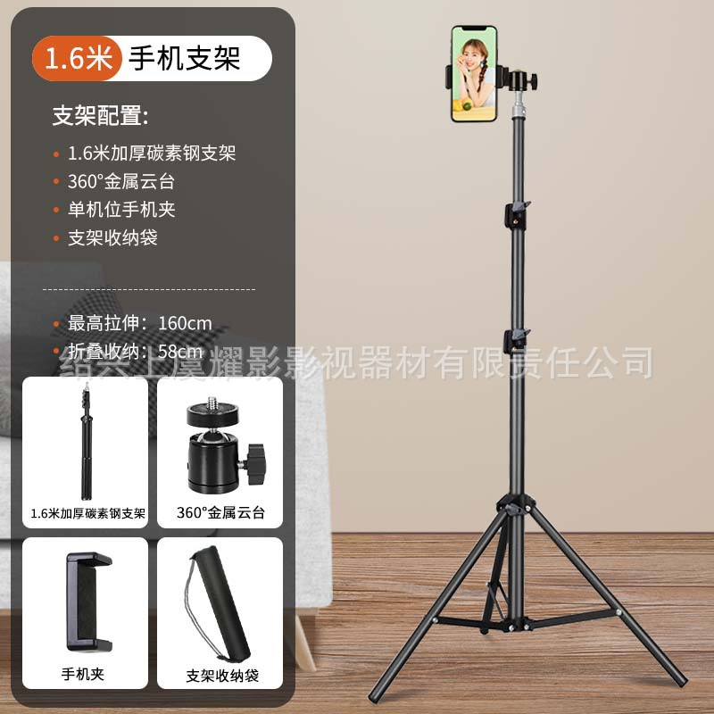 • 1.6m 탄소강 브래킷 + 금속 팬/틸트 + 휴대폰 클립 + 보관 가방