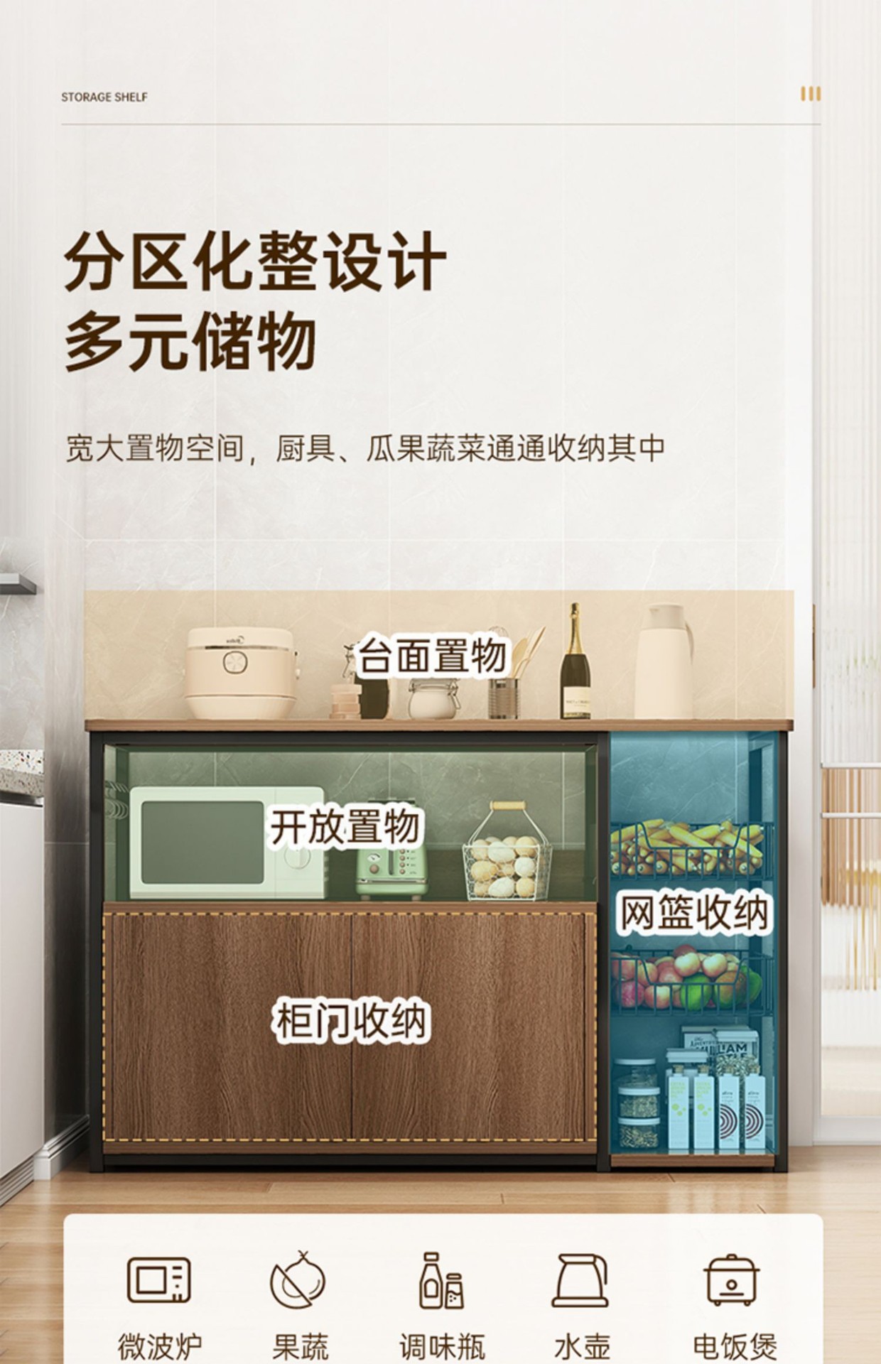 가정용 다이닝사이드 캐비닛, 주방 일체형 벽걸이형 수납장, 바닥형 다층 도어형 수납장, 찬장, 식기장, 보관장스토어 가기