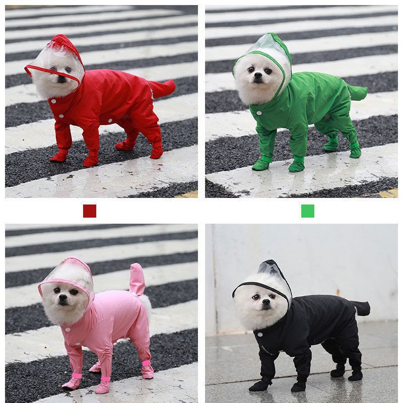 환영 애완 동물 고양이 개 4 다리가있는 올-클루 인 결합 된 방수 비옷 봄, 여름, 가을, 겨울 테디보다 환영스토어 가기