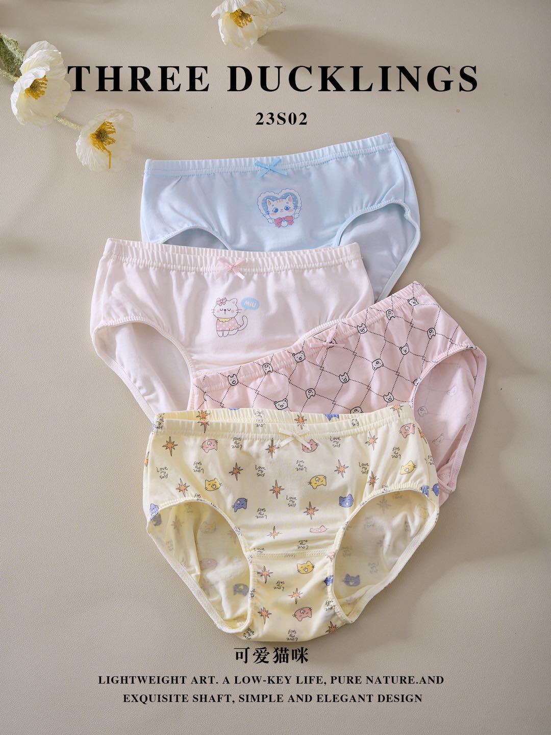 세 오리 새끼 소녀 브리프 면화 학생 소녀 브리프 반바지 아기 빵 바지 4 팩