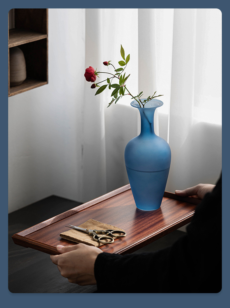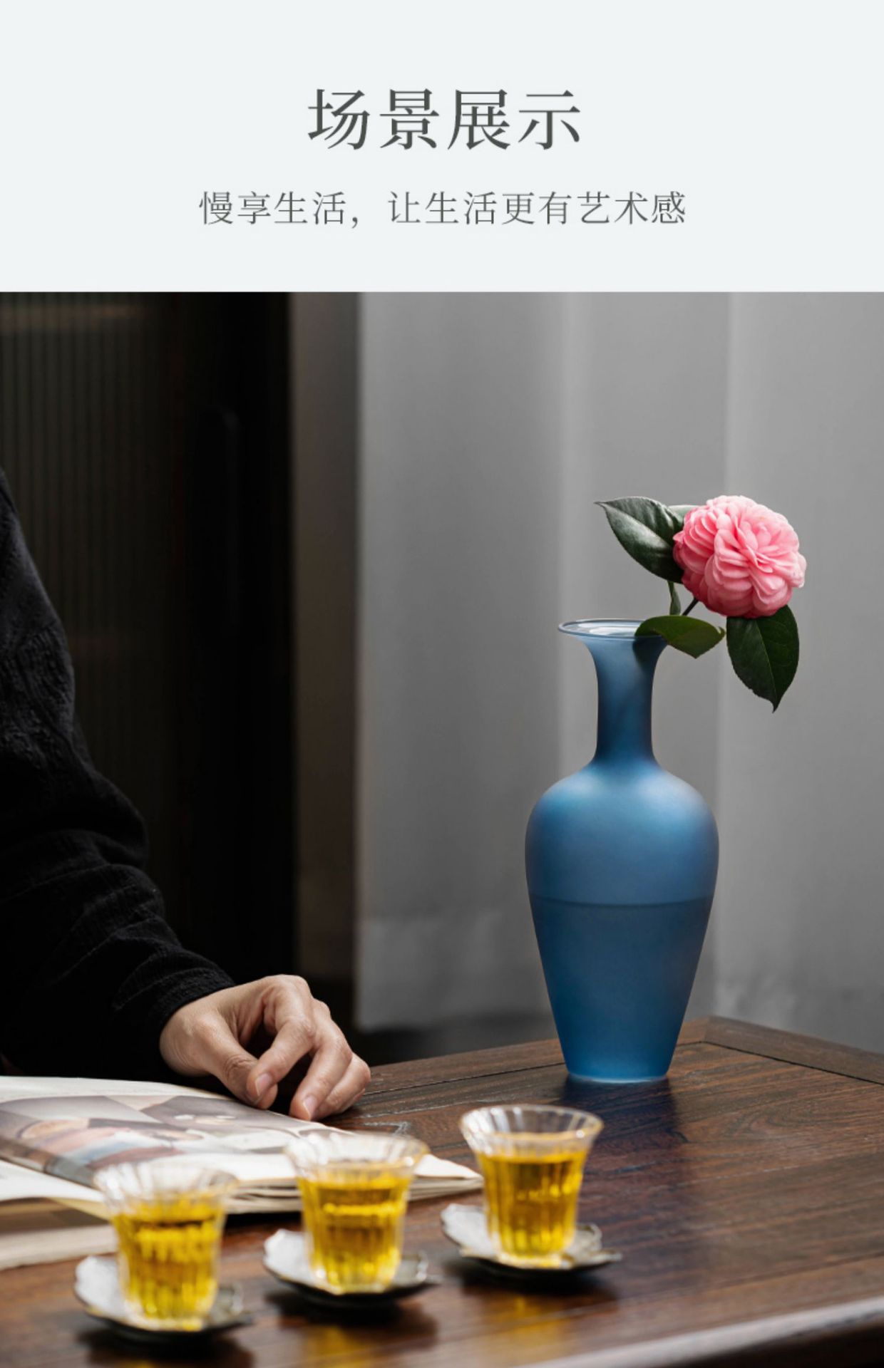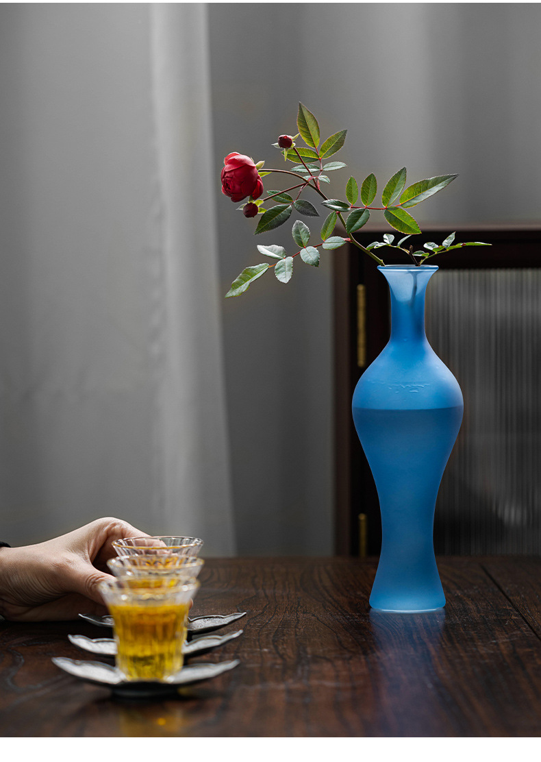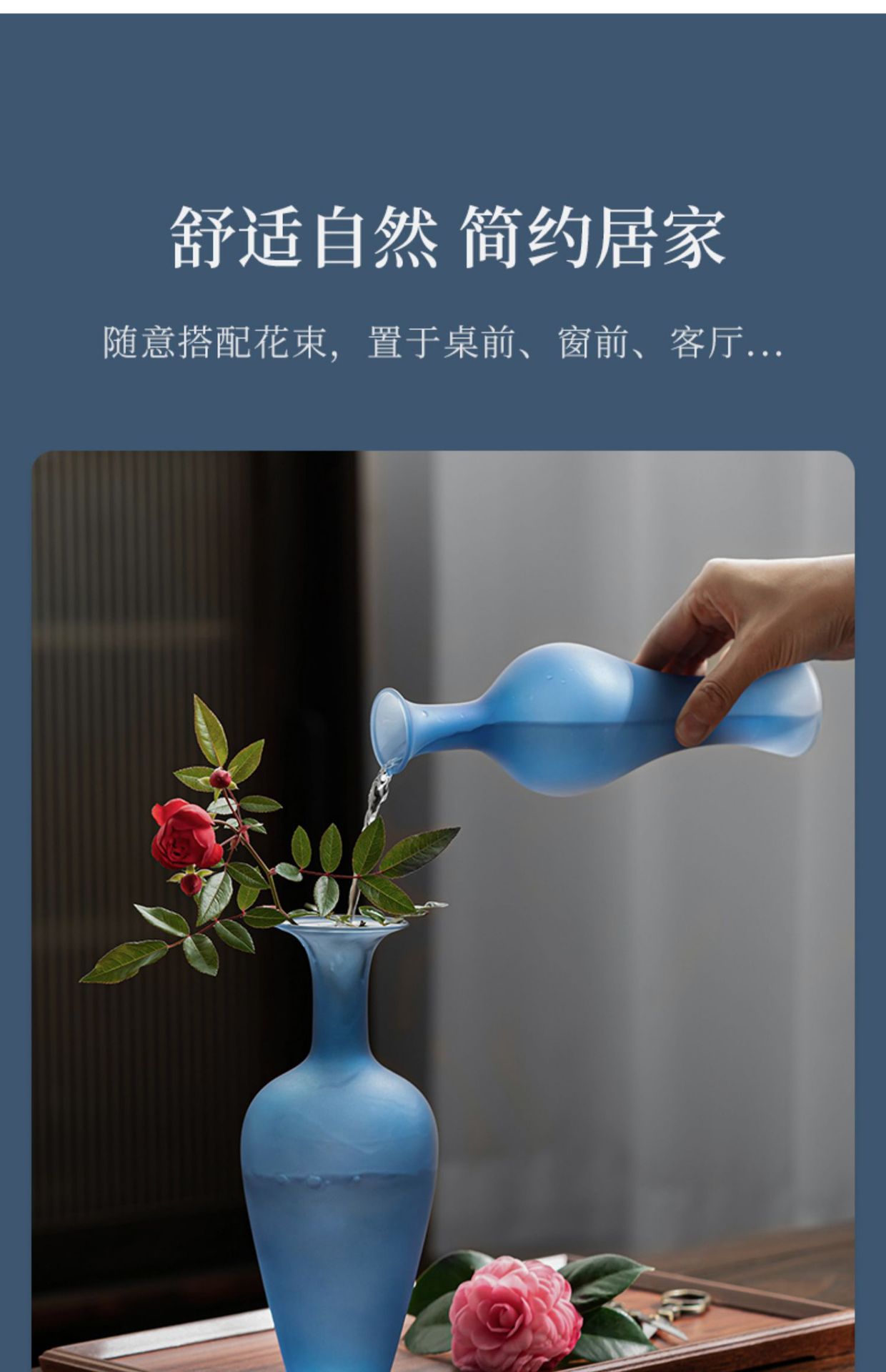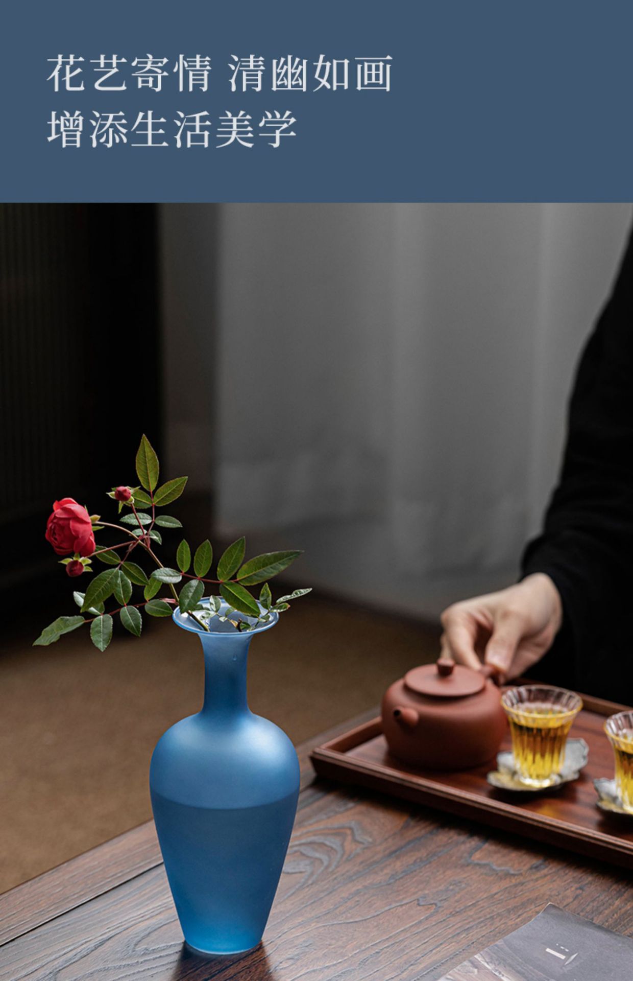 일본식 푸른 꽃병 장식품 거실 꽃꽂이 꽃 유리 꽃병 투명 꽃꽂이 물 관리 높은 수준의 느낌스토어 가기