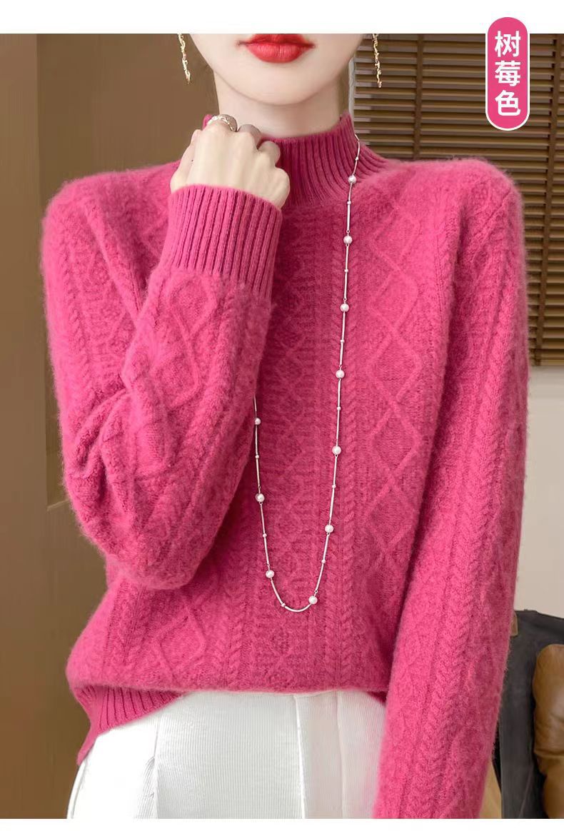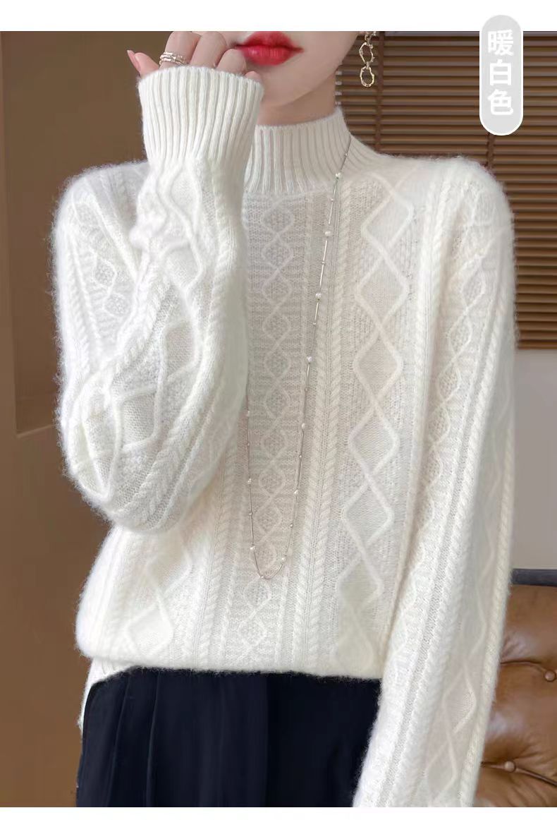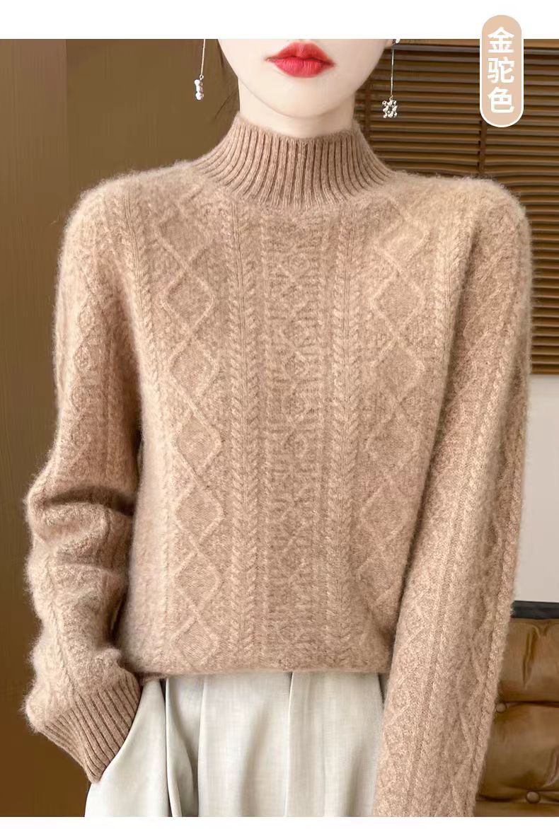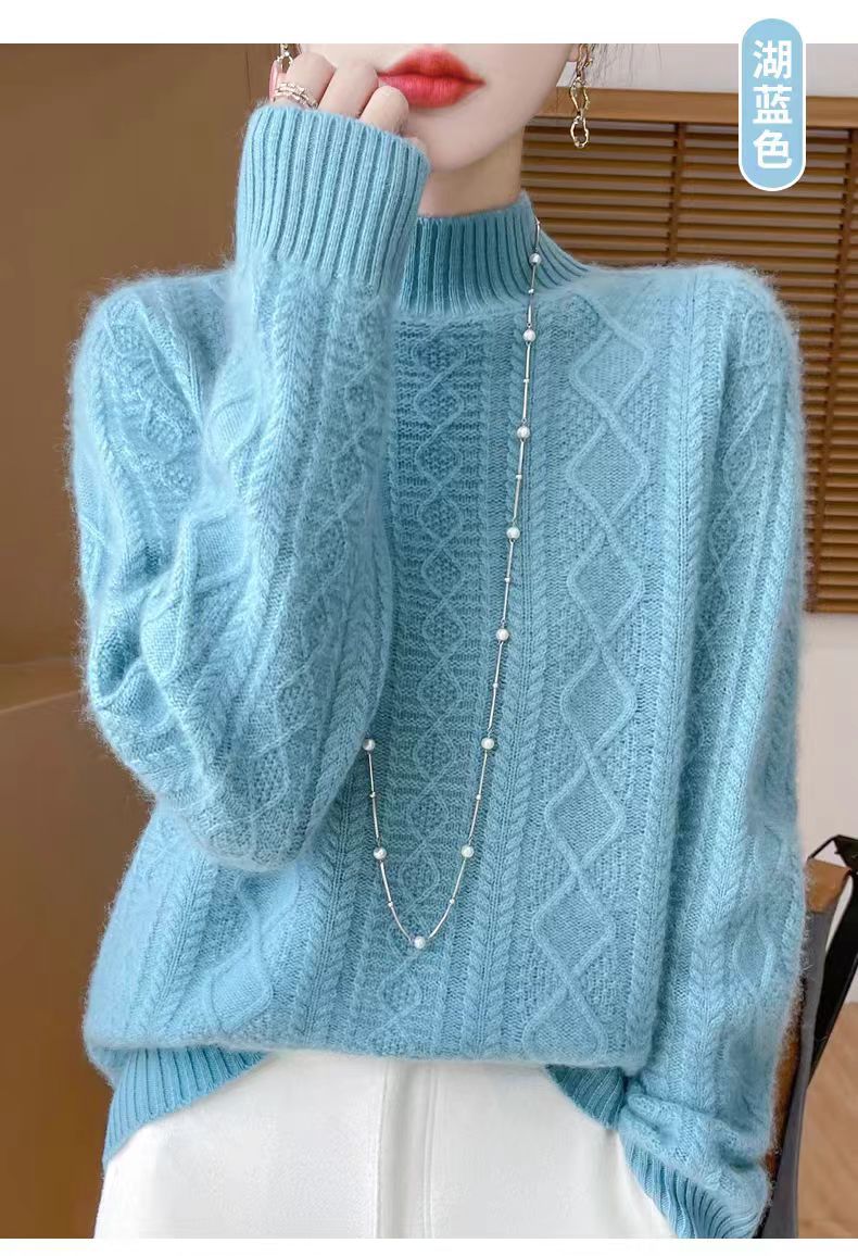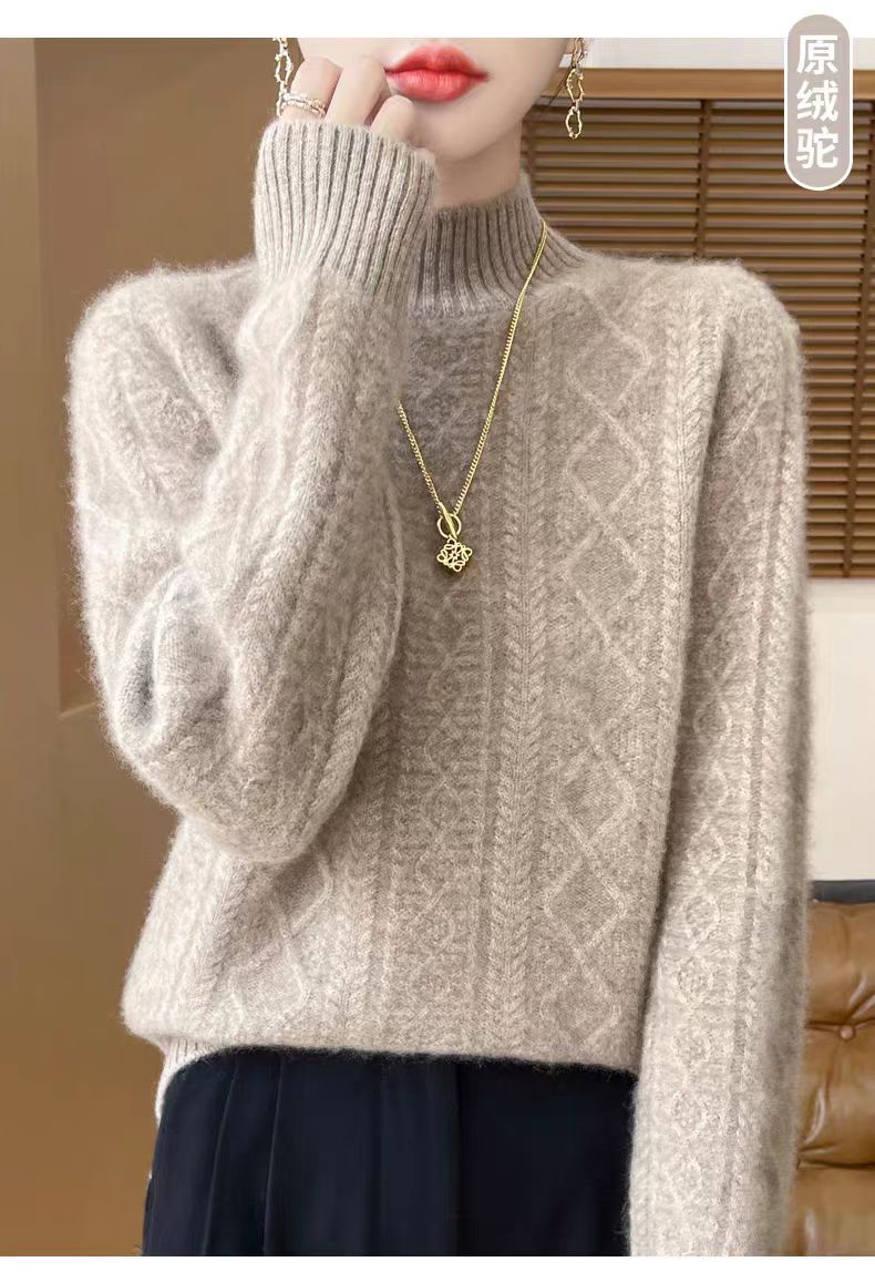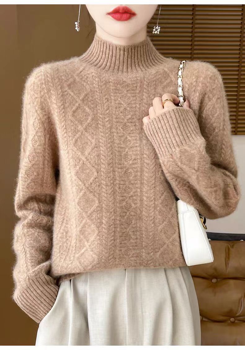 캐시미어 스웨터 여성 24 가을 및 겨울 새 하프 하이 칼라 베이스 셔츠 두꺼운 니트 스웨터 내부 재킷 느슨한 솔리드 컬러 리넨