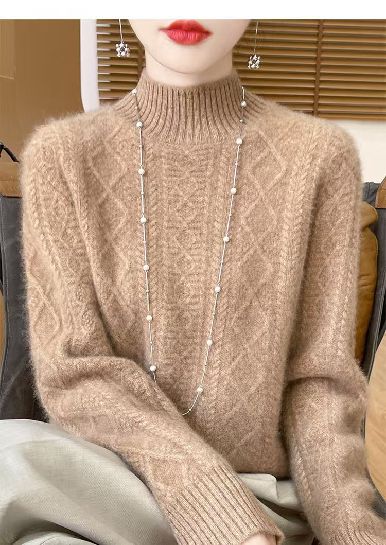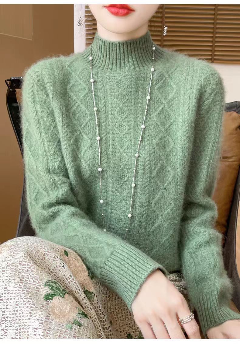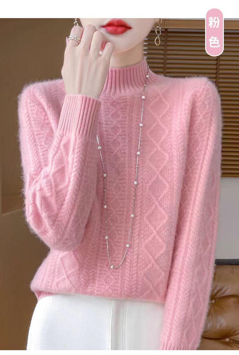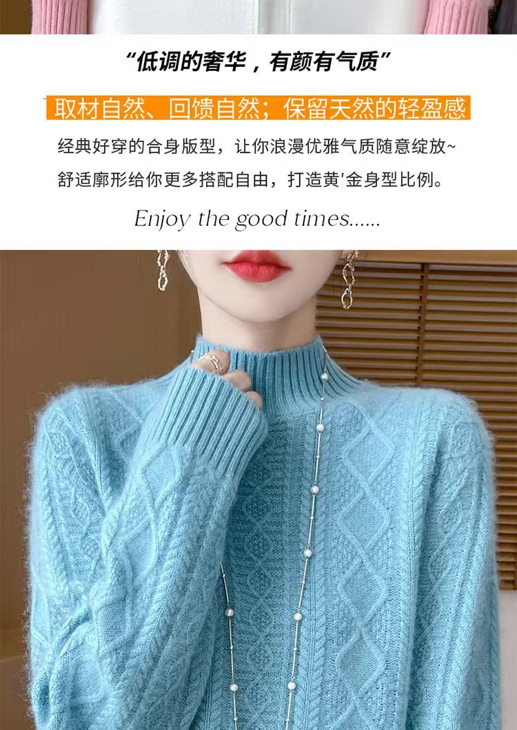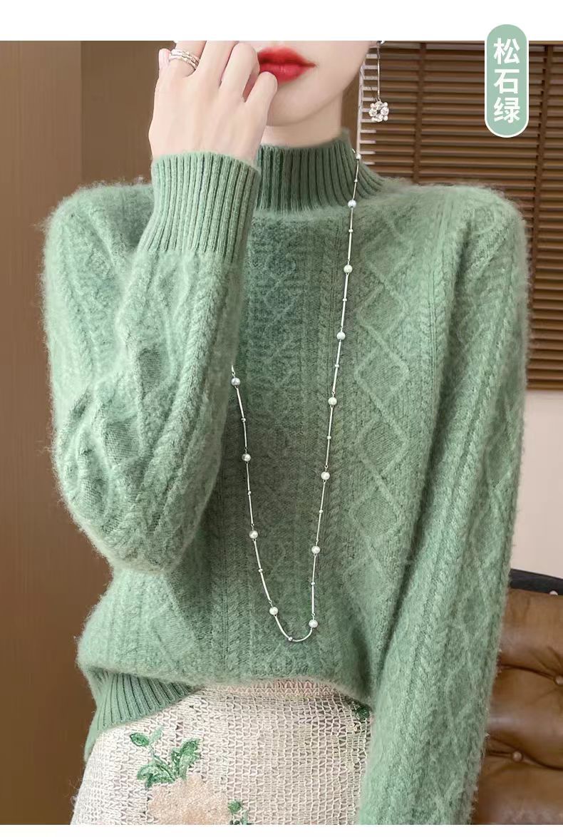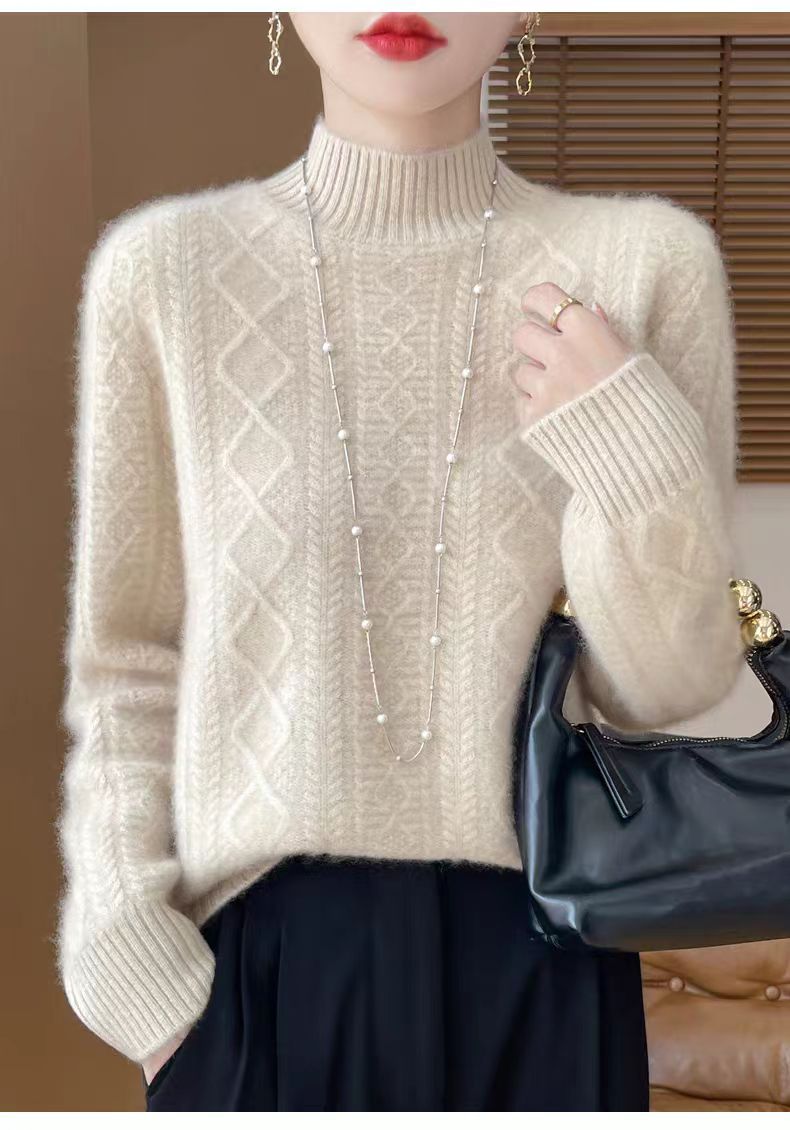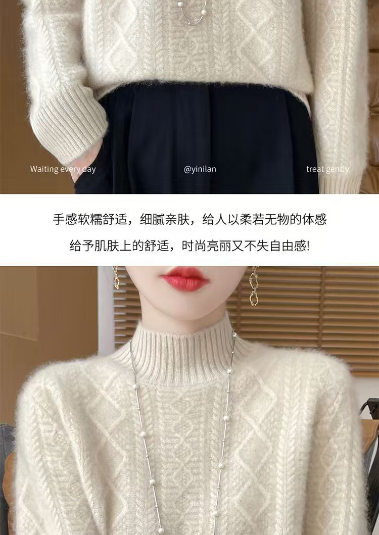 캐시미어 스웨터 여성 24 가을 및 겨울 새 하프 하이 칼라 베이스 셔츠 두꺼운 니트 스웨터 내부 재킷 느슨한 솔리드 컬러 리넨