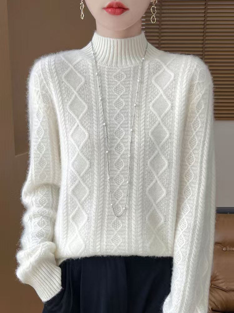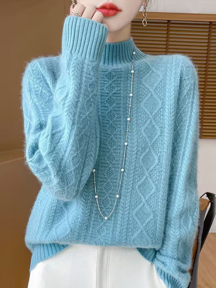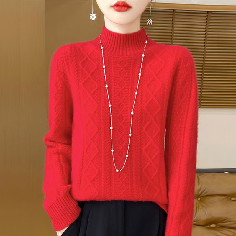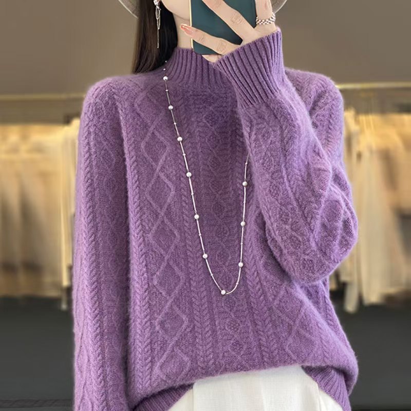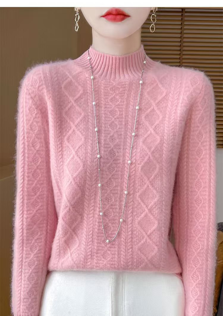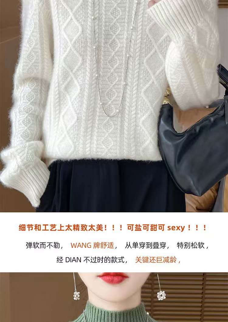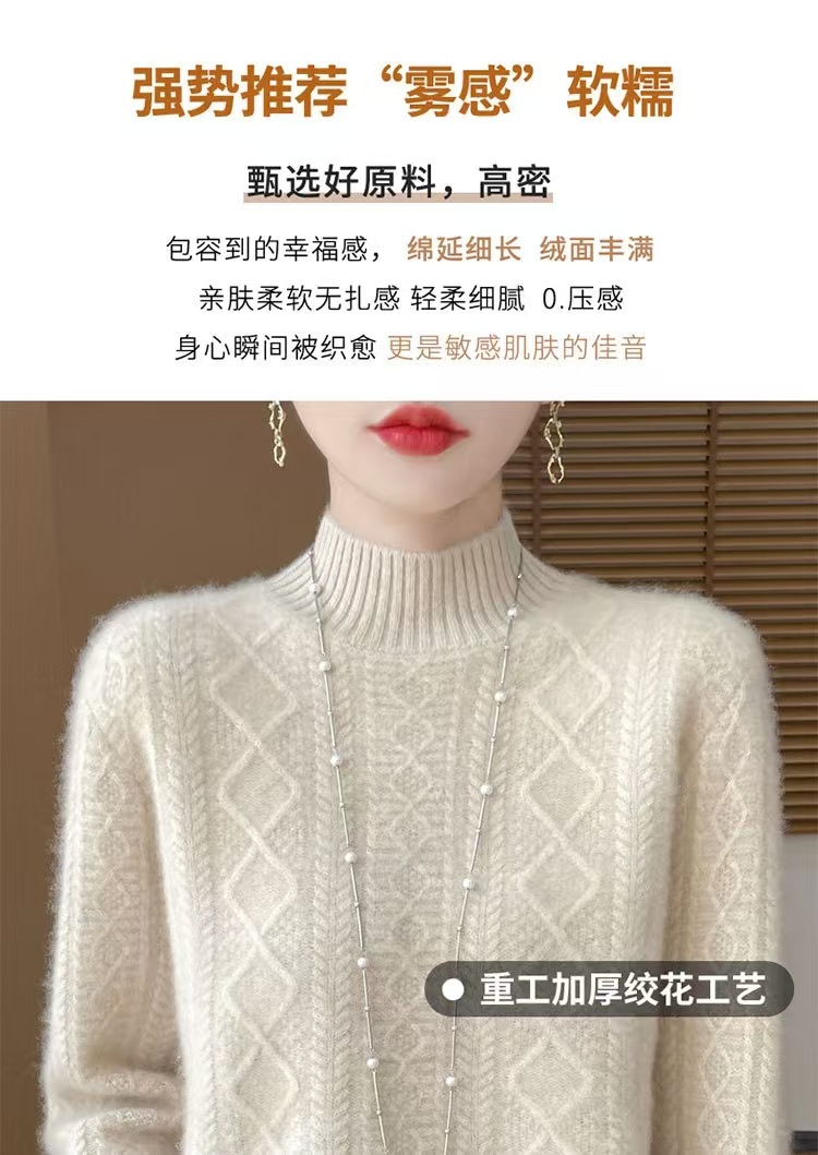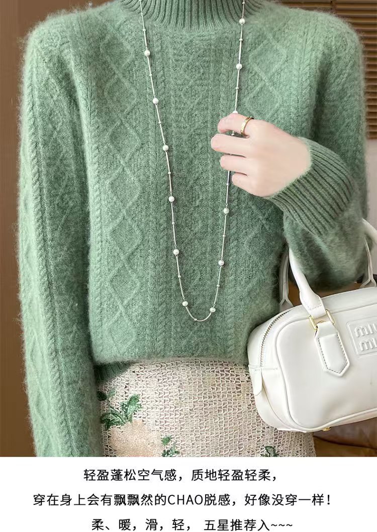 캐시미어 스웨터 여성 24 가을 및 겨울 새 하프 하이 칼라 베이스 셔츠 두꺼운 니트 스웨터 내부 재킷 느슨한 솔리드 컬러 리넨