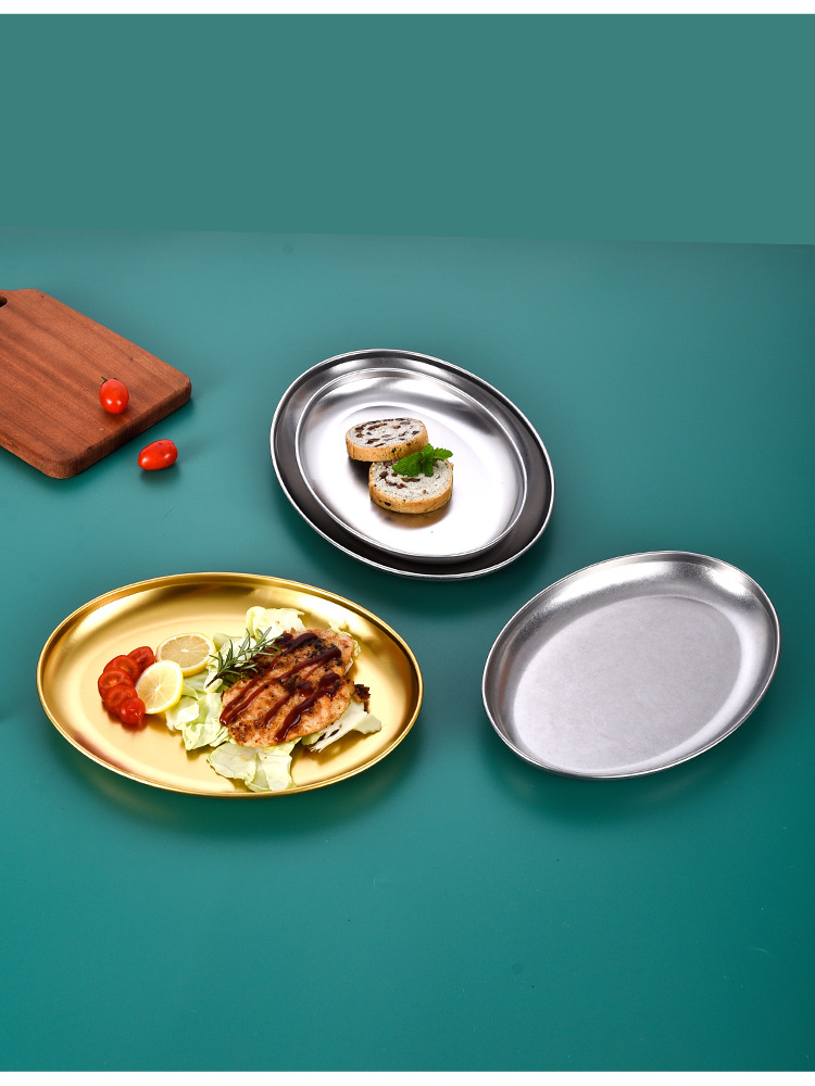 한국식 간단한 두꺼운 스테인레스 스틸 디스크 황금 바베큐 스테이크 바베큐 플레이트 상업용 레스토랑 디저트 얕은 트레이