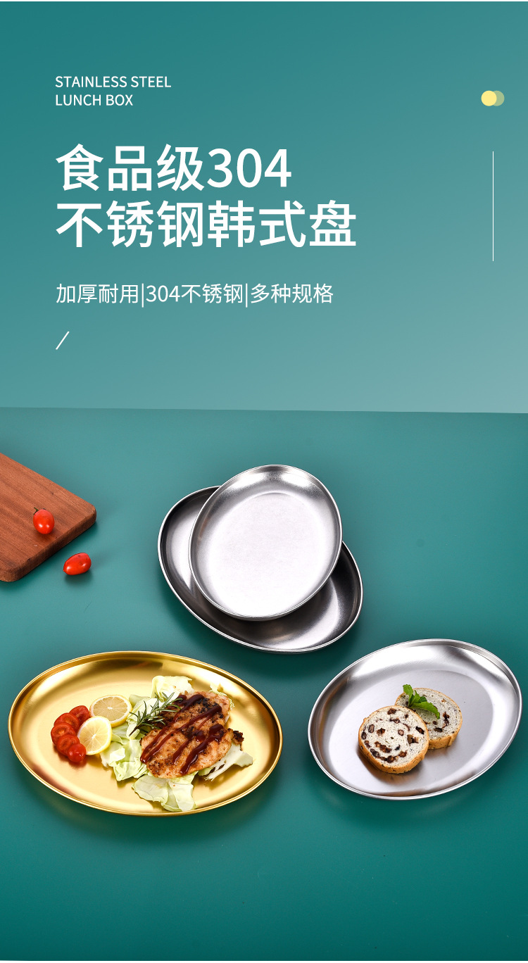 한국식 간단한 두꺼운 스테인레스 스틸 디스크 황금 바베큐 스테이크 바베큐 플레이트 상업용 레스토랑 디저트 얕은 트레이스토어 가기