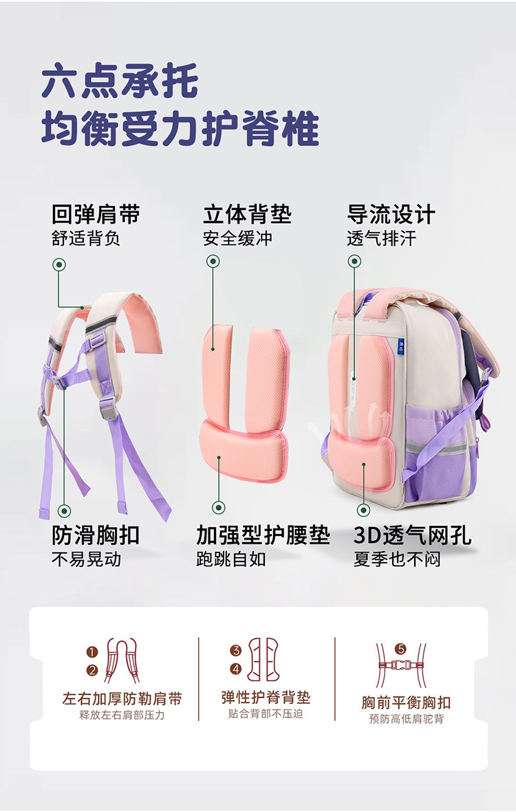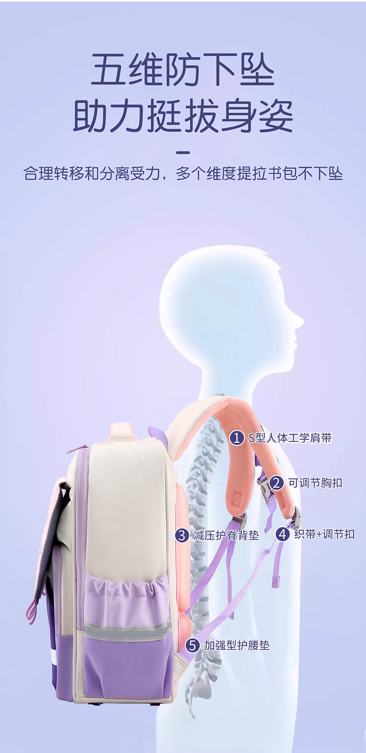 3 ~ 6 학년 초등학교 학생 학교 가방 경량 하중 감소 대용량 학생 가방 방수 반사 어린이 배낭
