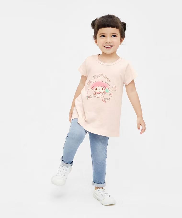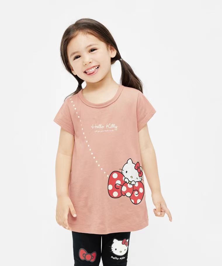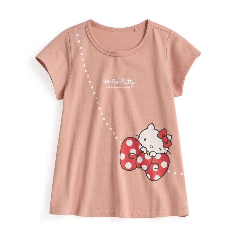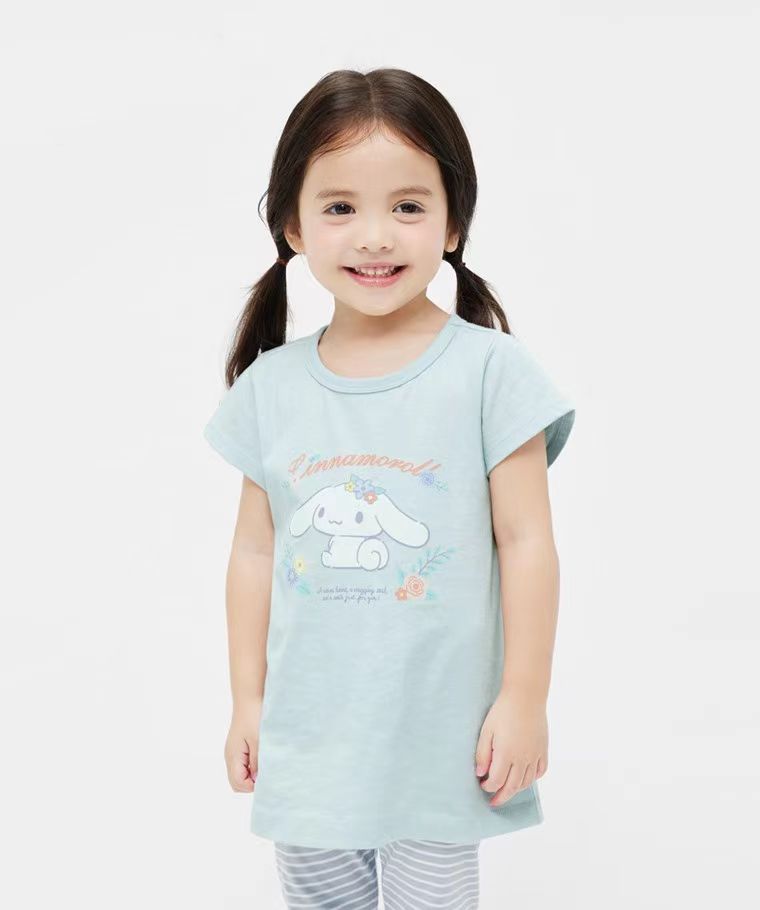 봄과 여름 소녀 귀여운 유구이 개 반팔 티셔츠 얇은 면 만화 큰 어린이 A 라인 스커트 T 일본 소녀 탑스토어 가기