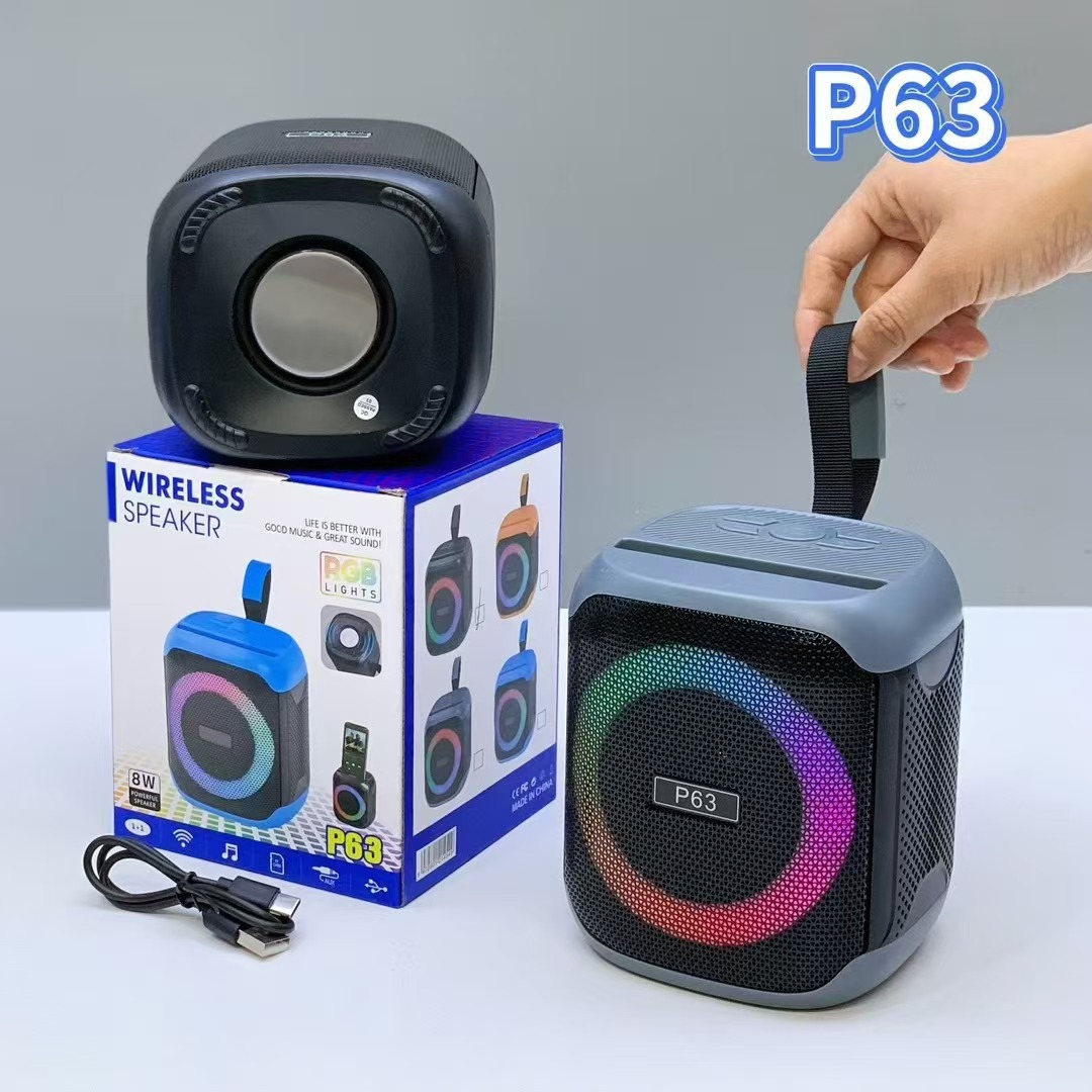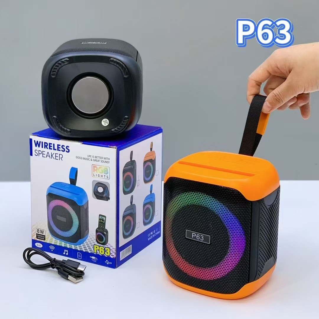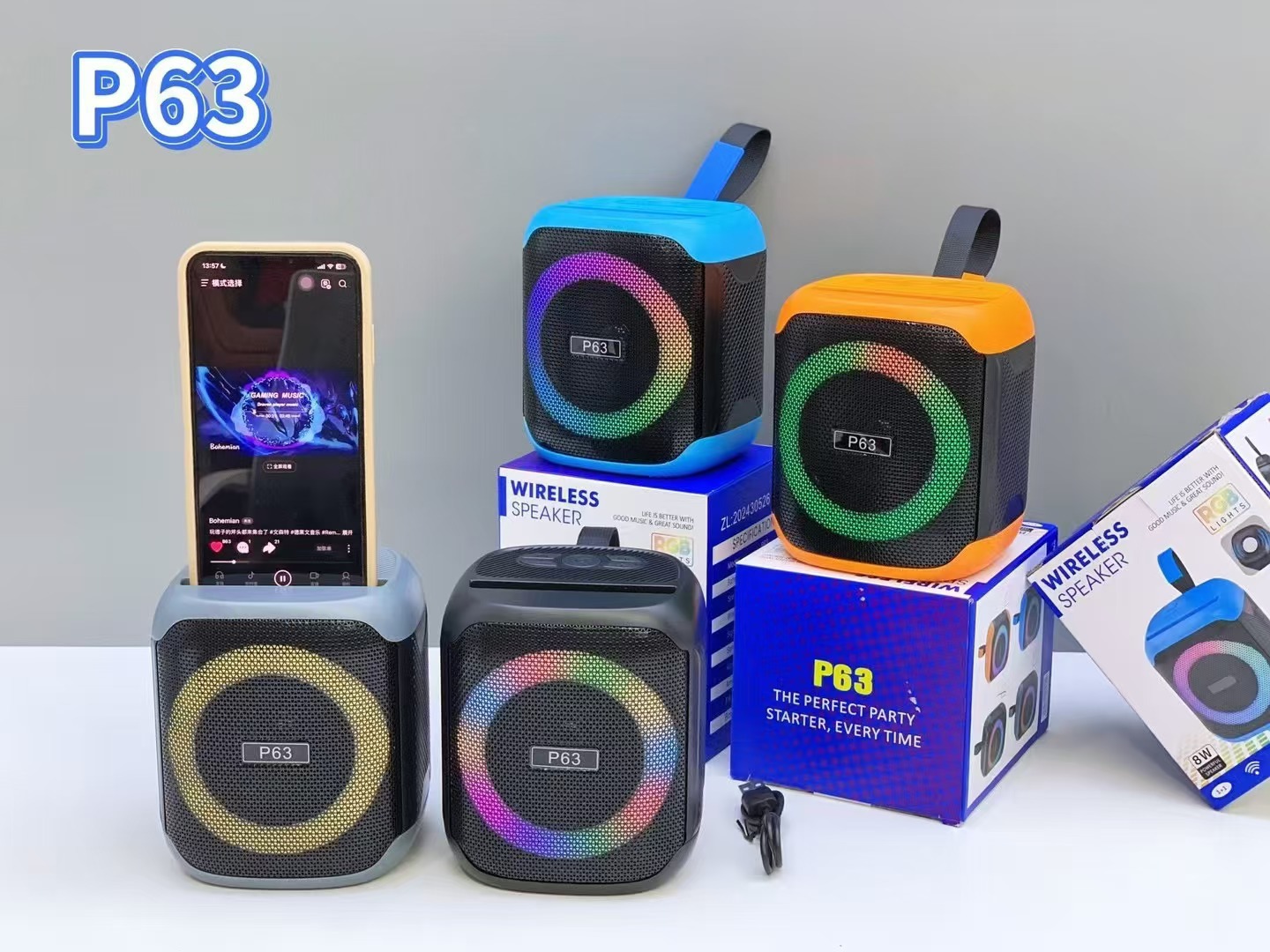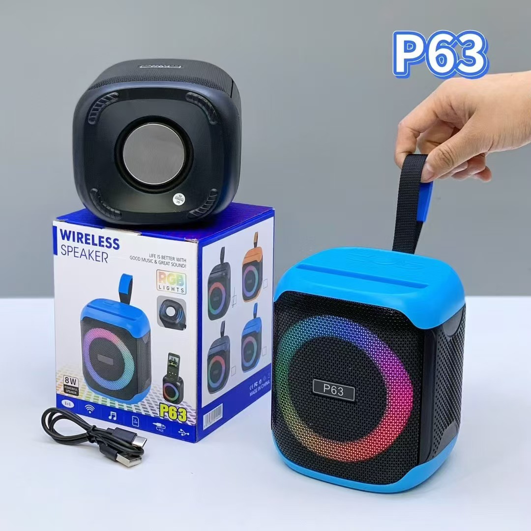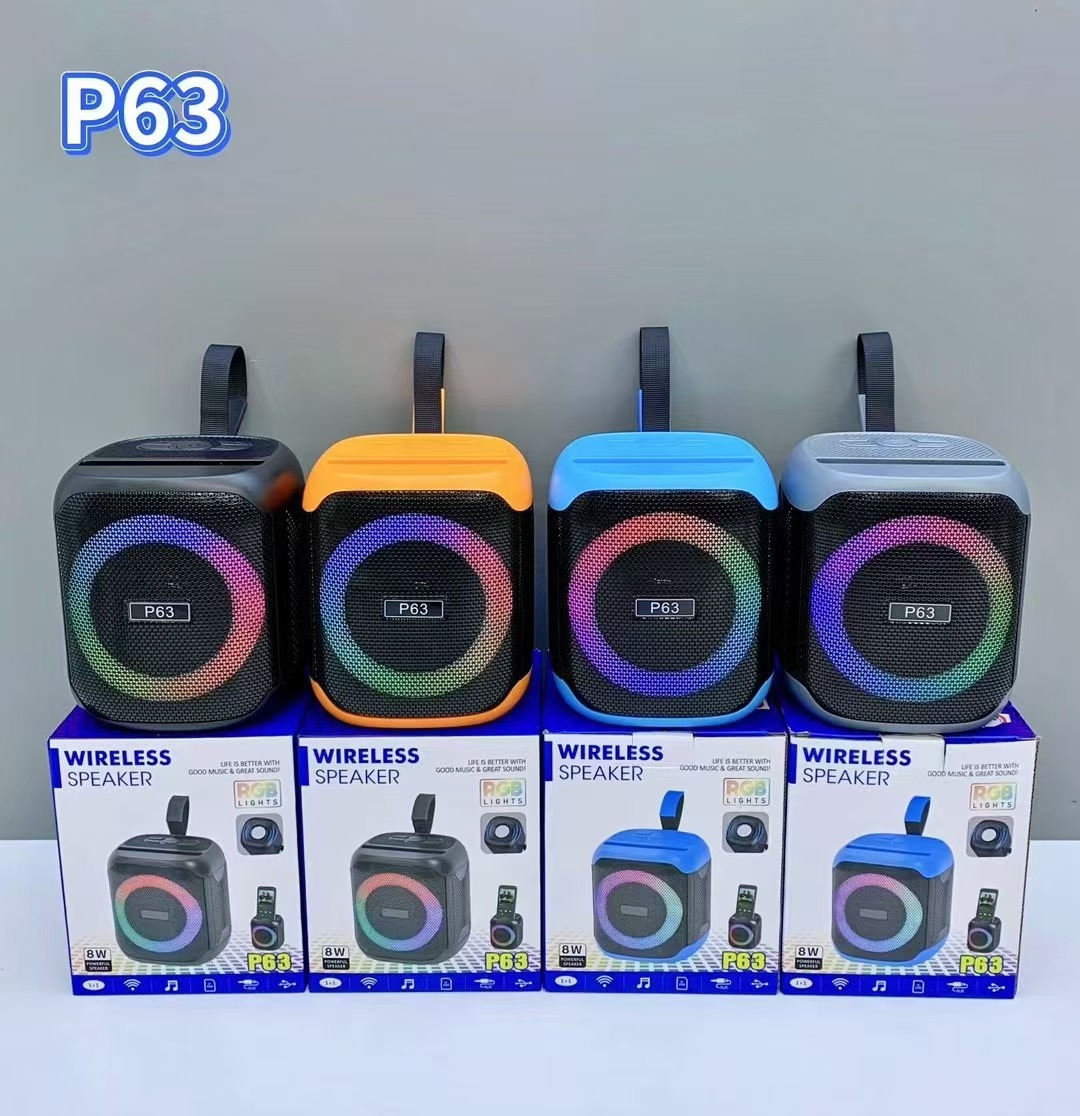 국경 새로운 P63 다채로운 RGB 블루투스 스피커 무선 미니 야외 휴대용 휴대용 서브 우퍼 카드 스테레오스토어 가기