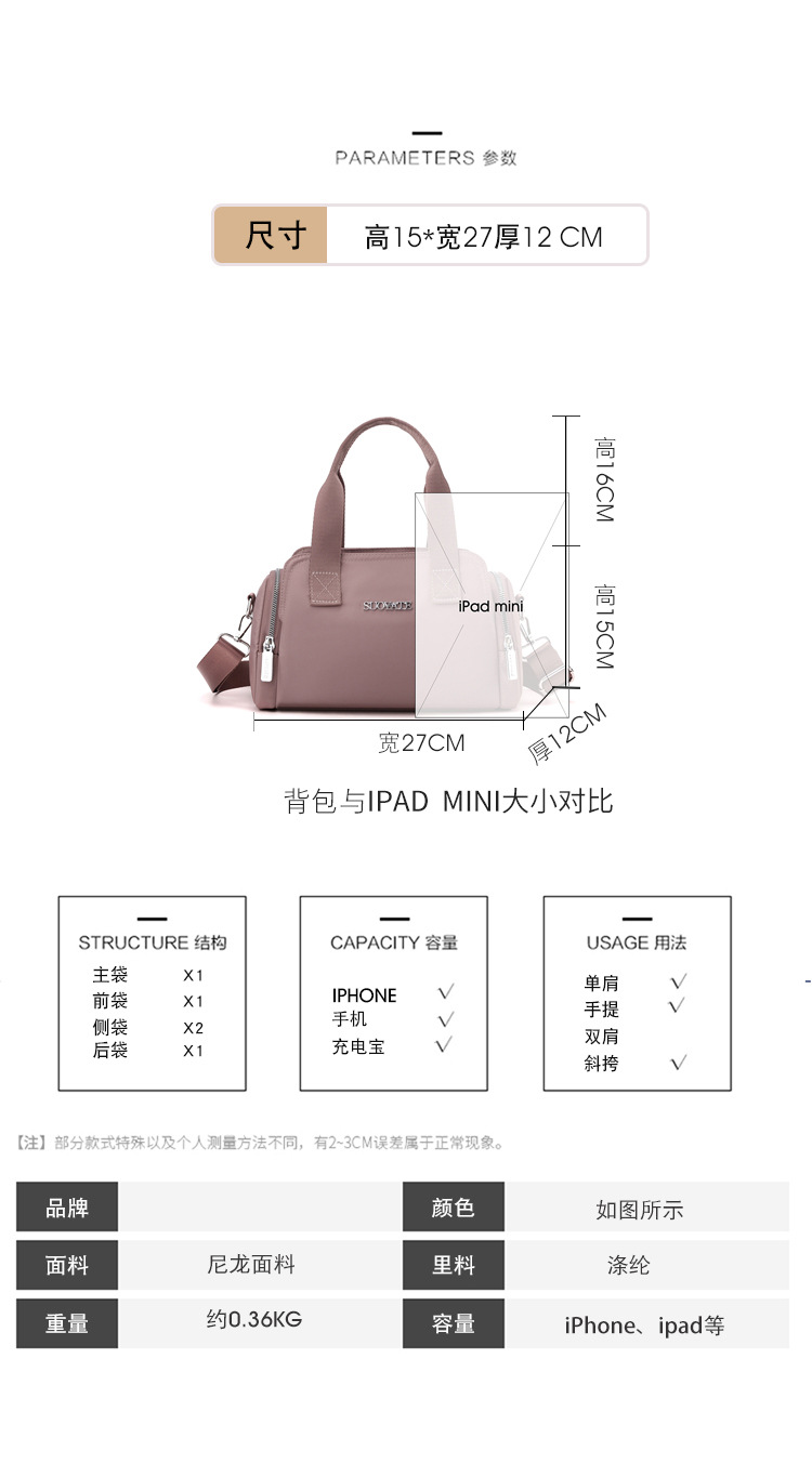 나일론 옥스포드 천 여성 가방 2025 여행 경량 올매치 대용량 휴대용 단일 크로스 바디 가방 캔버스 가방 마더 백스토어 가기