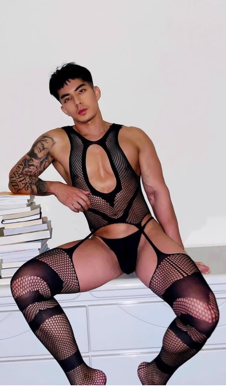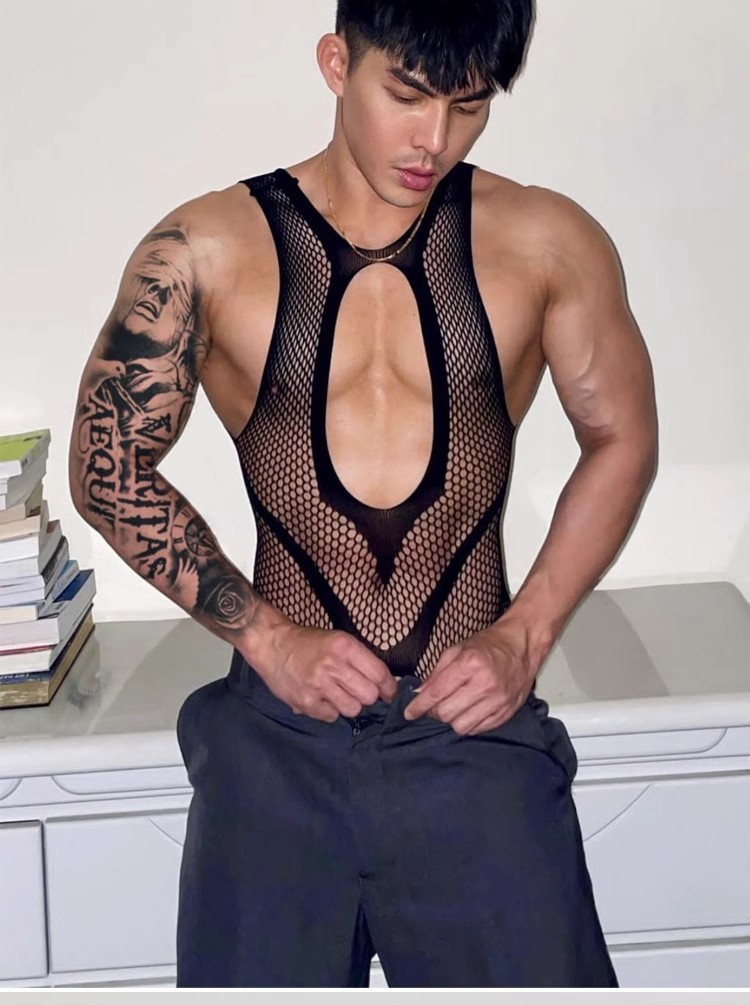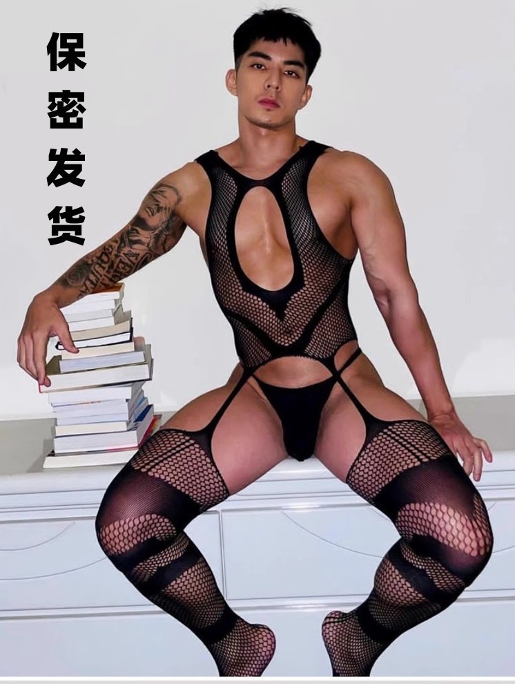 Liao Han 남성용 섹시한 원피스 스타킹 중공 섹시한 망사 스타킹 오픈 파일 핫 원피스 속옷 망사 스타킹