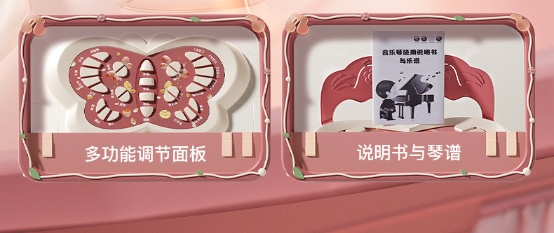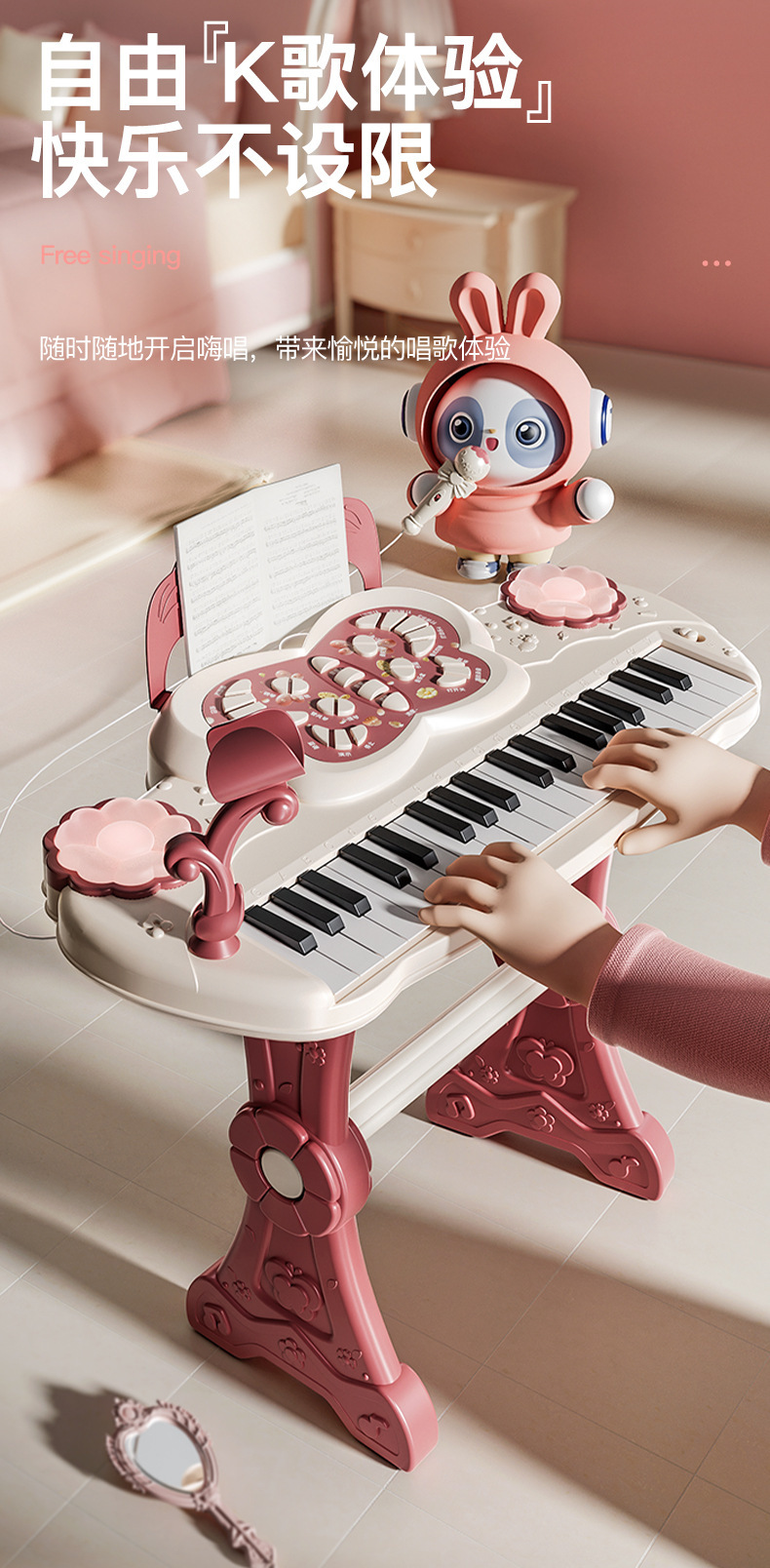 • 6001-1 다기능 퍼즐 전자 키보드 [핑크] 마이크 + 의자 + 악보 스탠드 + 음표 스티커 + 전자 교과서 + 악보