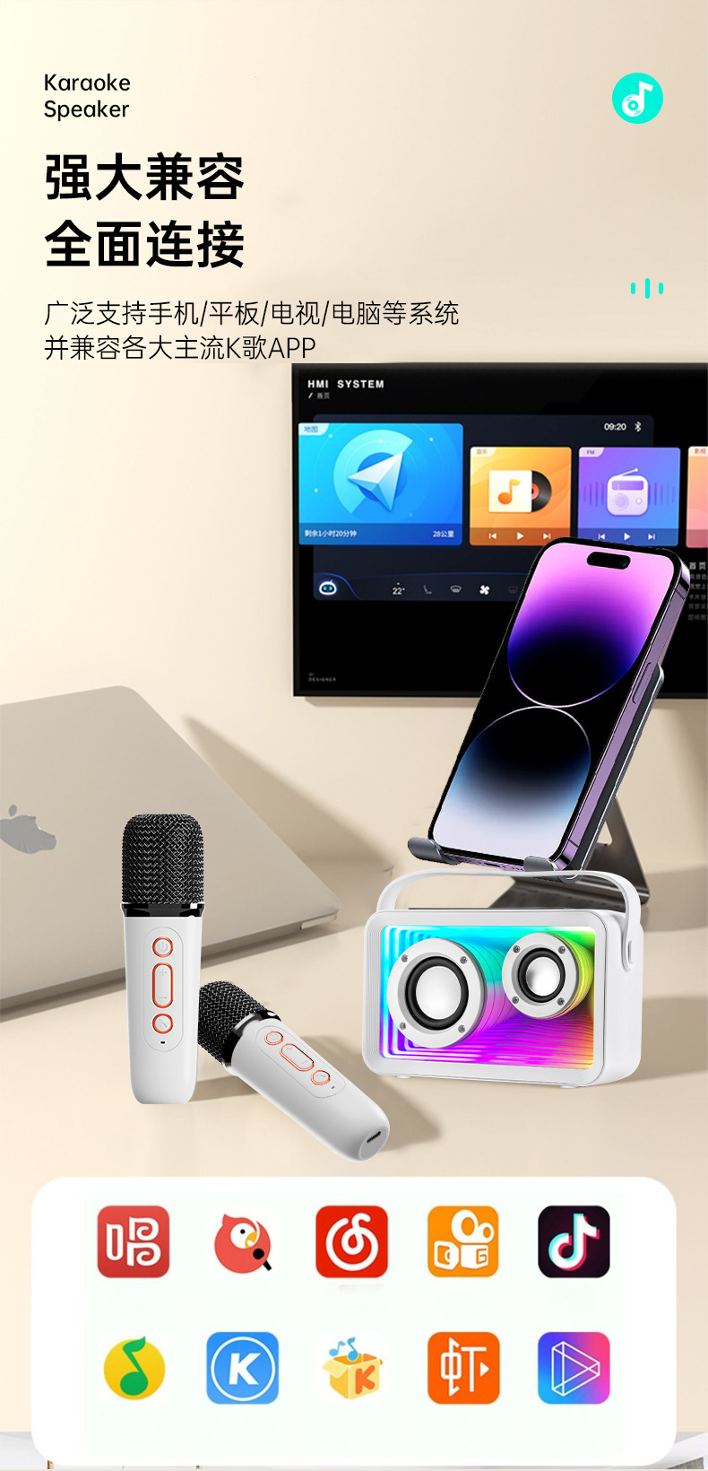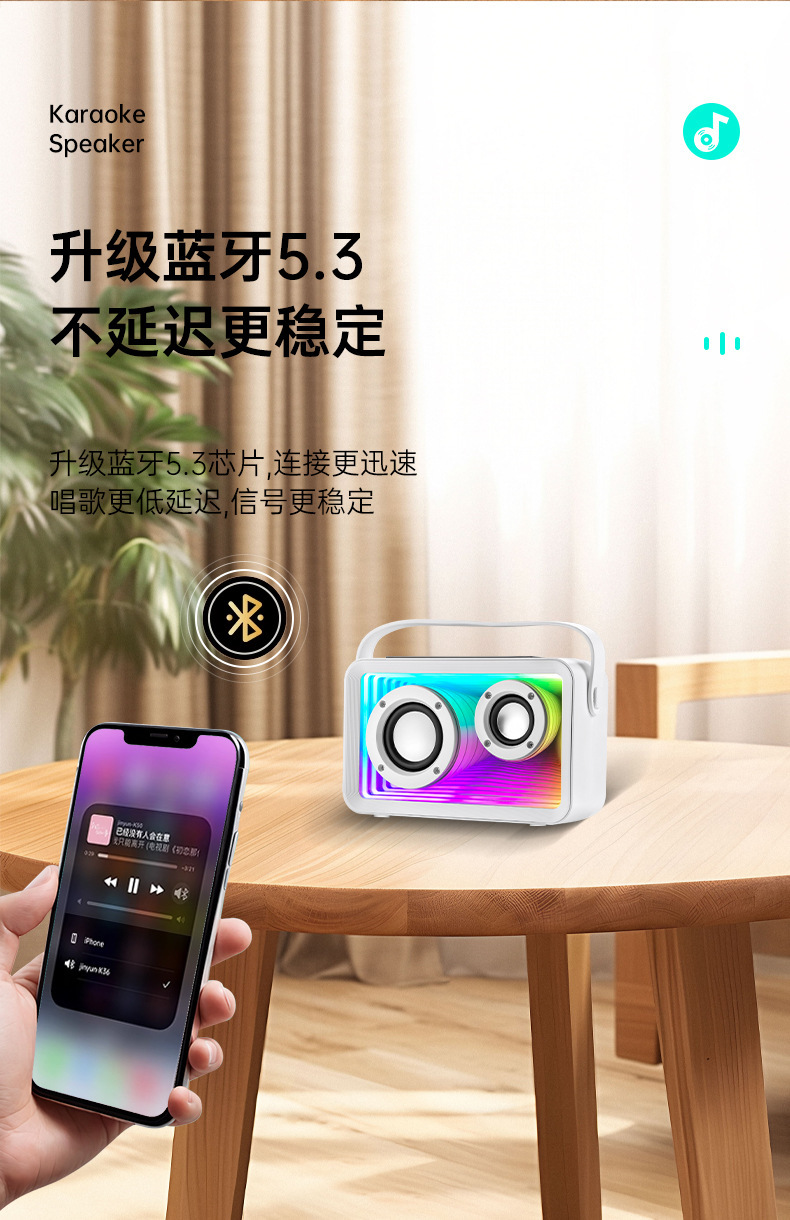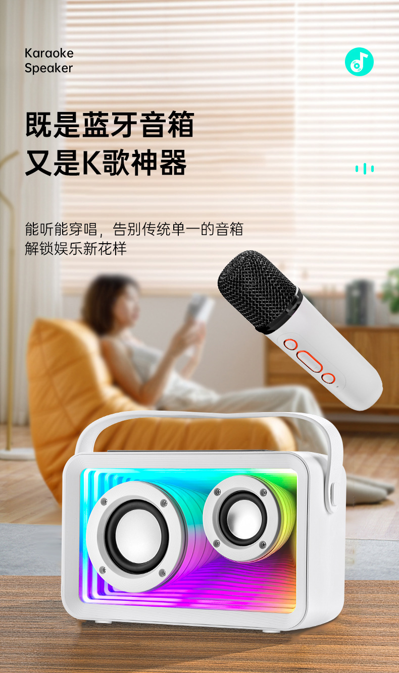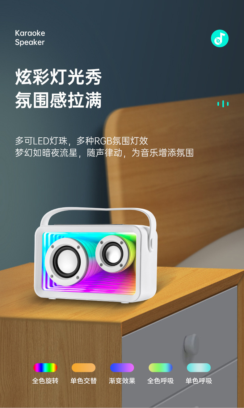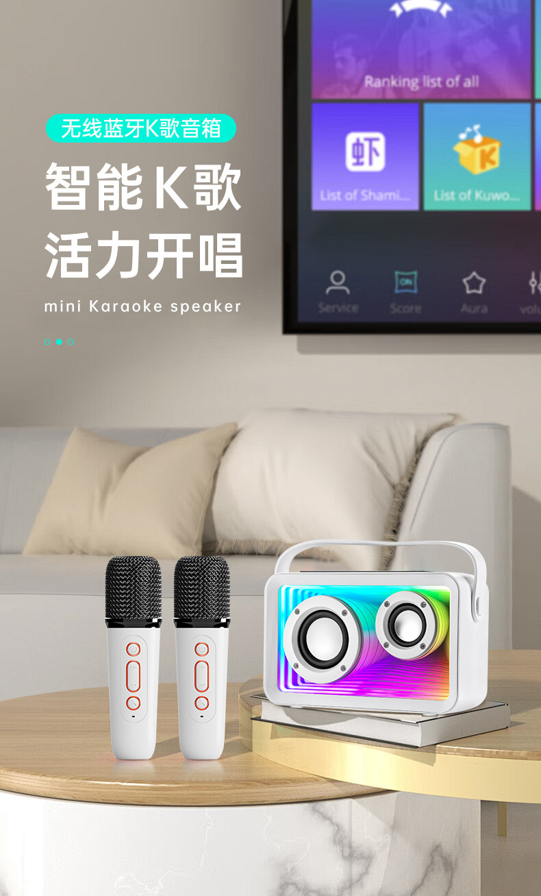24년형 K-노래 블루투스 스피커 RGB 분위기 조명 듀얼 마이크 K-노래 야외 마이크 가정용 무선 서브우퍼스토어 가기