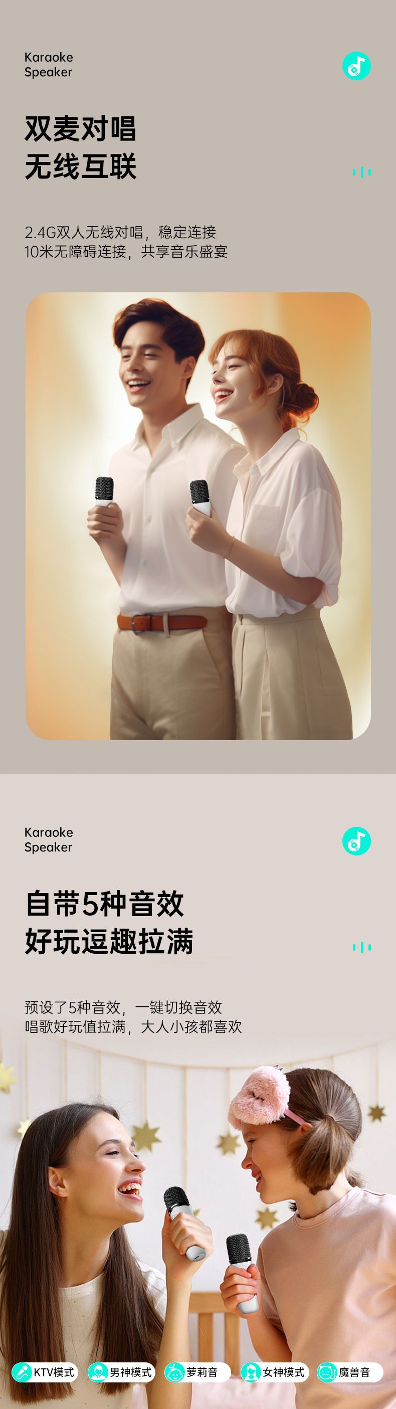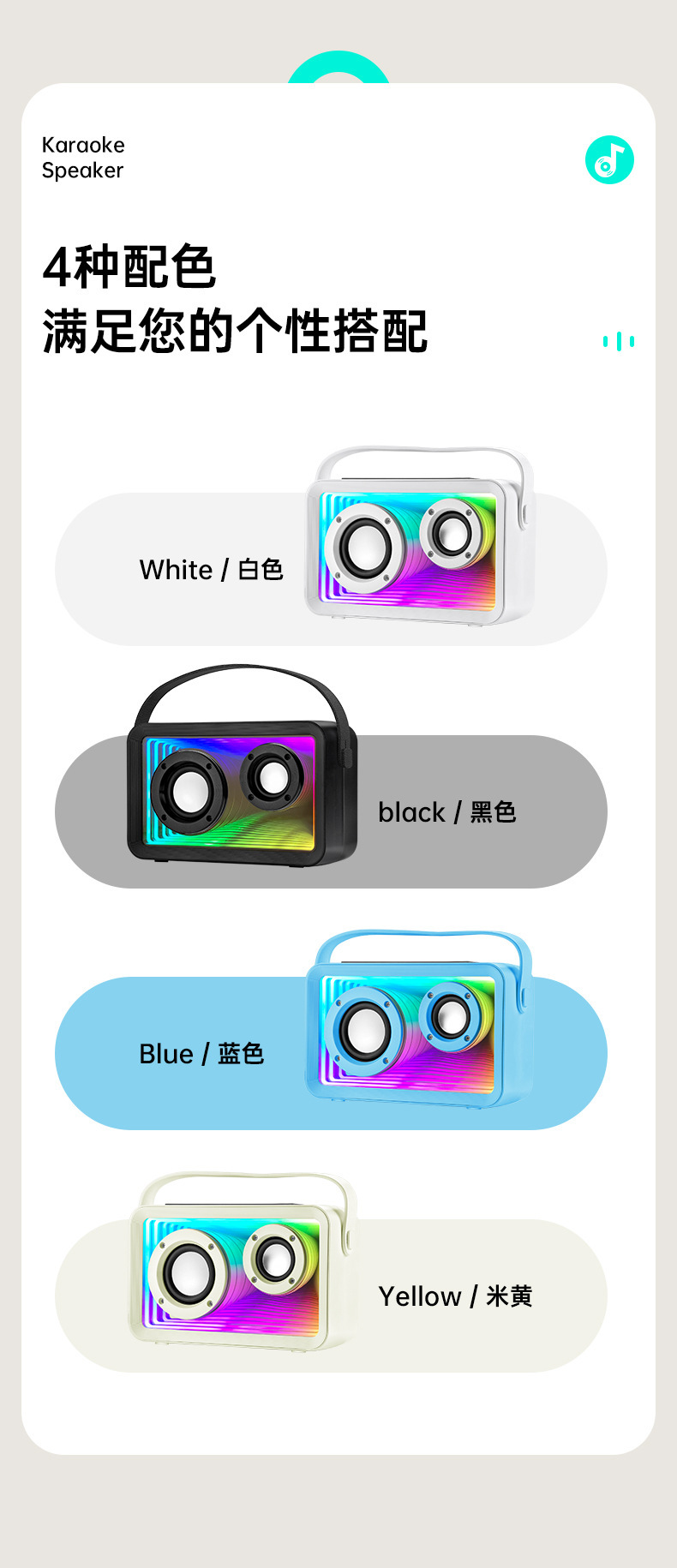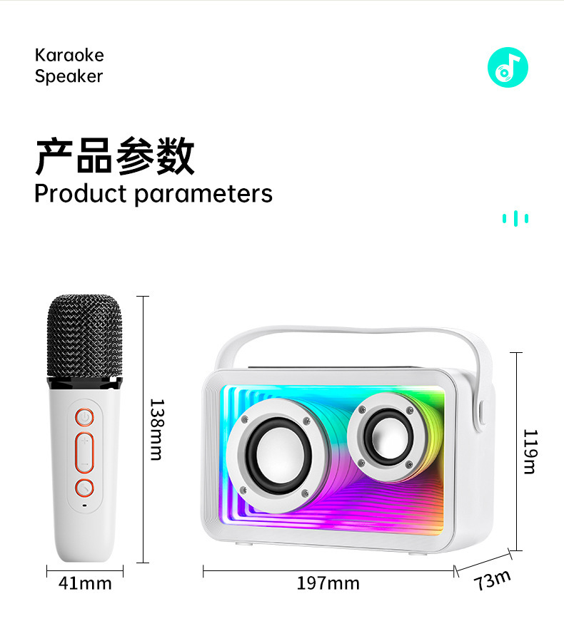 24년형 K-노래 블루투스 스피커 RGB 분위기 조명 듀얼 마이크 K-노래 야외 마이크 가정용 무선 서브우퍼