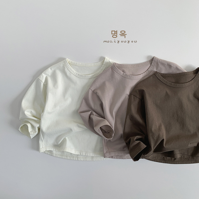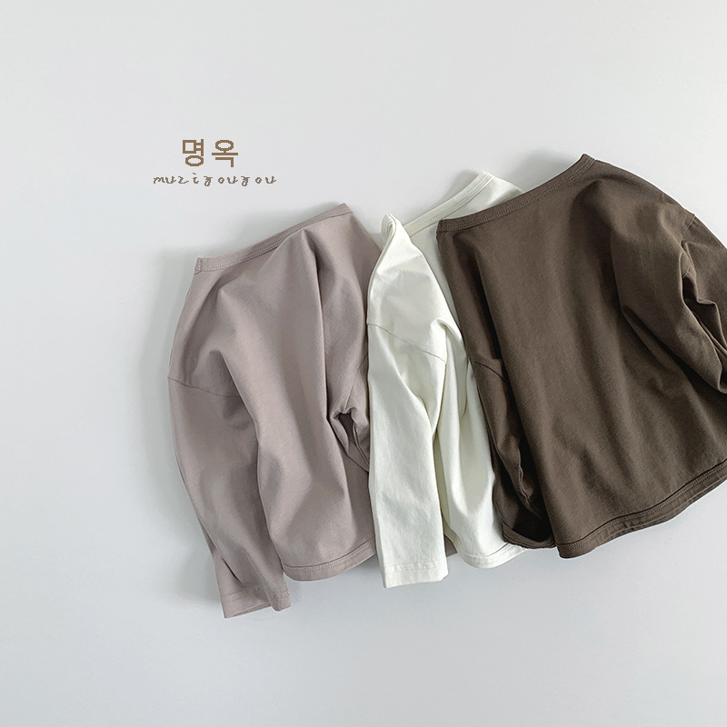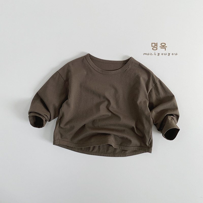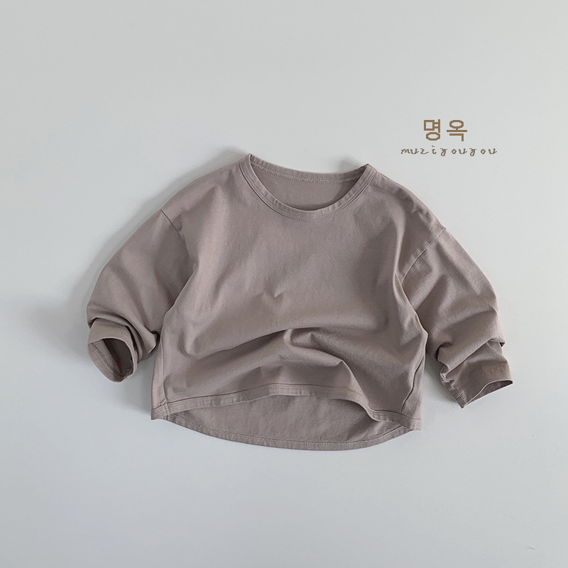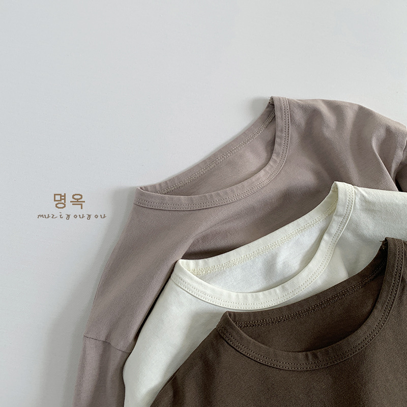 기본 다용도 티셔츠 2026년 신상 아동용 루즈핏 긴팔 티셔츠 남아 여아용 단색 라운드넥 베이스 티셔츠 봄옷스토어 가기