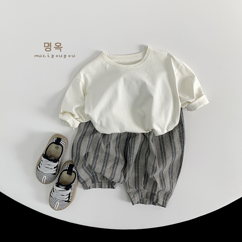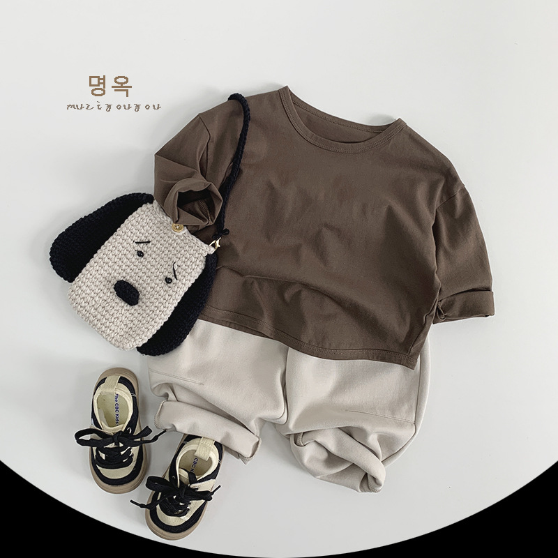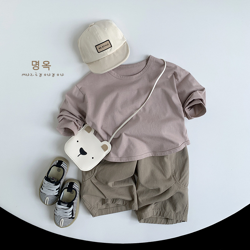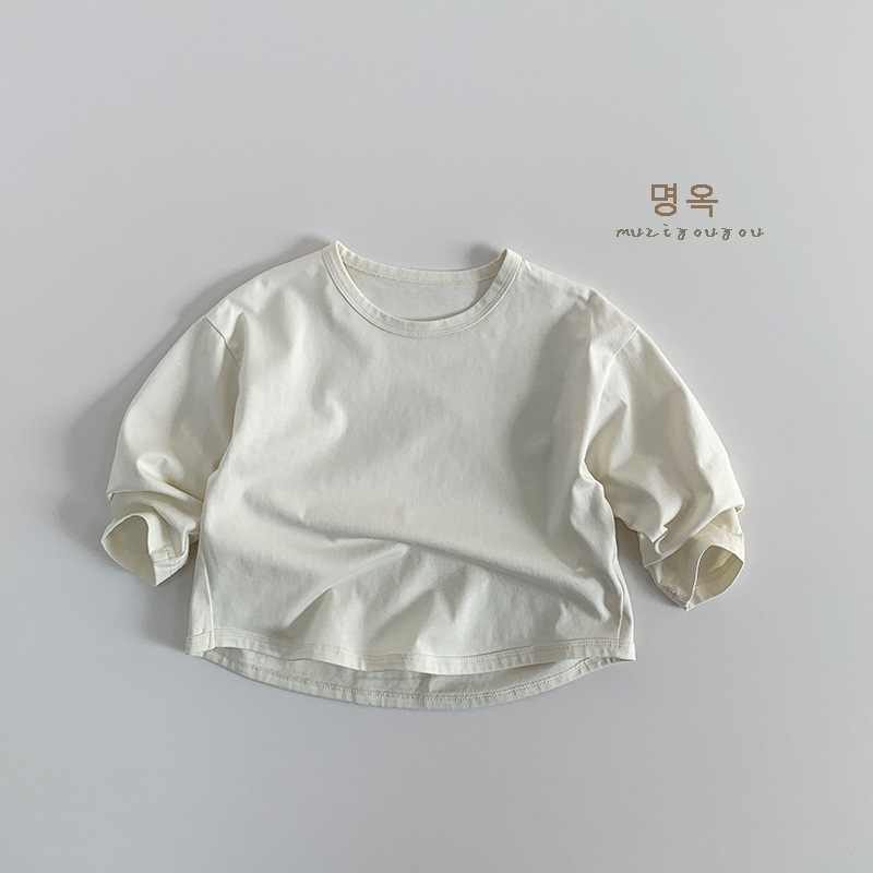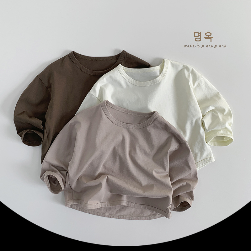 기본 다용도 티셔츠 2026년 신상 아동용 루즈핏 긴팔 티셔츠 남아 여아용 단색 라운드넥 베이스 티셔츠 봄옷스토어 가기