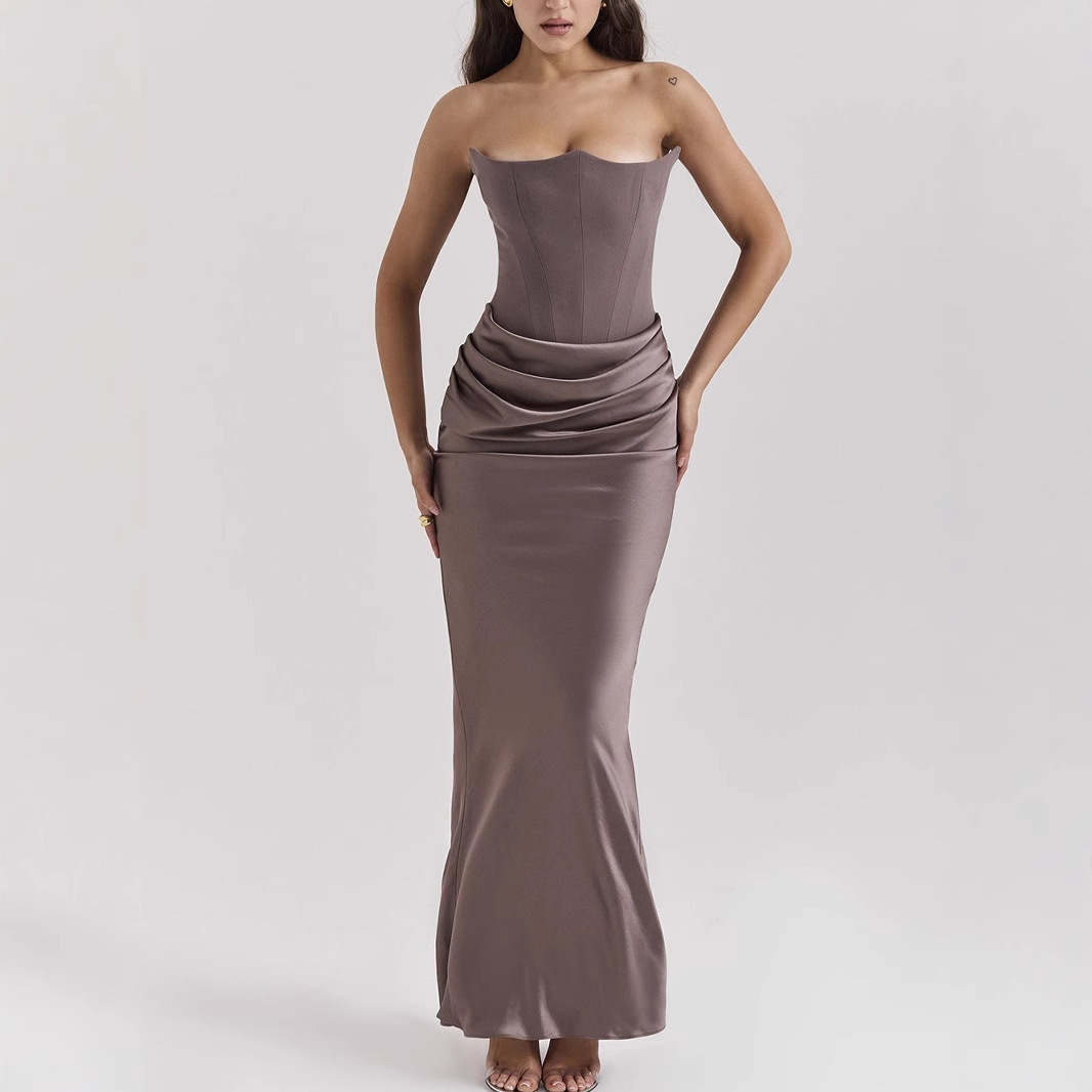 유럽과 미국 스타일의 국경 간 여성 패션 끈이없는 봄 원피스 여성을위한 새로운 섹시한 등이없는 슬림 핏 저녁 원피스스토어 가기