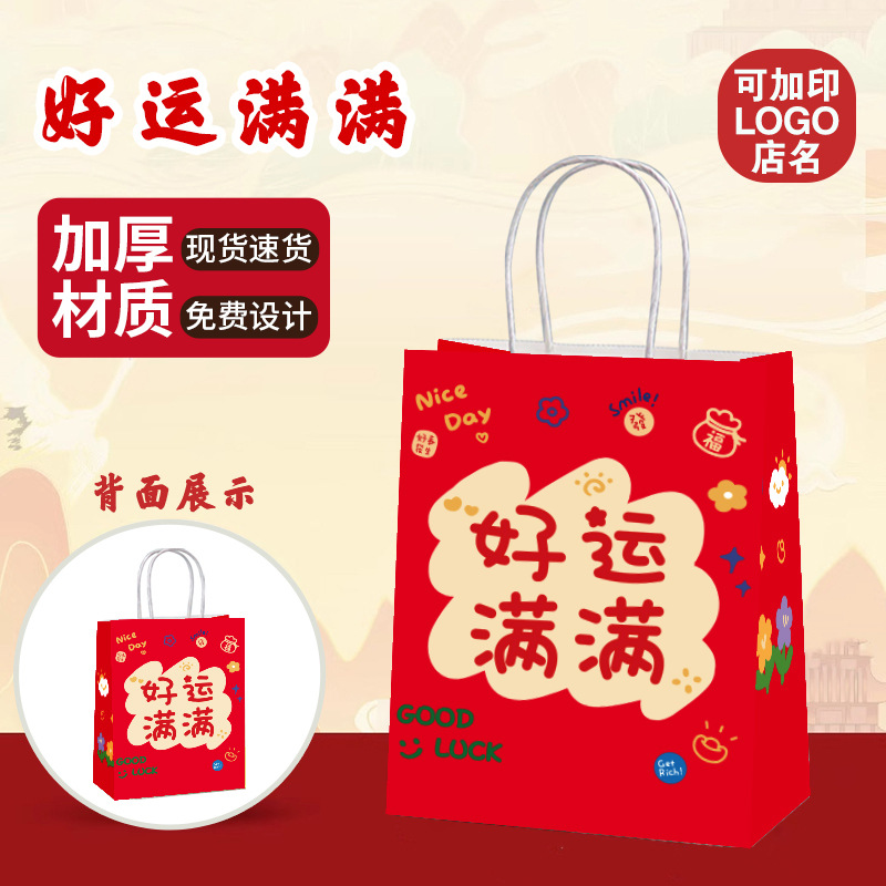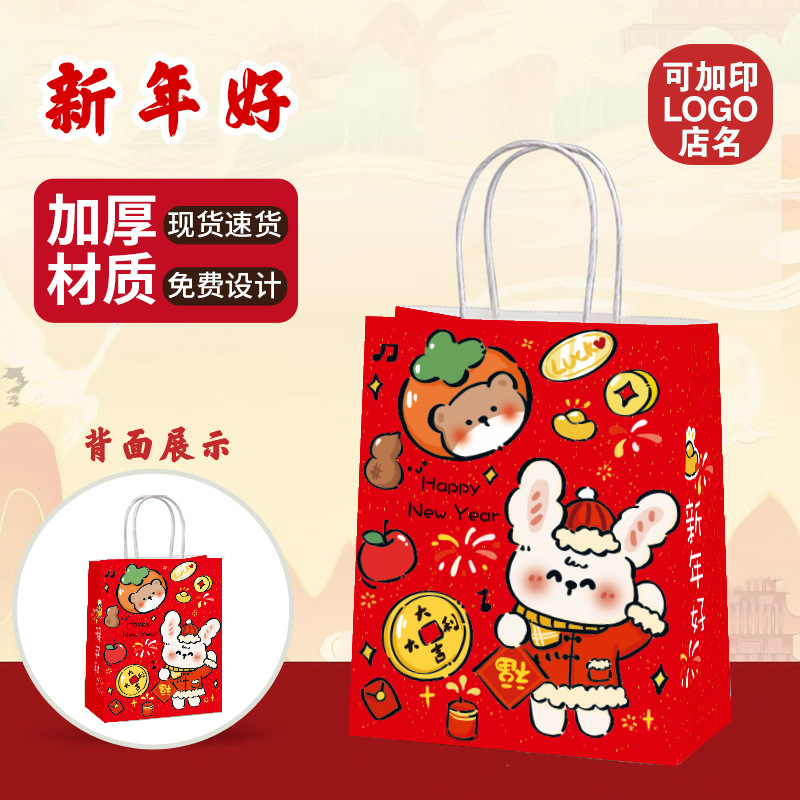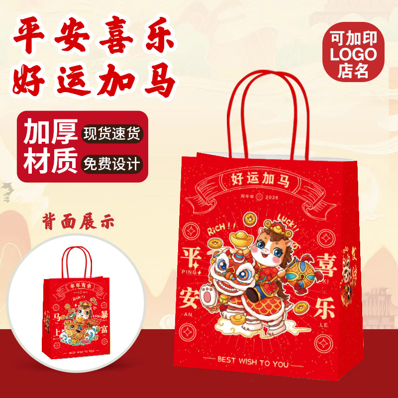새해 핸드백 2026 말의 해 행복한 설날 가방 선물용 크라프트 종이 가방 포장 가방 빨간색 선물 가방