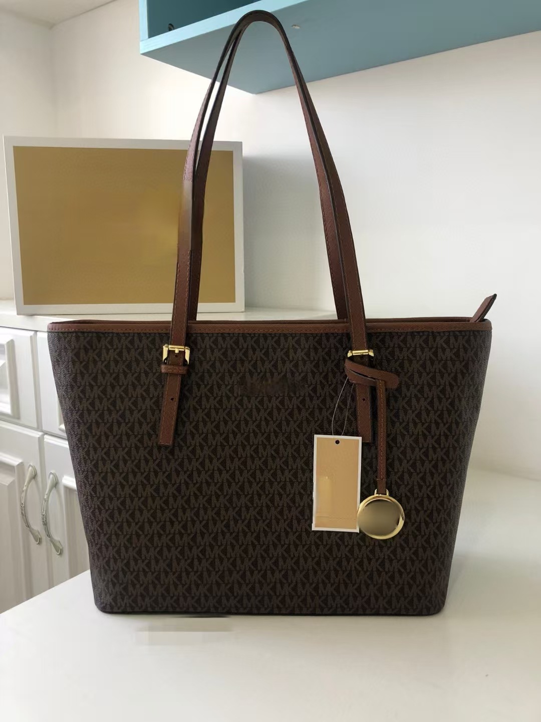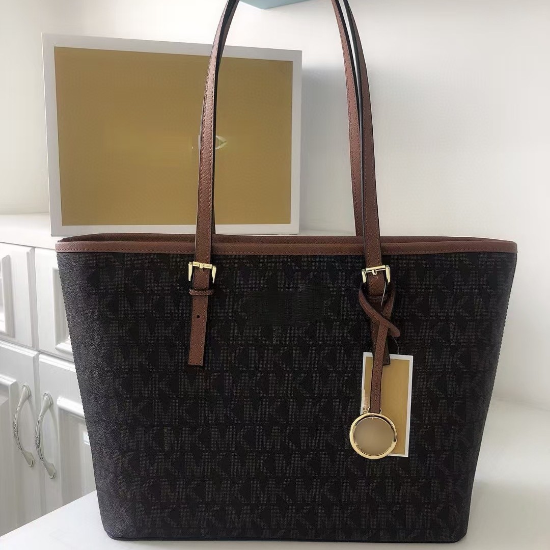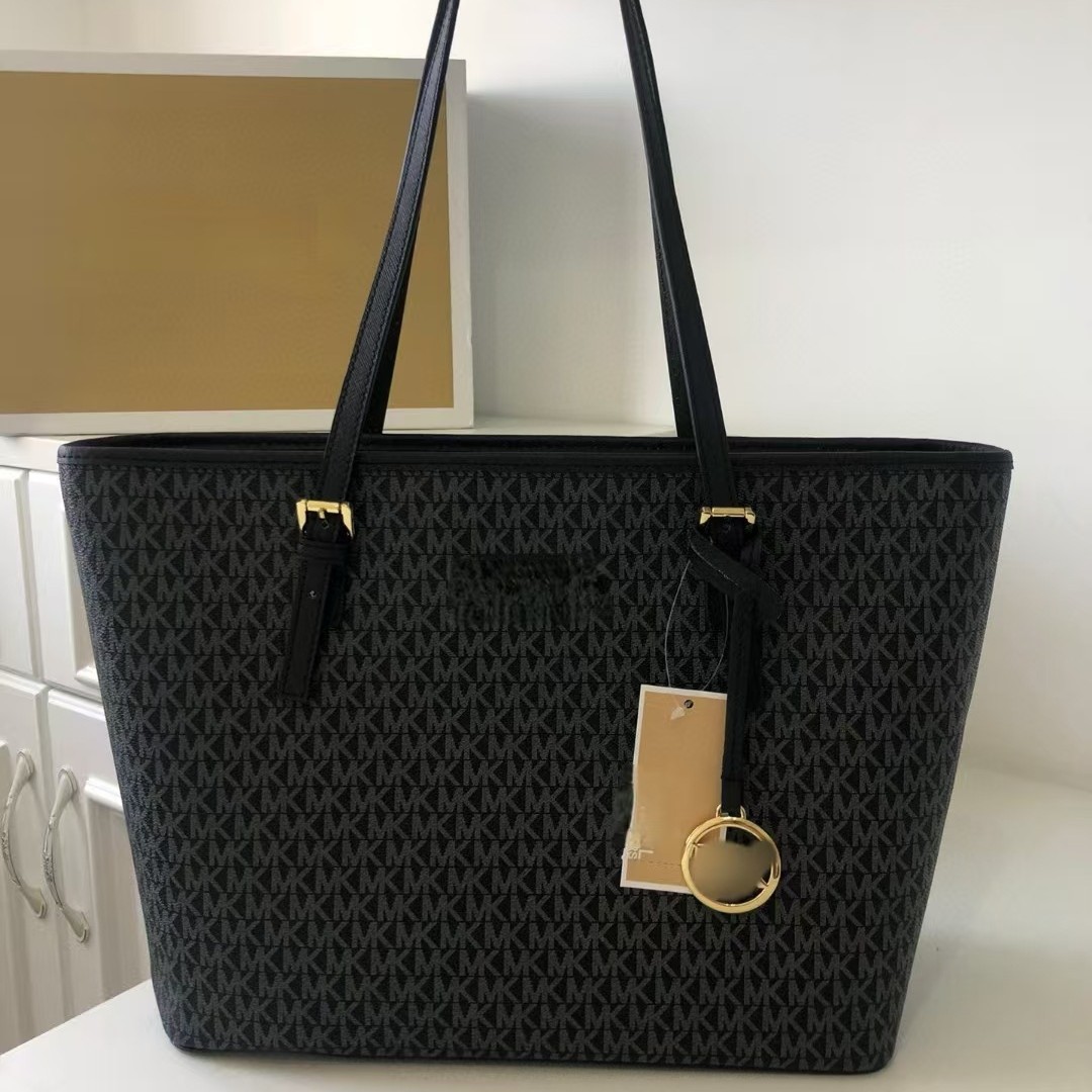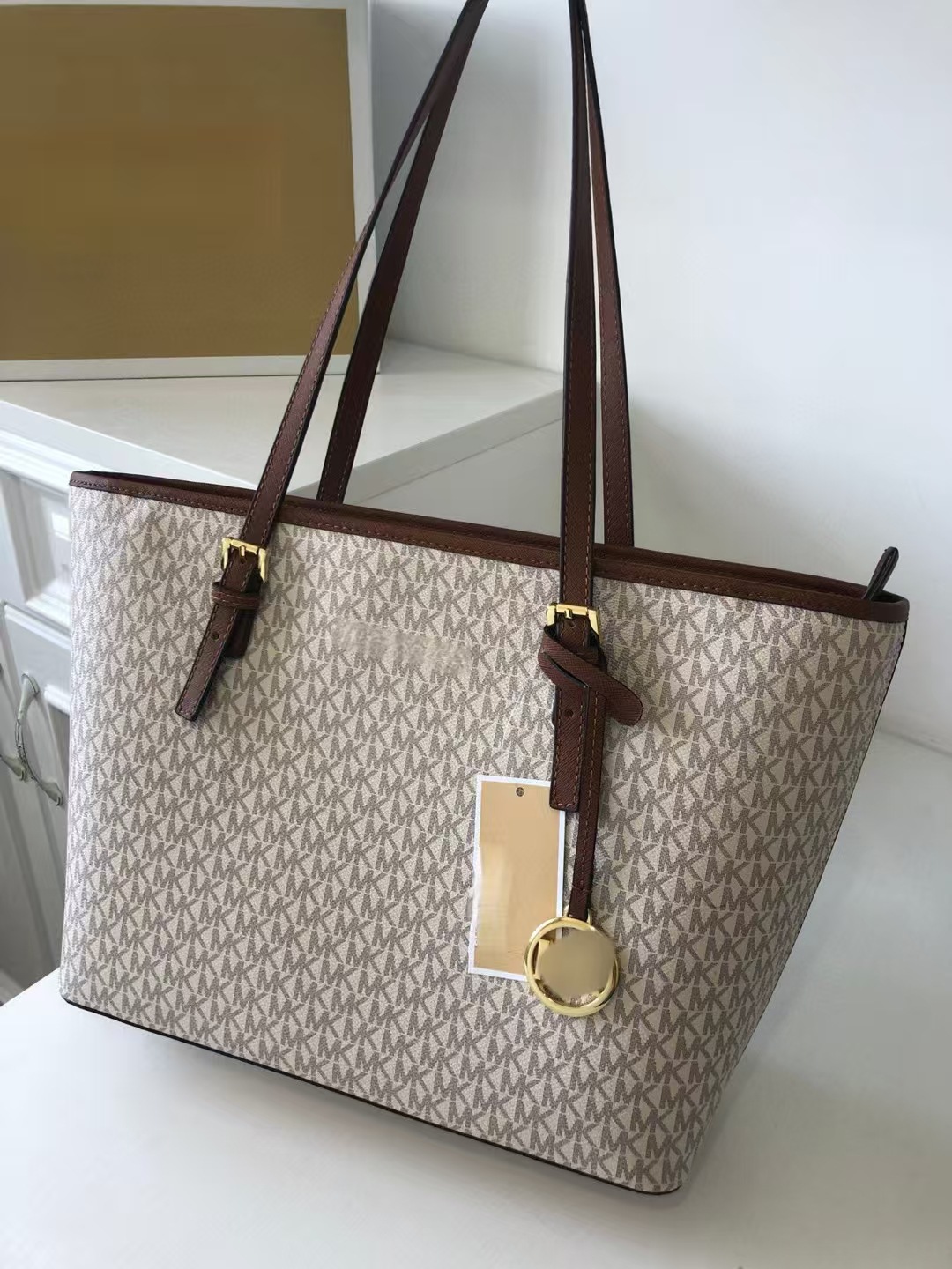 MK 大号印花购物袋,金色24k五金配件,十字纹柔软舒适挺型,上口拉链设计!采用YKK 拉链拉头,包包既大方得体又使用,空间超大容量,五金质量一看便知,出去购物真的完美,在欧美也是追捧者众多的款式2色可选!容易搭配各种时尚装,可以单肩斜挎手提,尺寸:34-15-27,型号:005