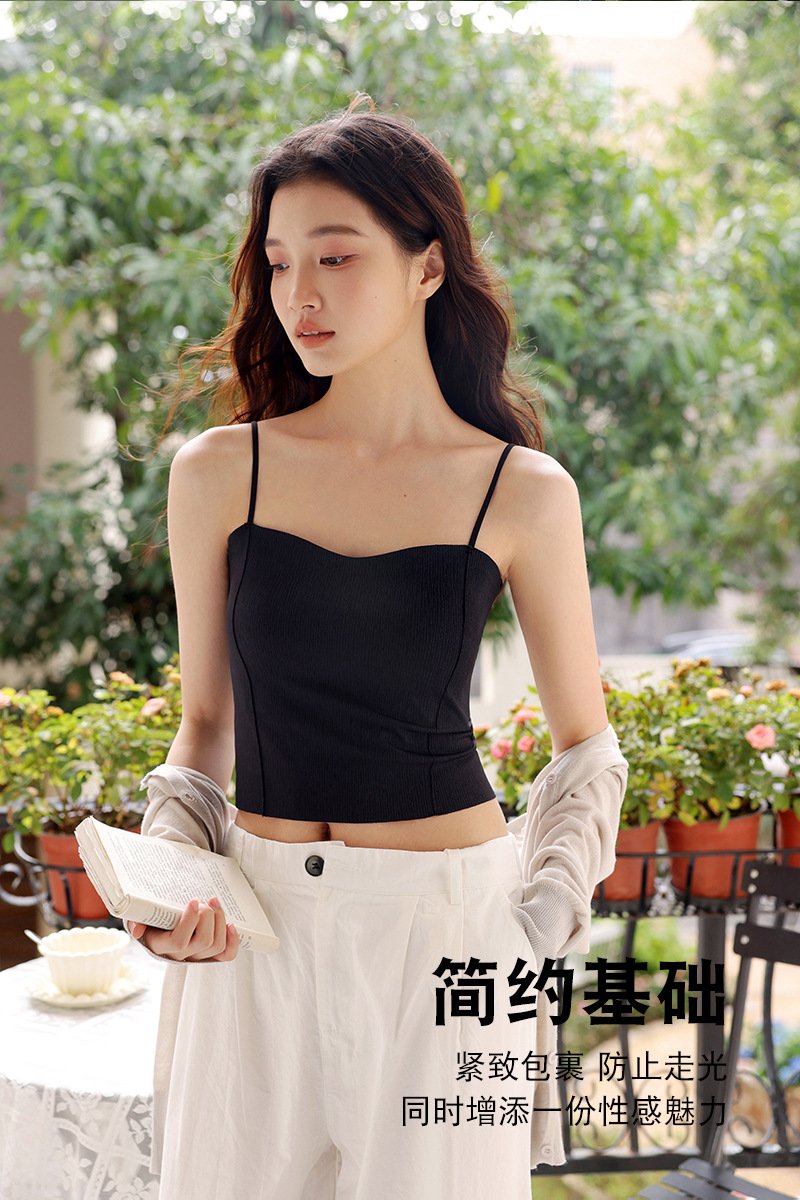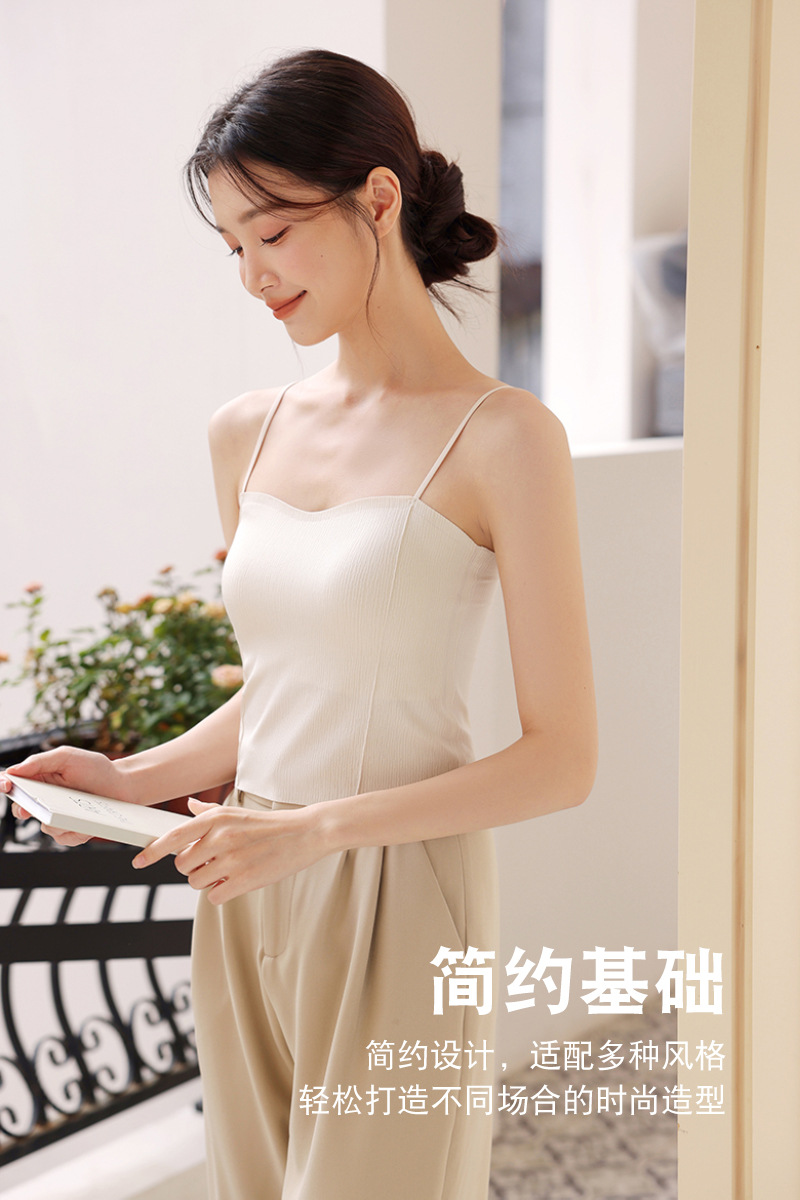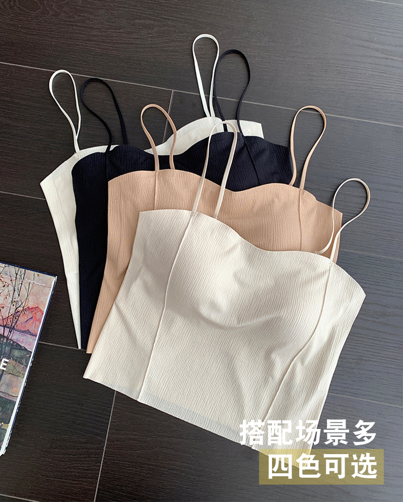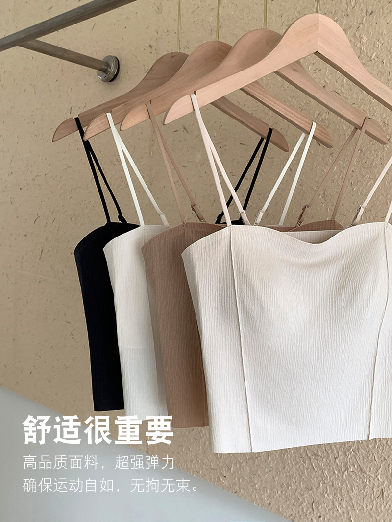 여름용 아이스 실크 뷰티백 원피스 캐미솔 여성용 아우터/이너웨어 가슴패드 내장 고정컵 튜브탑 고급스러운 느낌